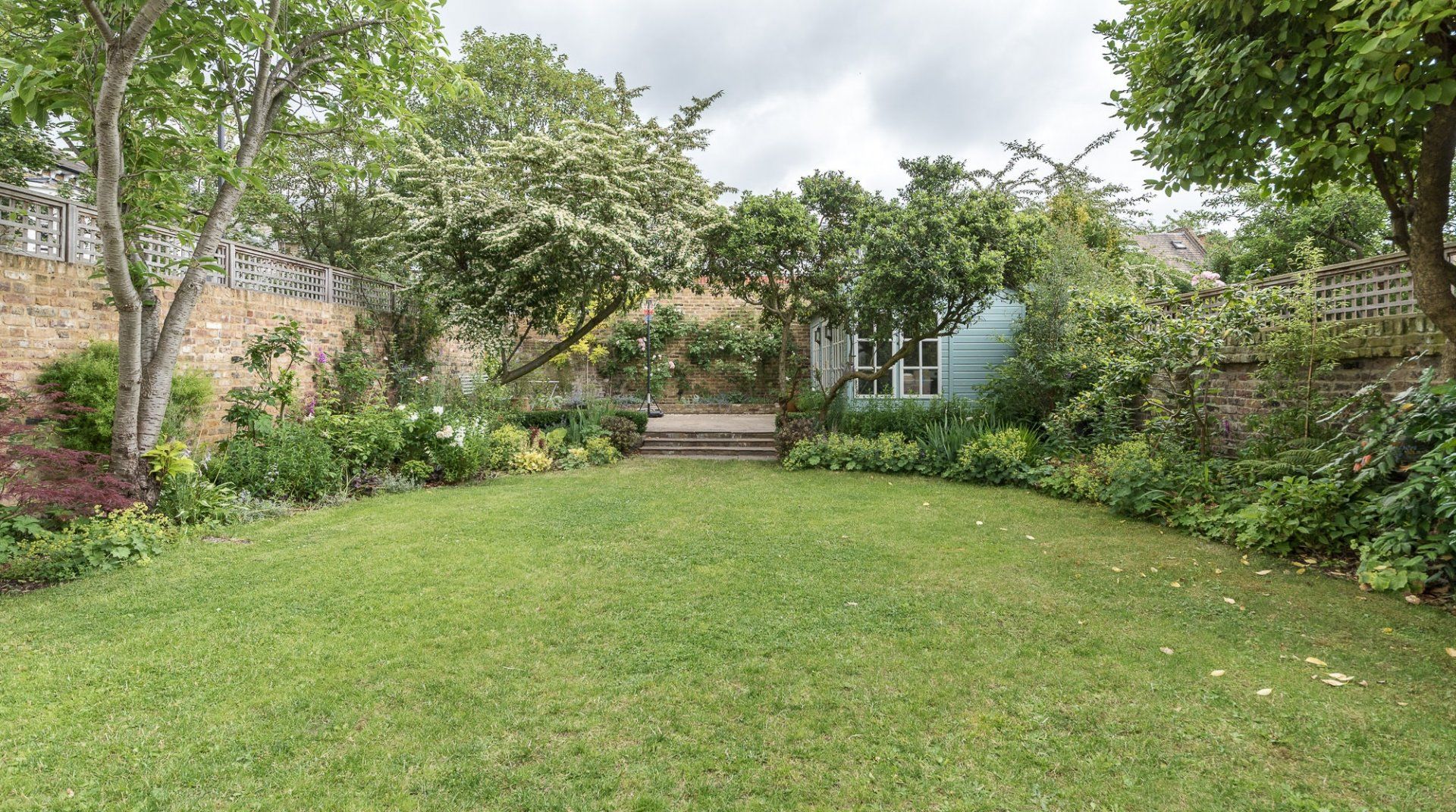 Though, the real highlight of this home is the generous outdoor space. The large, split-level garden boasts a verdant lawn and two patios, including an alfresco dining area and barbecue. There's even a basketball court for the kids, big and small. Fringed by honey-hued stone walls and lush foliage for privacy, you'll feel completely secluded in this little pocket of paradise.