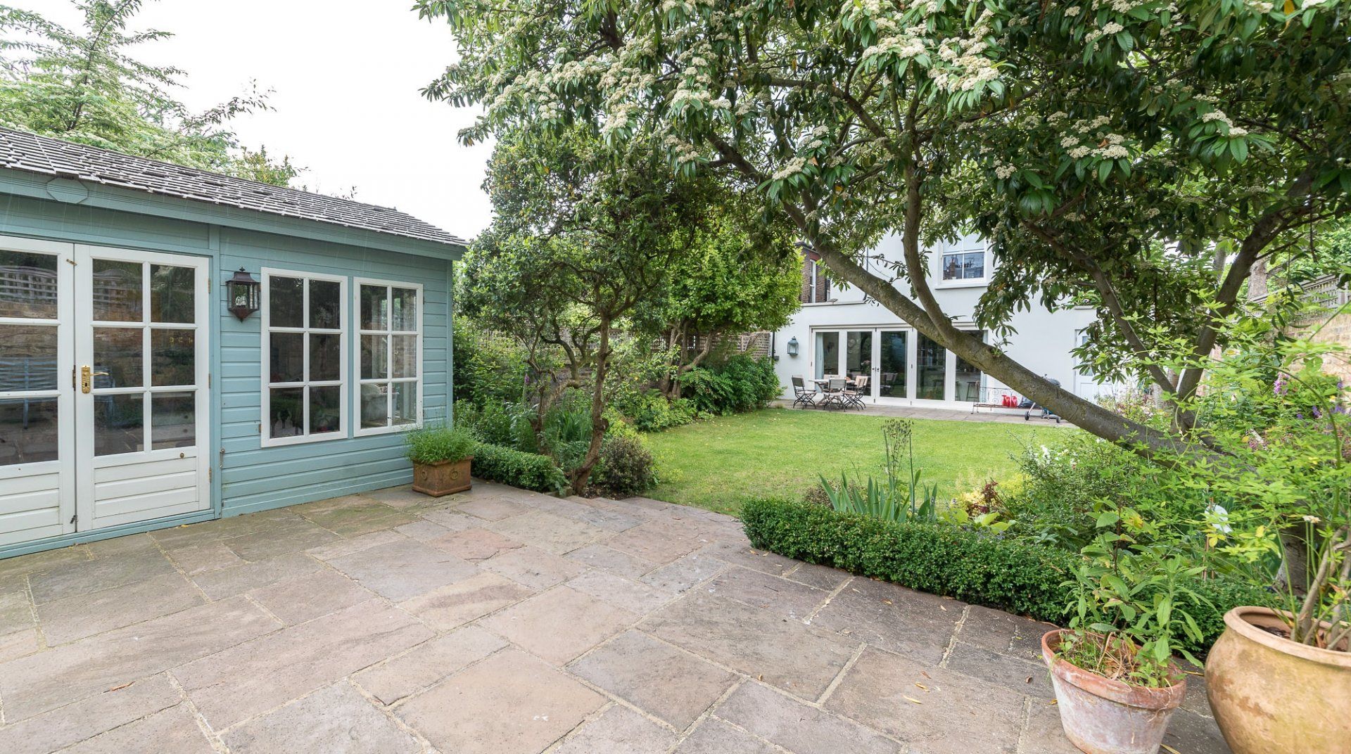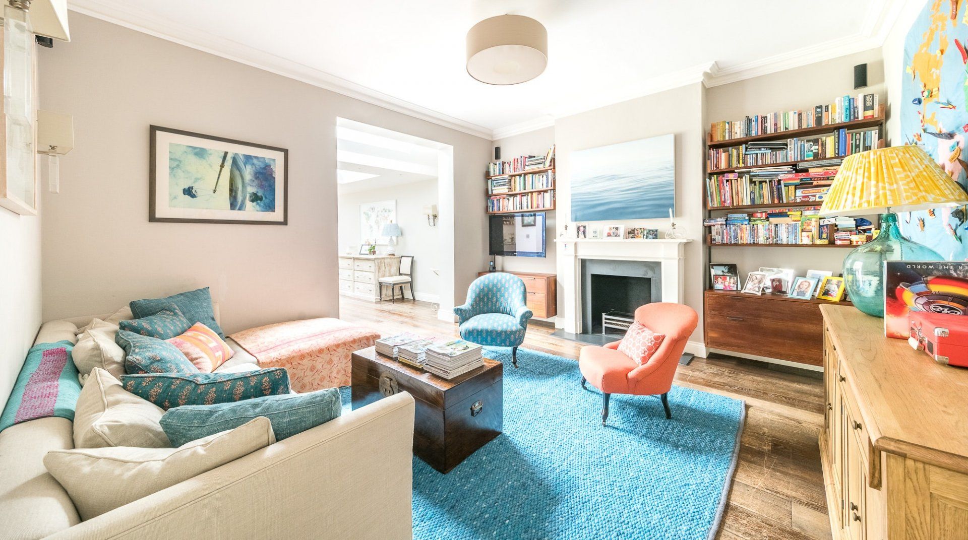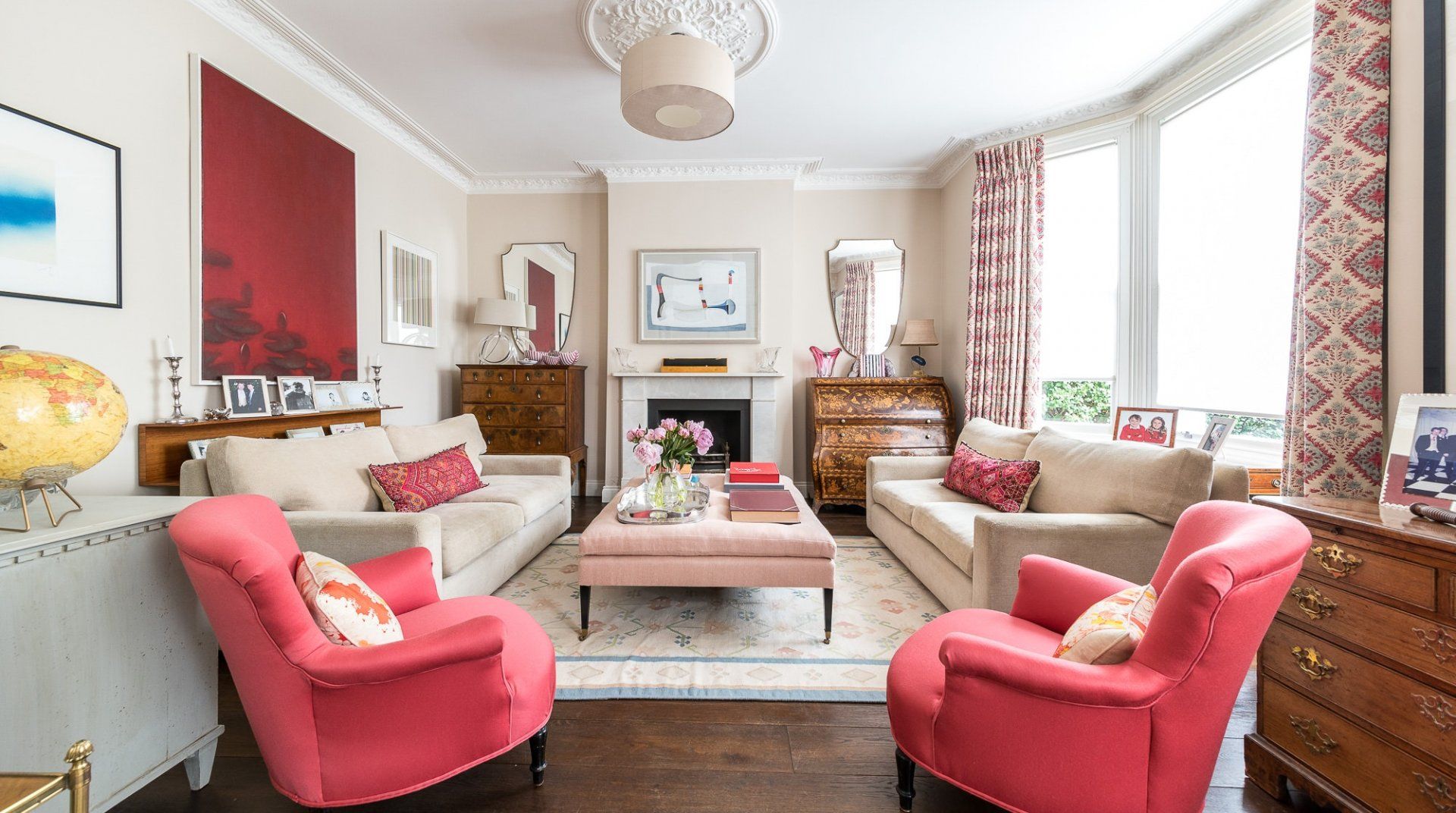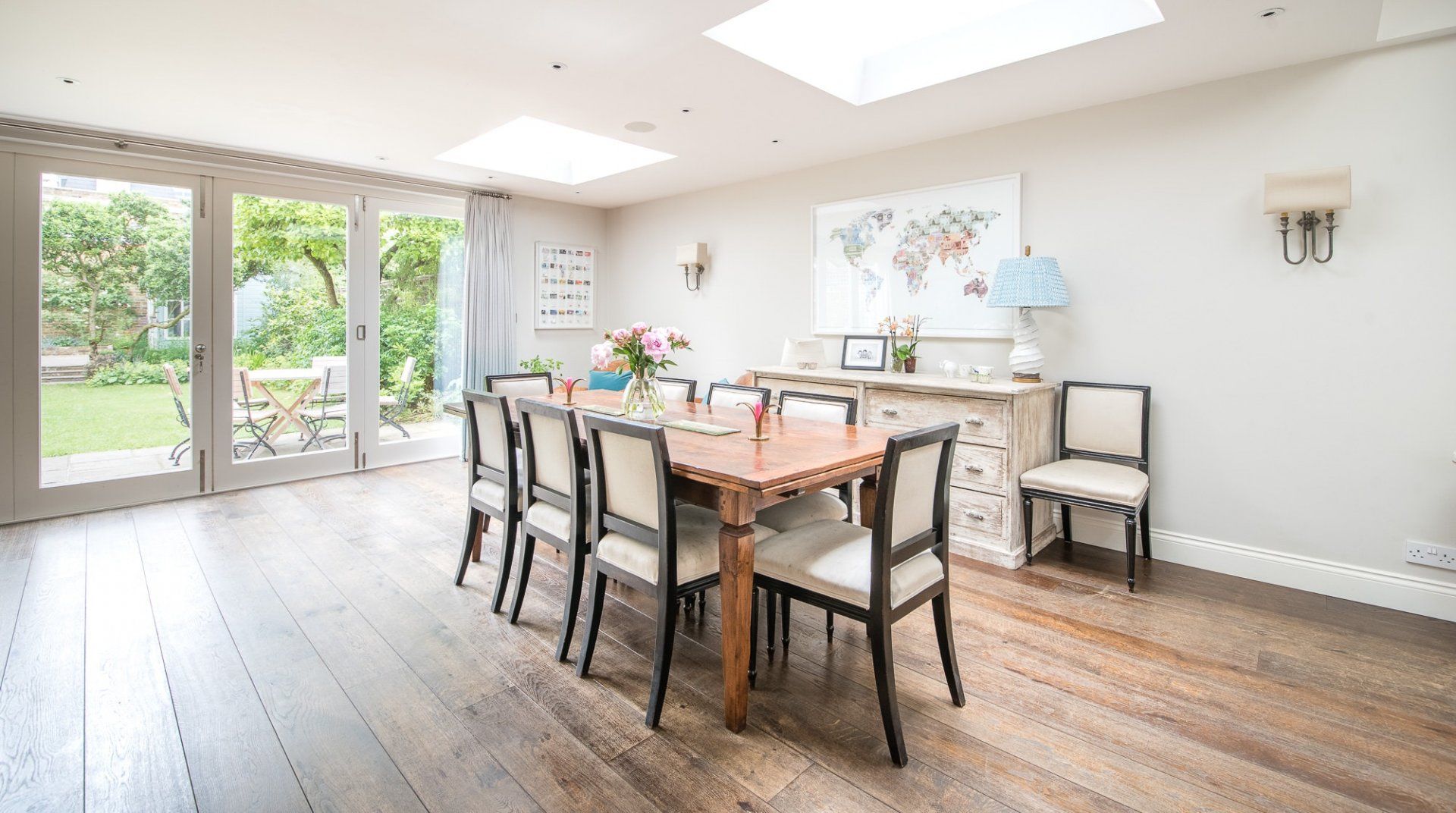 Set across three storeys and boasting a large garden, this home promises a gentler pace than London's typical hustle and bustle. Inside, it's a pleasing canvas of high ceilings and hardwood floors, while large windows beckon sunlight to flood the spacious rooms. The decor is stylish and playful, full of colour and English flair. With two sitting rooms, a spacious kitchen and an elegant dining room, there's plenty of space for relaxation.