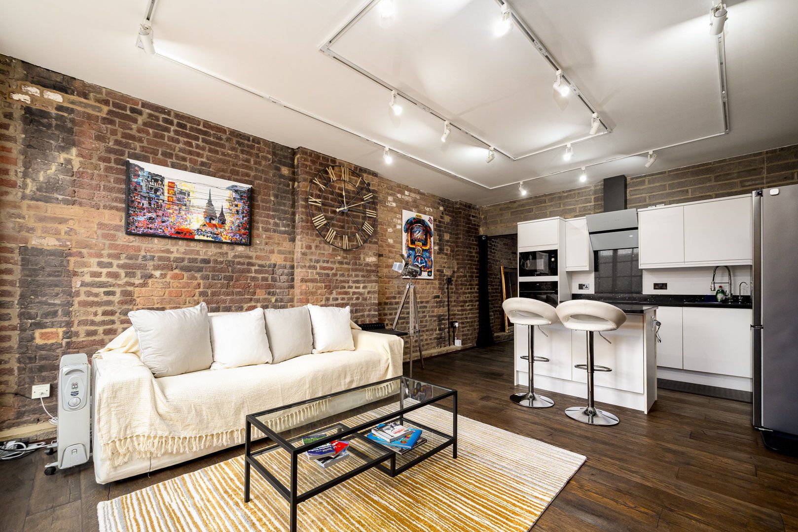 This apartment is right in Bermondsey Village, so you can walk to London Bridge, Tower Bridge, and The City in no time. It’s set in a gated community with a mix of Grade II listed buildings and newer ones, which gives it a nice, tucked-away feel. Inside, it’s got that industrial vibe – think exposed brick, open-plan living, and space to cook and hang out. And the best bit? You can head up to the communal roof terrace for direct views of The Shard and the London Eye – a perfect spot to unwind after exploring the city.