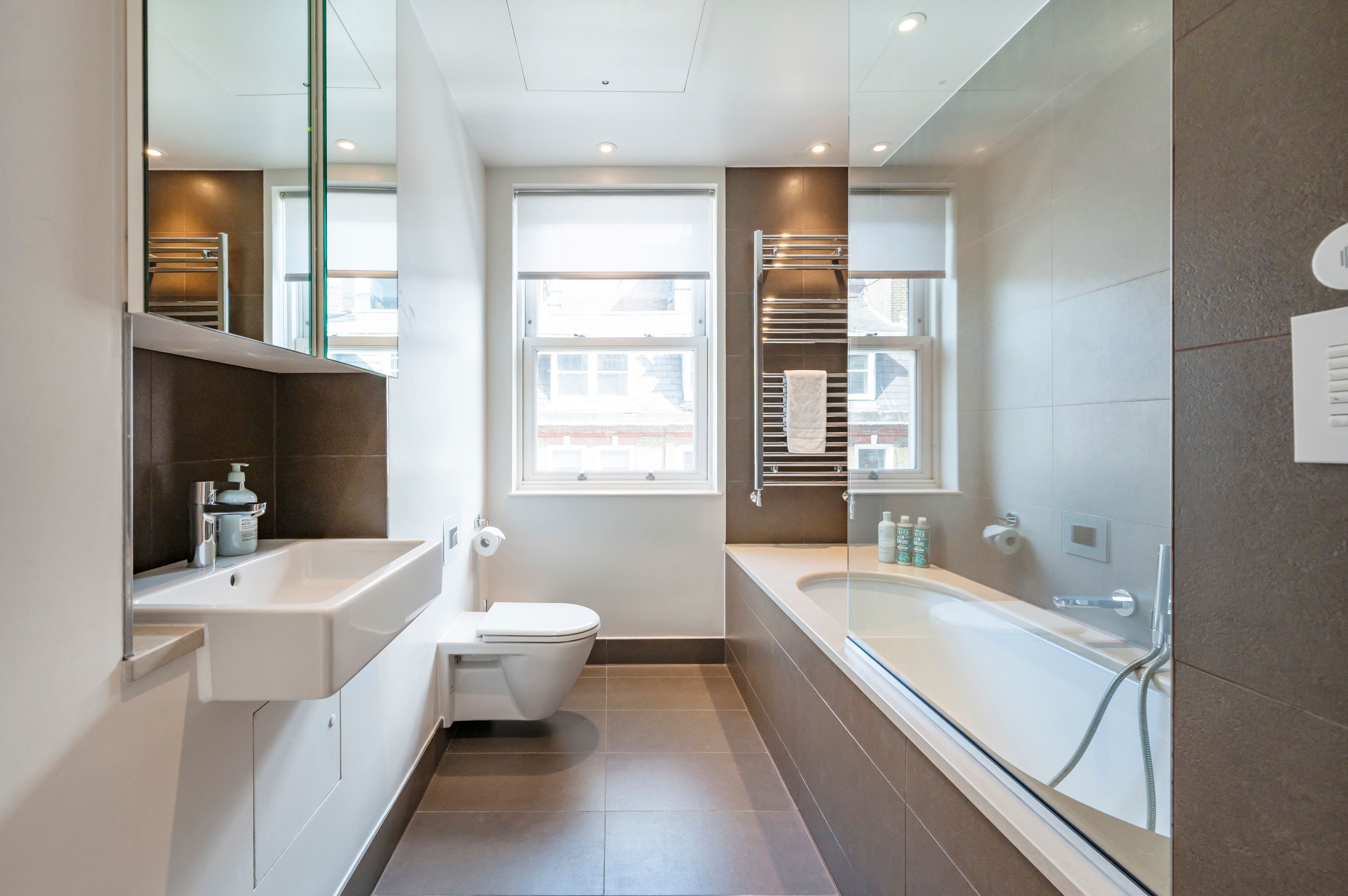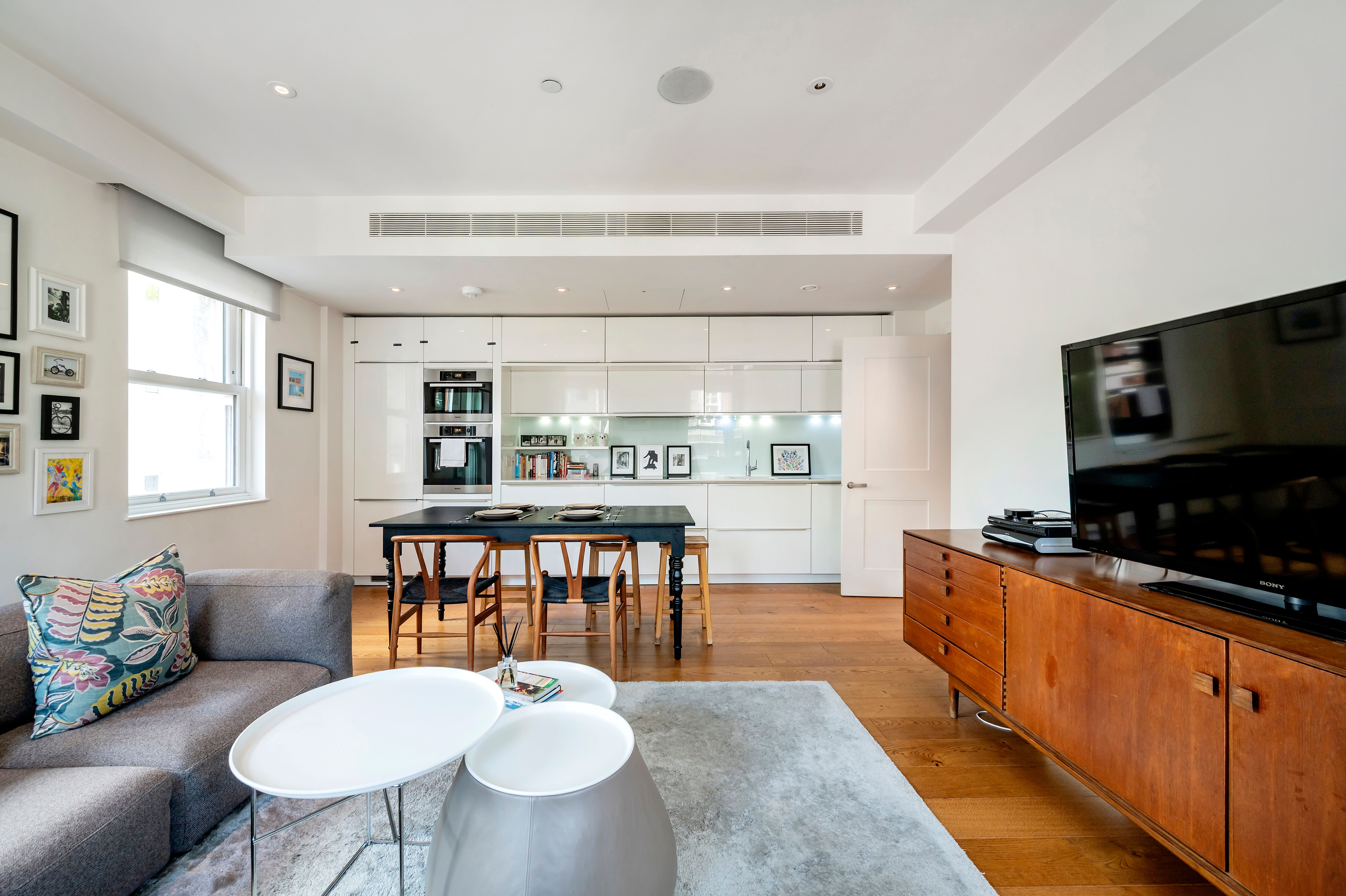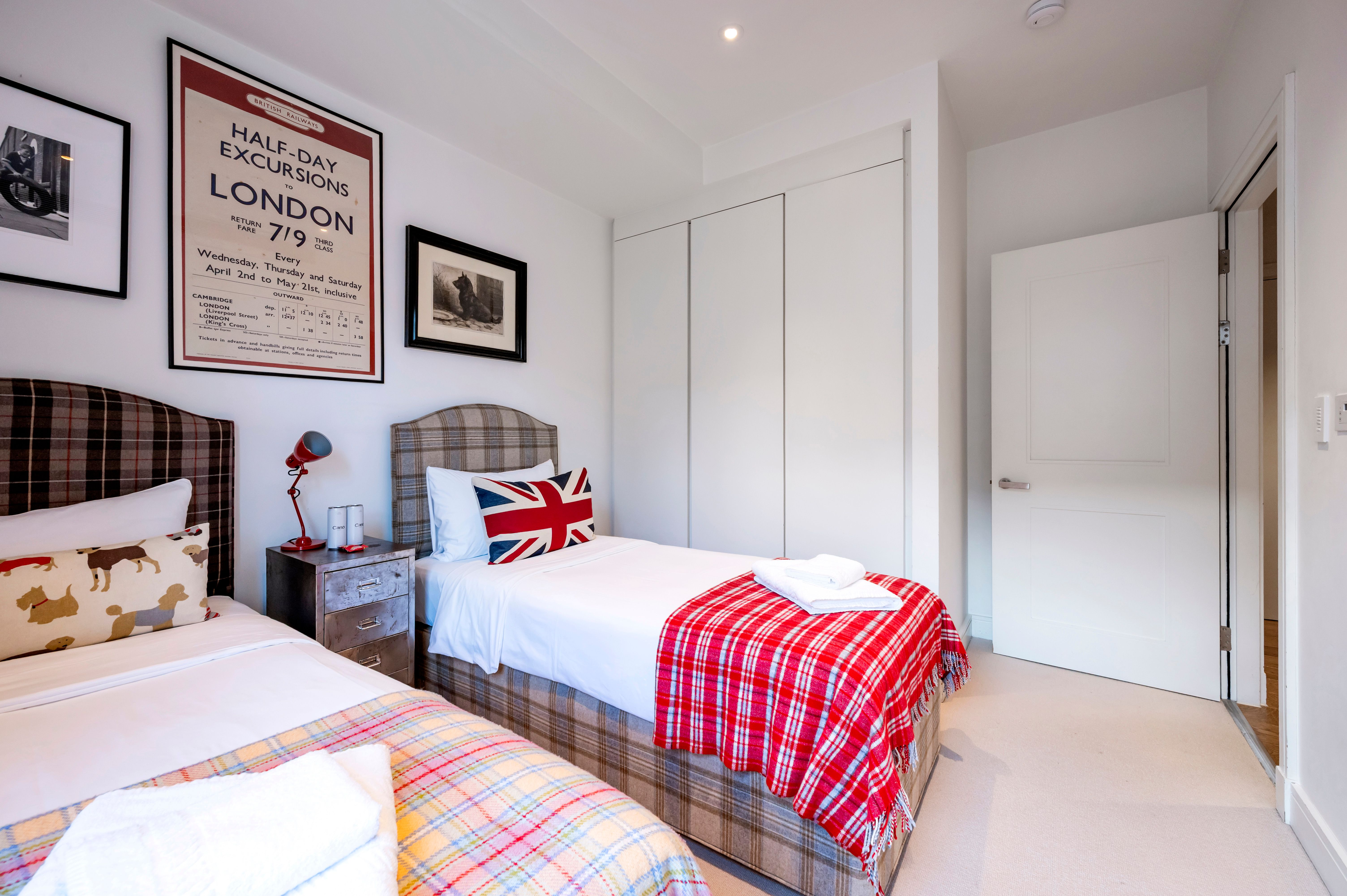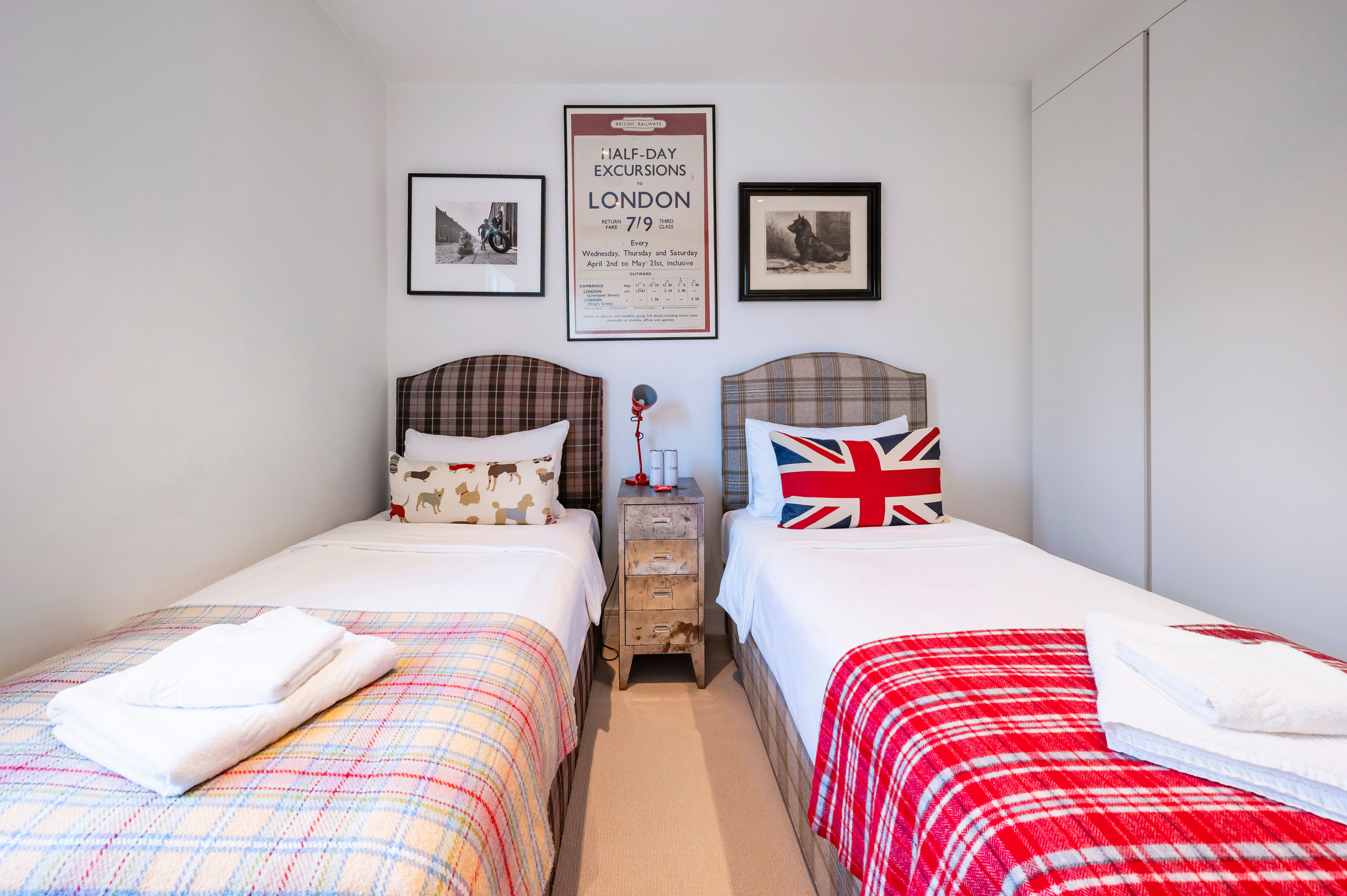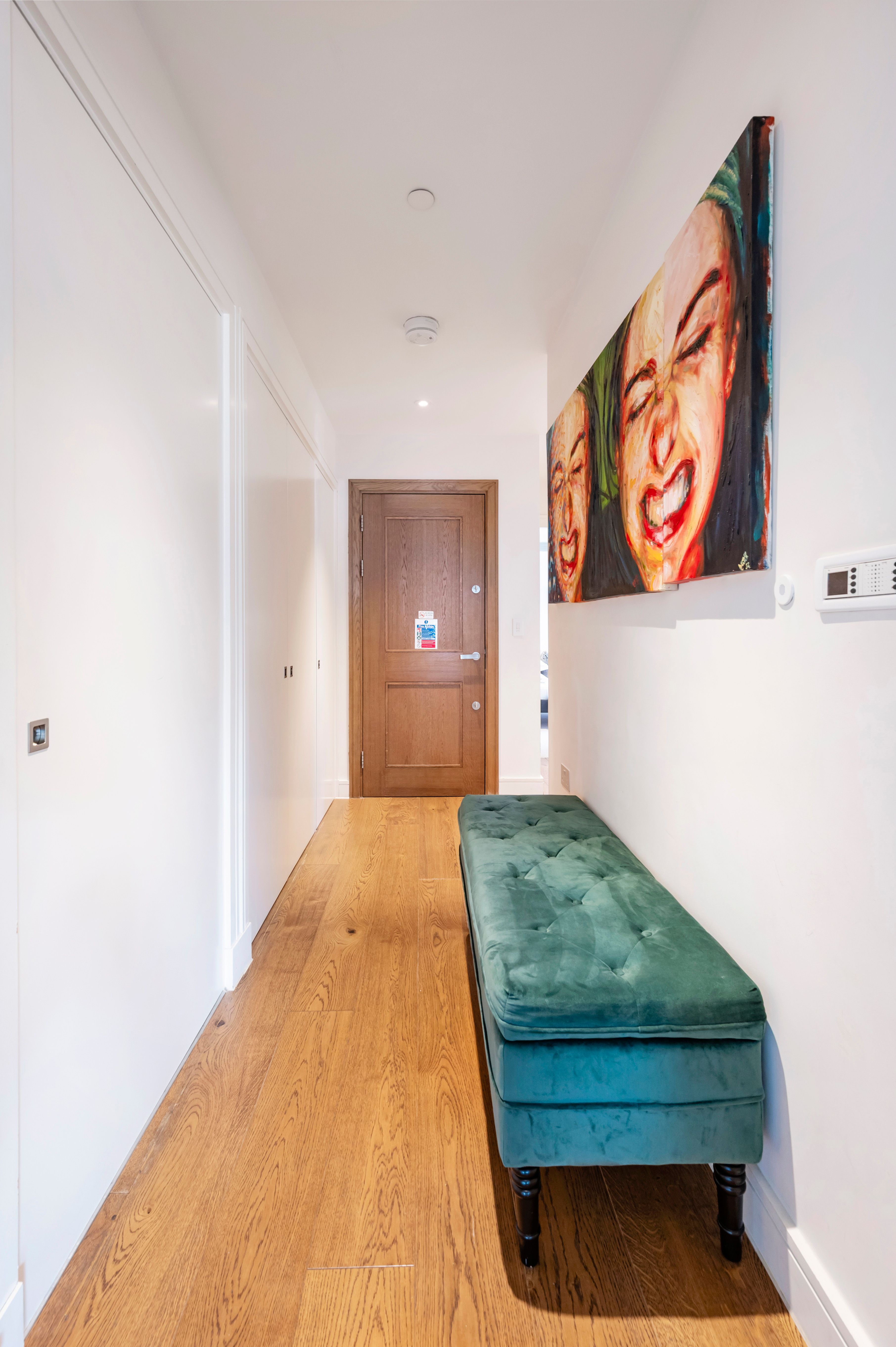 Located just a one-minute walk from London’s iconic Oxford Street, this home is perfect for those who want to experience the true buzz of the city. Catch a glimpse of the hustle and bustle below from the living room’s tall windows, and relish the calm of your bright, modern pad. Splashes of colour make the main room feel welcoming, with art prints, textured cushions and a funky purple chair that’s perfect for starting your day in with a cup of freshly made coffee. The bedrooms, too, are full of artistic flair with the master boasting quirky stag head ornaments and the second bedroom decked out in full London regalia. Spend the day indulging in some retail therapy on Regent Street (a twelve-minute walk) and Oxford Street, stroll along Hyde Park’s leafy paths (a ten-minute walk) and catch a show at a West End theatre (a twenty-five-minute walk). You’re spoilt for choice when it comes to restaurants and bars in the area too, but we wouldn’t blame you for wanting to pass up a night on the town for a chilled-out evening at home. Gather together around the dining table to enjoy a meal with city views, enjoy a luxurious bath, then kick back and unwind on the plump sofa, a glass of wine in hand.