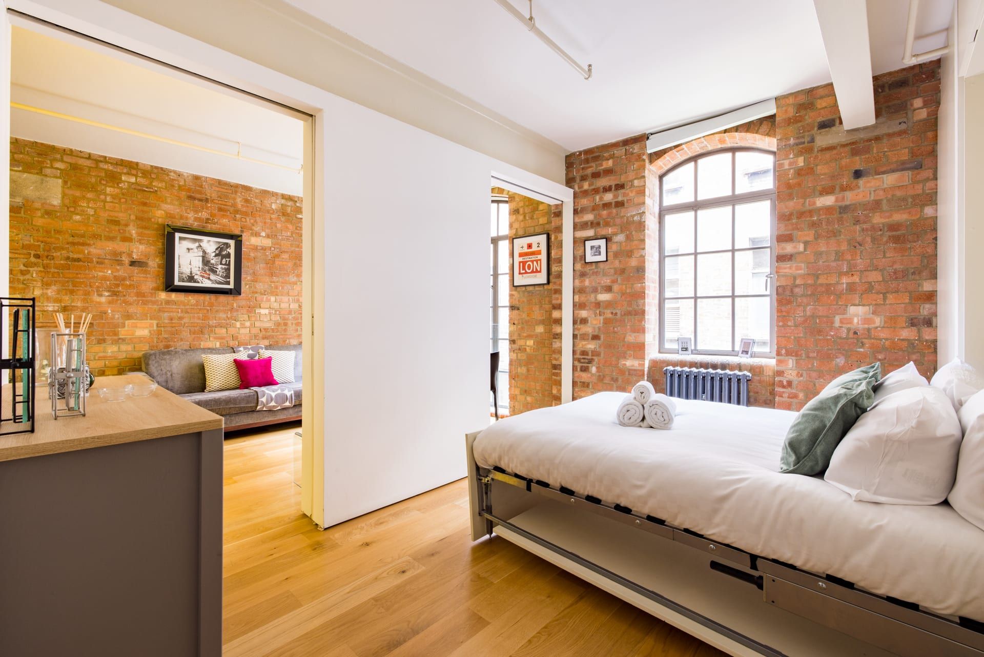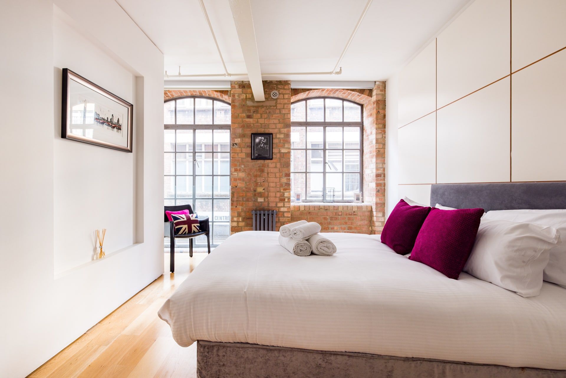 Stepping into this bright, stylish space, you can immediately tell that its former owner was an architect. Keeping many of its original features – like the exposed brick walls and huge warehouse windows – the living area feels cool and contemporary while being awash with natural light. Make yourself comfortable on the sofa with a glass of wine after a day of exploring or sit down to a meal at the window-side table when you’re not out sampling Soho’s eclectic food and bar scene.