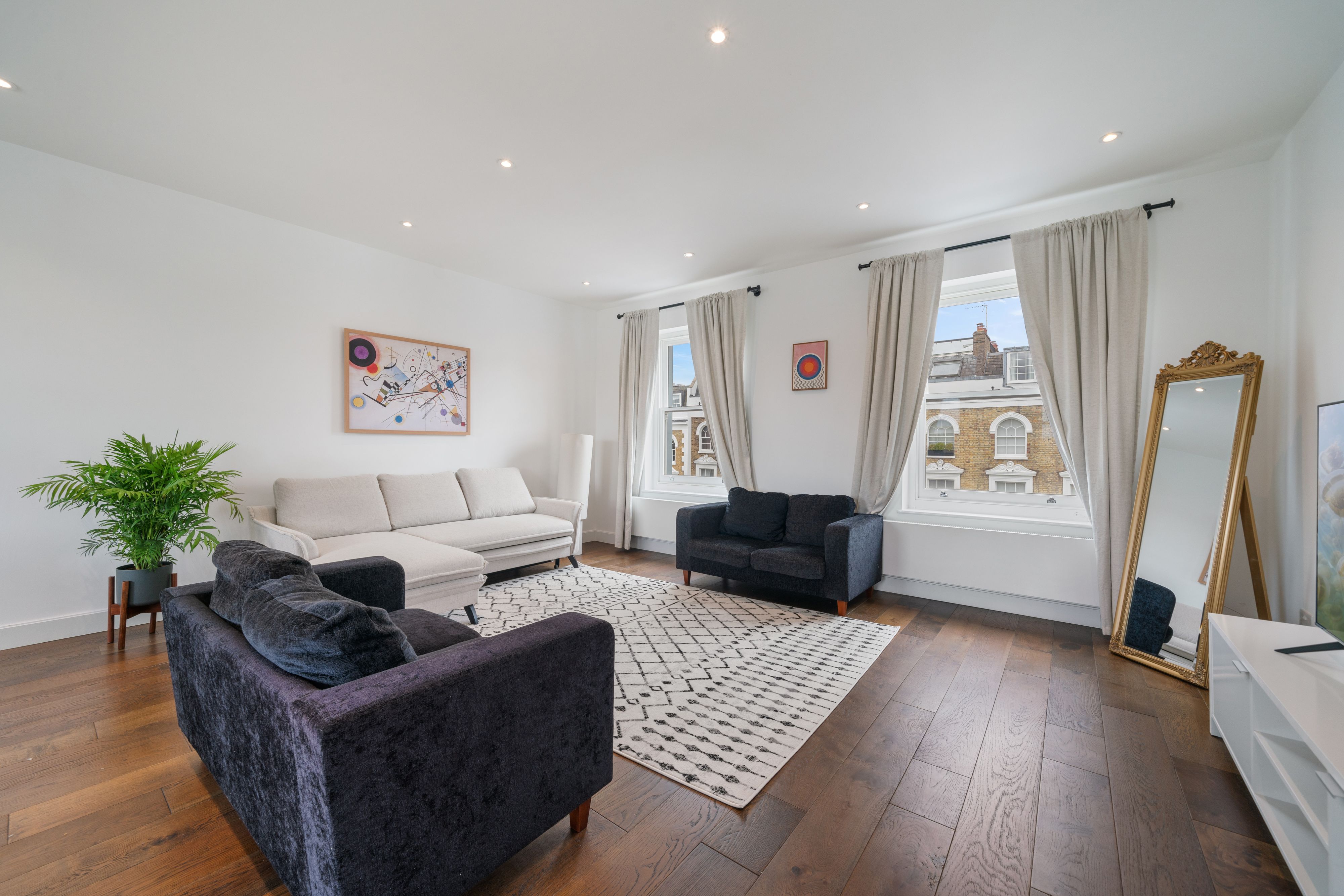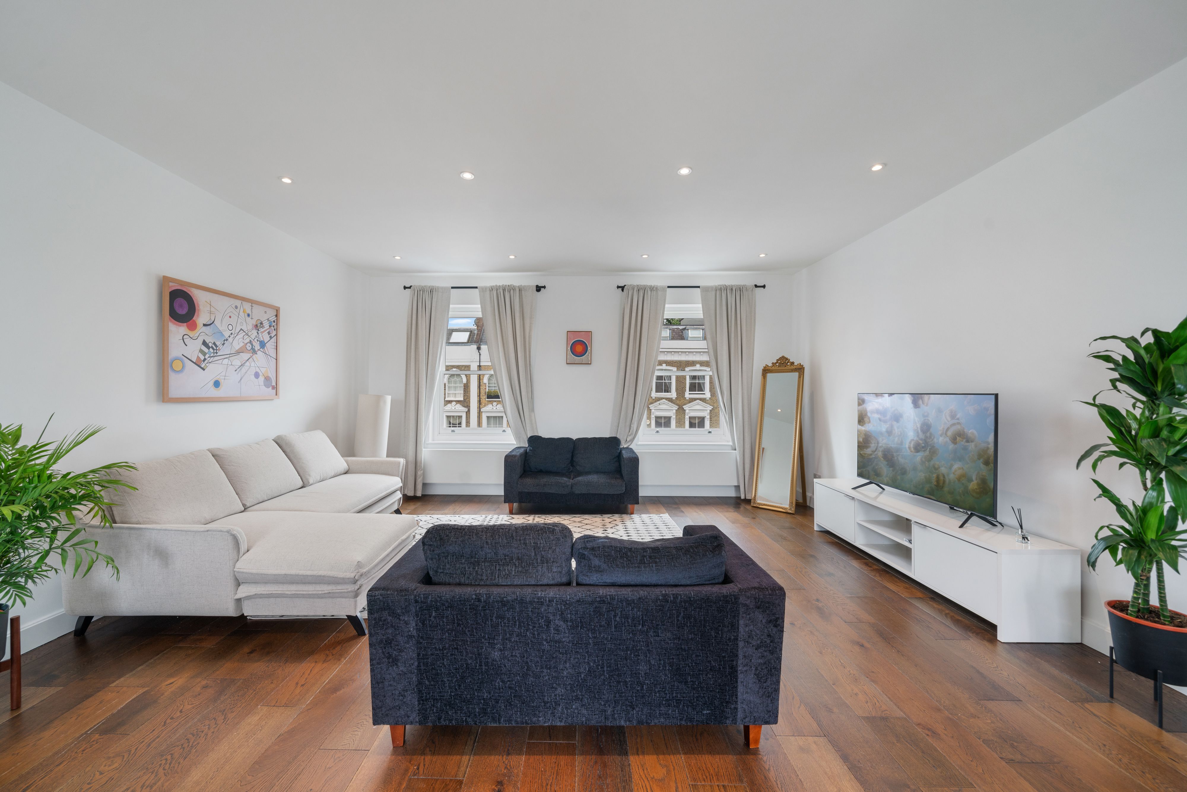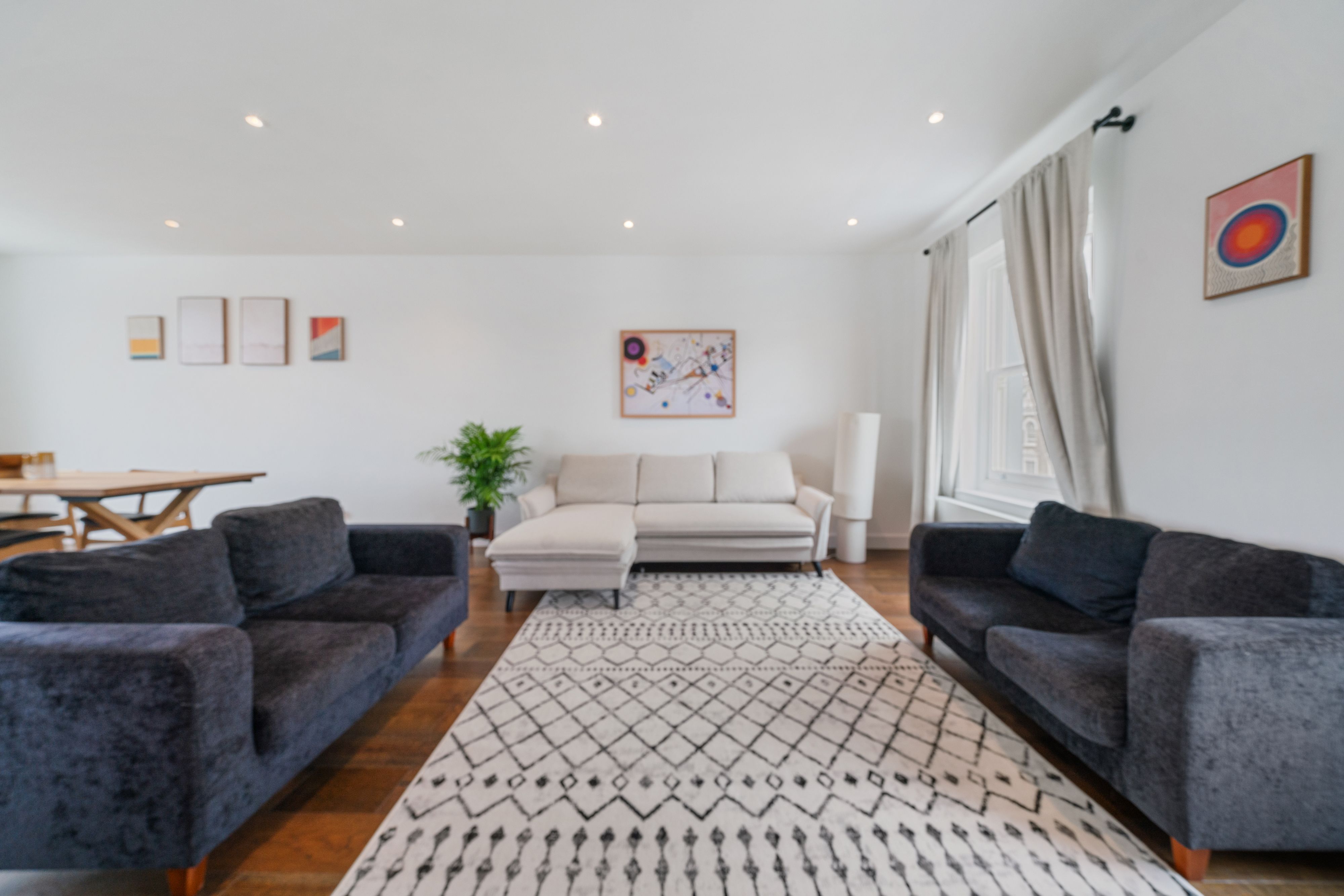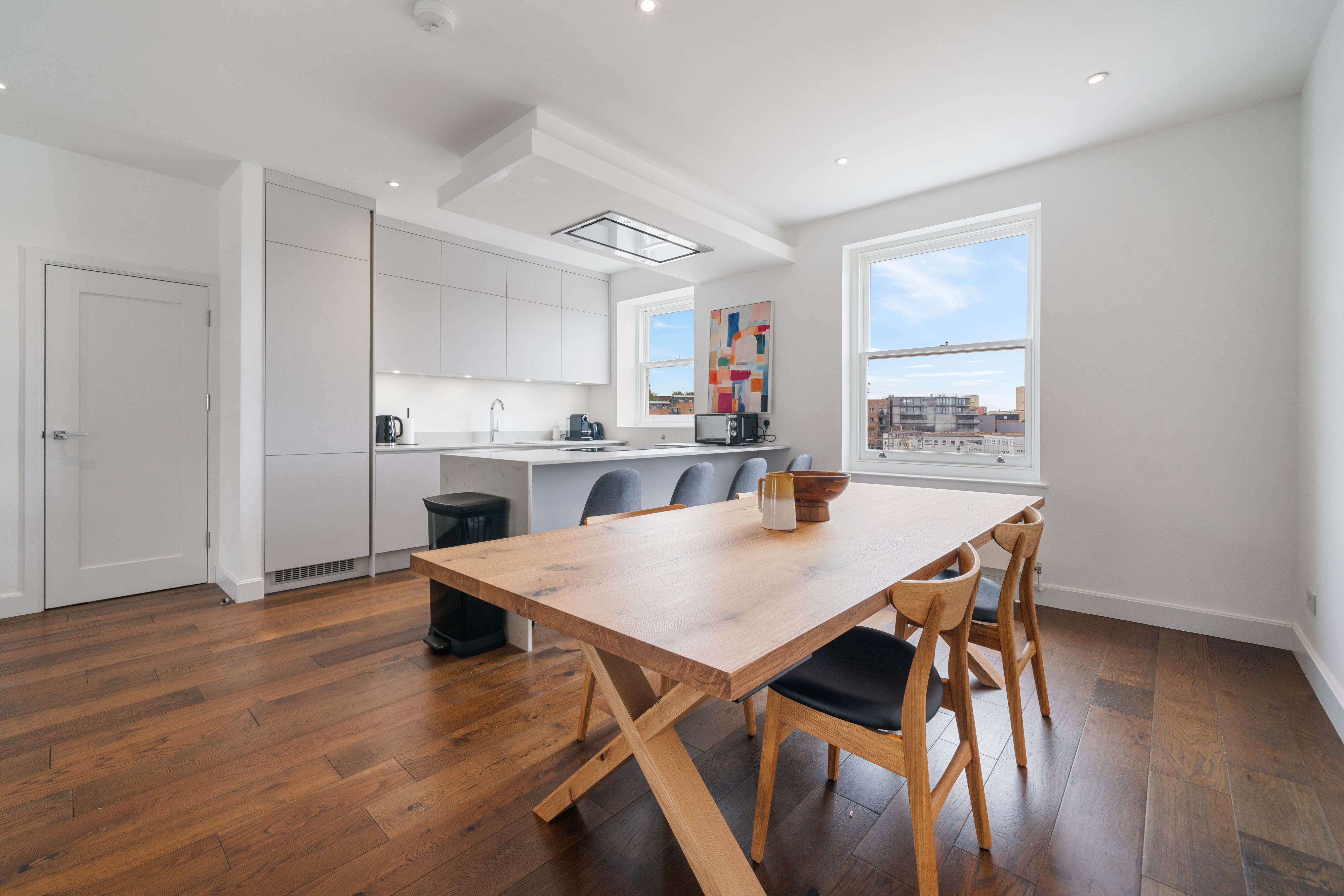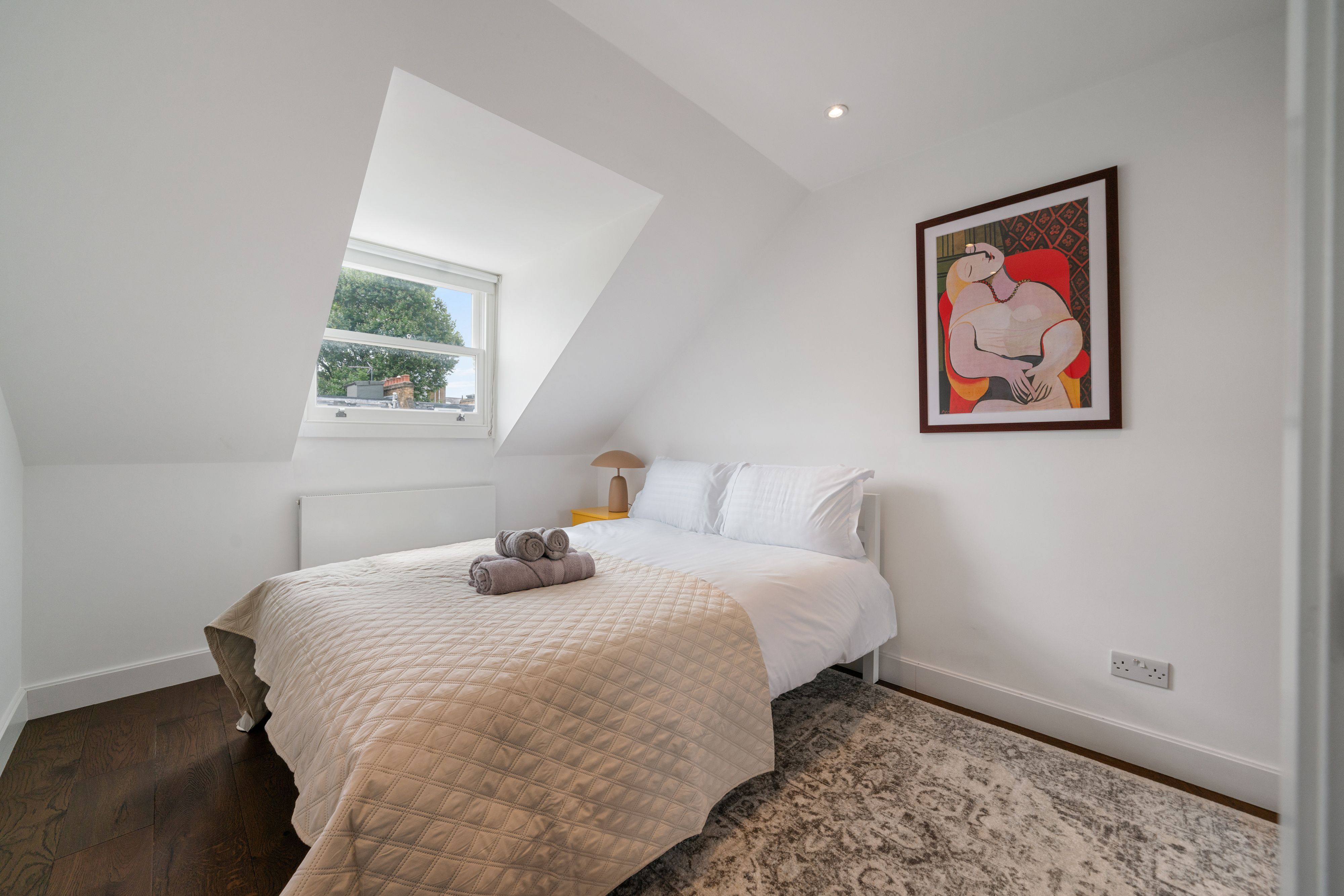 A stone's throw from Primrose Hill, this contemporary townhome is in a prime location. Regent's Park, London Zoo, and the neighbourhood's shops and eateries are within walking distance, while a scenic walk along the canal will take you to Camden Market. Back home, the breezy living space allows everyone to relax together. With a trio of well-sized bedrooms, a balcony, and a layout spanning three floors, space certainly won't be lacking here. For an additional fee, your host can also set up a sofa bed for guests seven and eight.