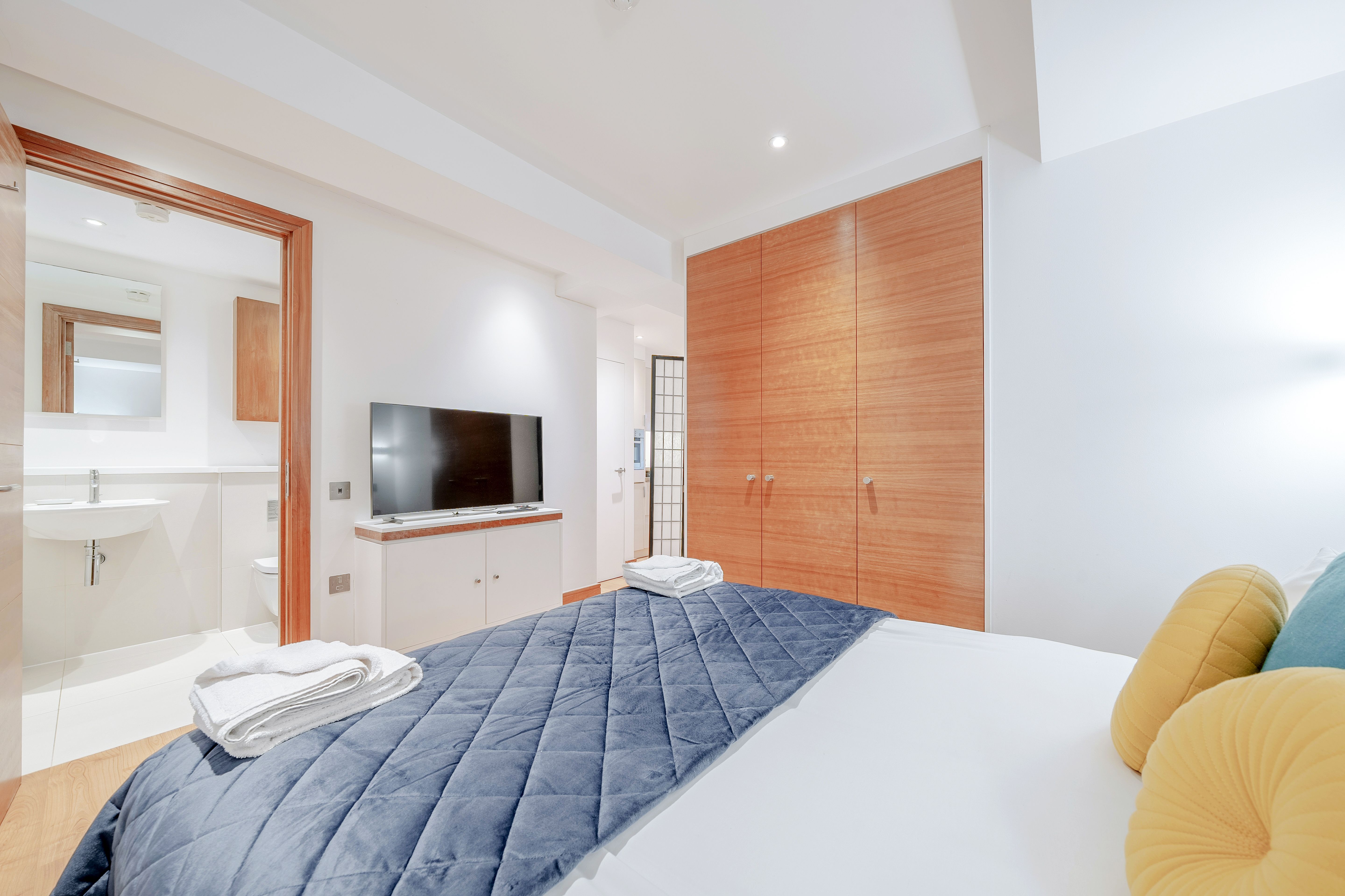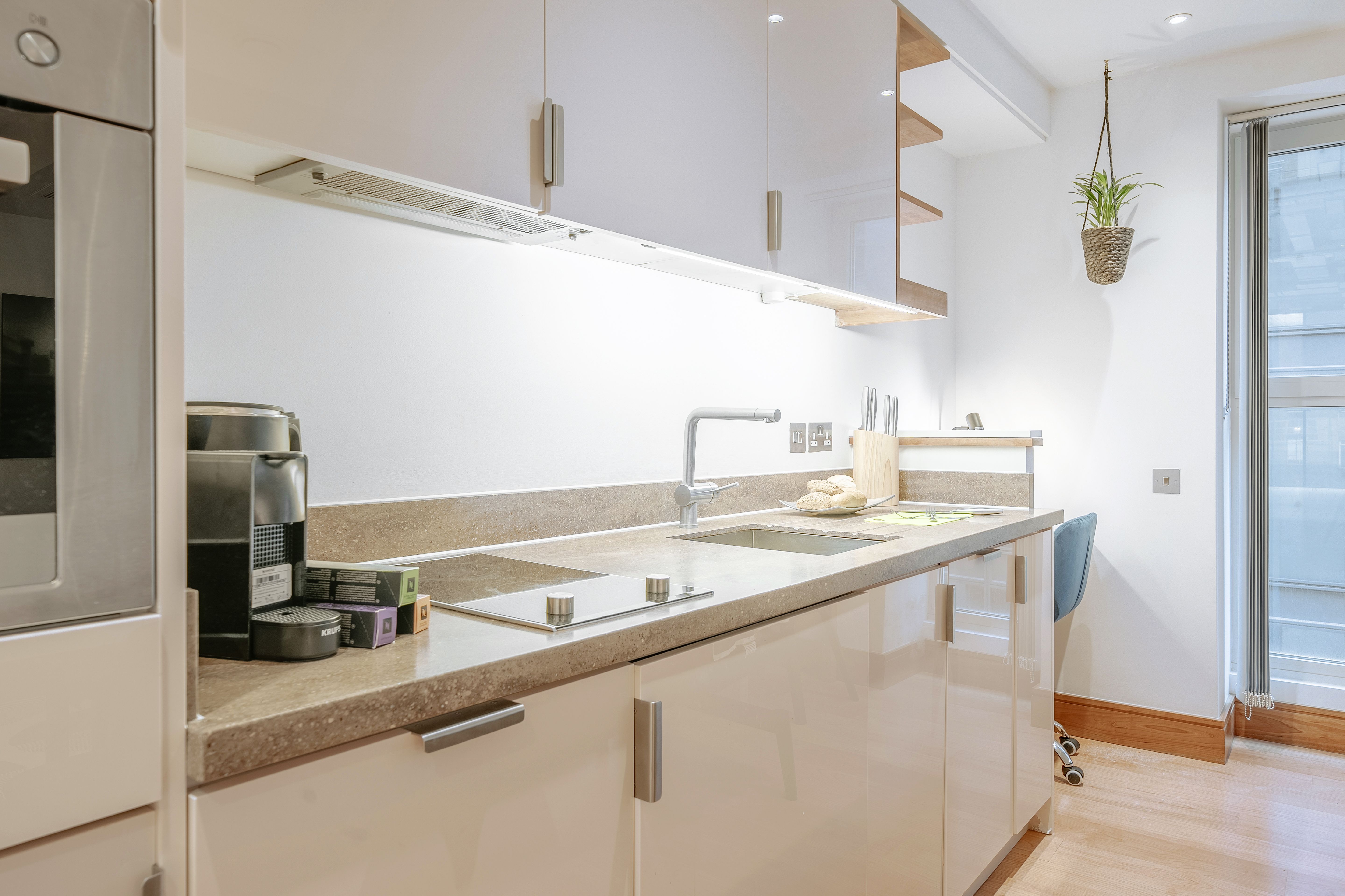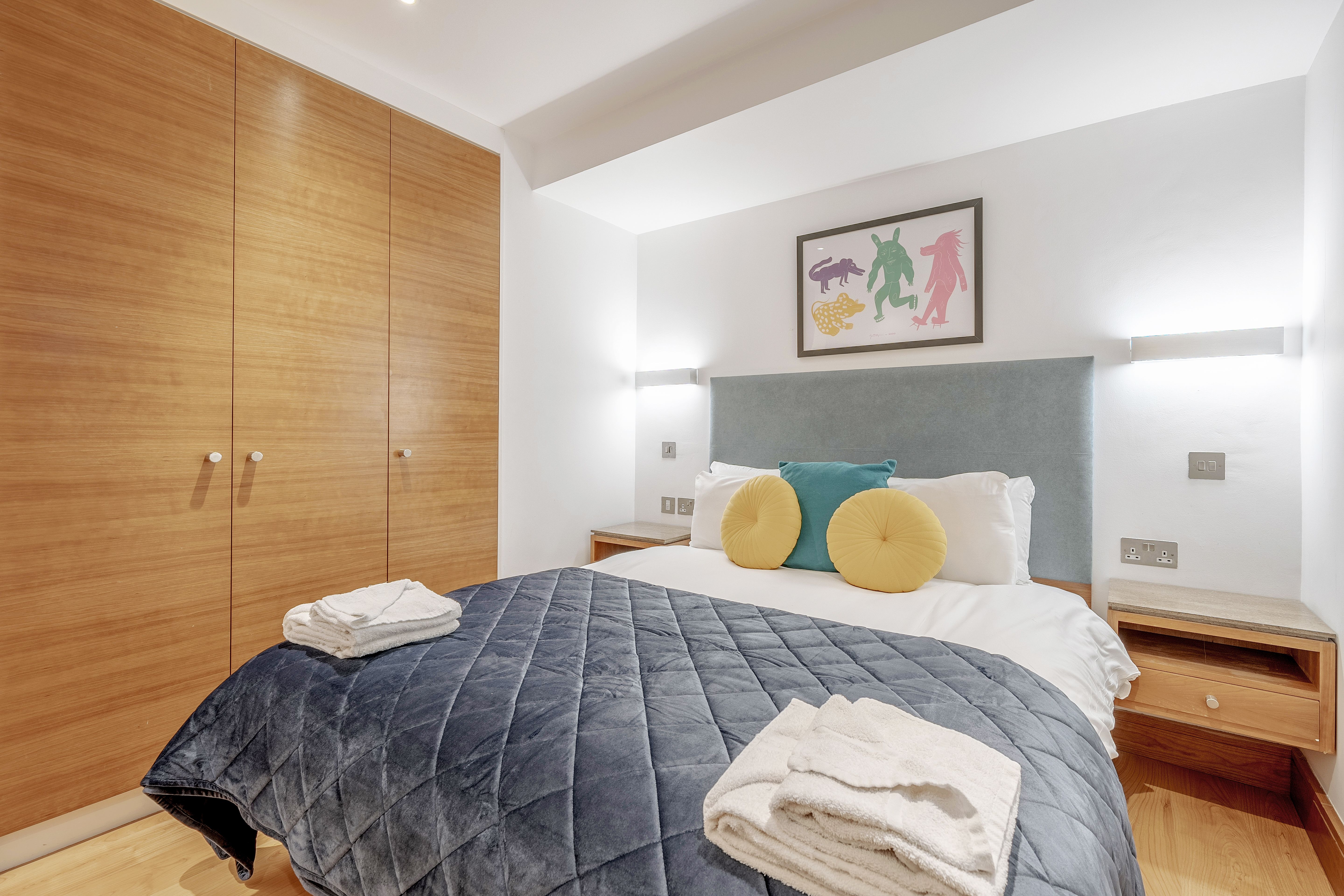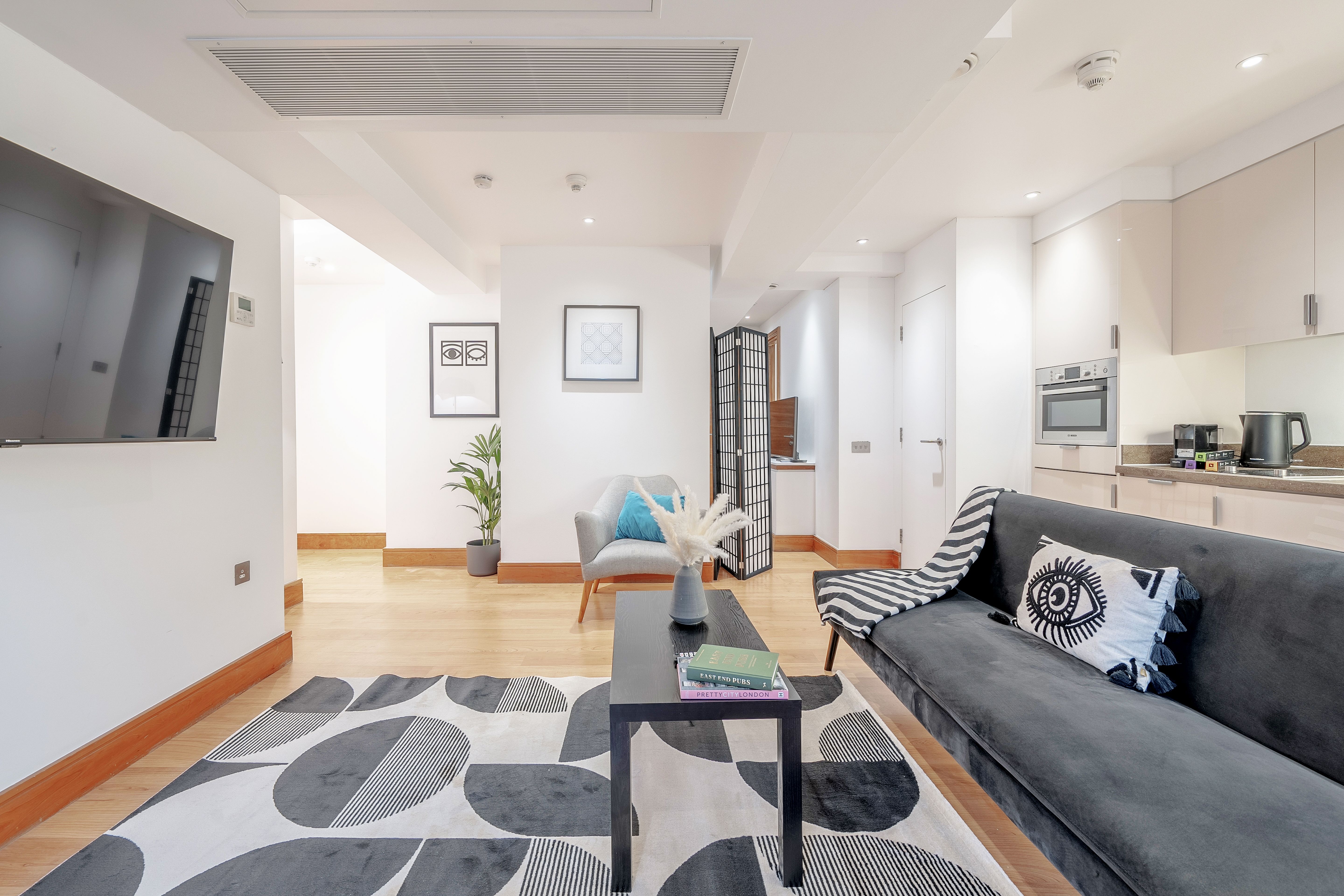 With Tower Bridge just a short stroll away and the historic streets of the City of London on your doorstep, this apartment places you right where centuries of history meet modern city living. The space is calm and contemporary with clean lines, warm colour palettes, and a super-comfy bed for unwinding after a day in the capital. There’s also a fully equipped kitchen and a sofa bed for an extra guest. Whether you're here for work or sightseeing, it’s a well-connected base with all the essentials (and more) for a smart stay in the city.