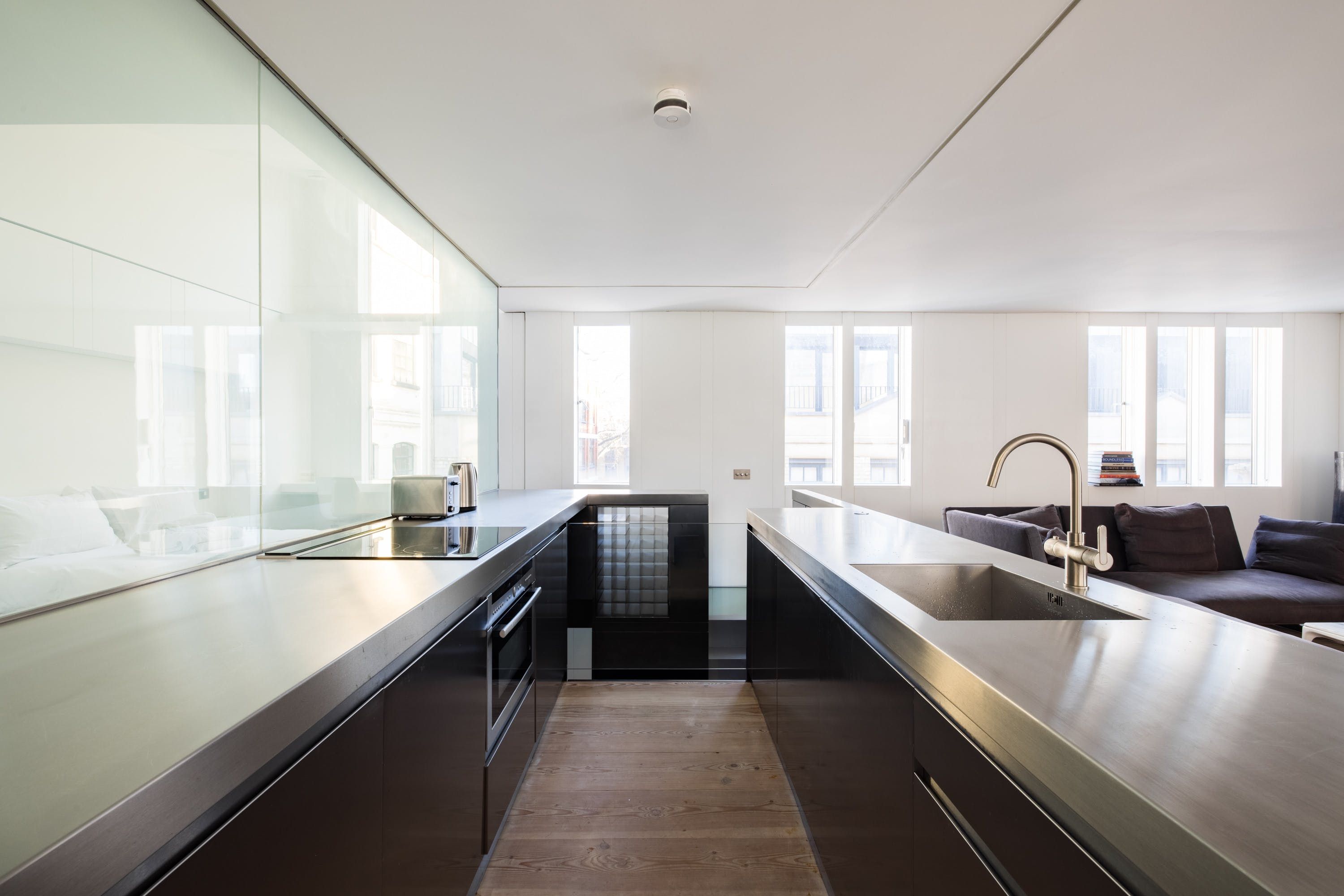 Combine crisp and modern interiors with lavish extras, you’ll get this flash penthouse apartment in the thumping heart of Shoreditch. Natural light pours through the large south-facing window and illuminates the sleek living space – it’s the ideal spot for reclining with your morning coffee or catching up on work at the dining table. Step outside of your front door and you’ll find yourself surrounded by some of the city’s best bars, authentic East End pubs and world-class eateries. Check out exhibitions in the Autograph Gallery, a four-minute walk away, or take the fifteen-minute mosey to Brick Lane to fill up on street food before browsing the vintage shops.