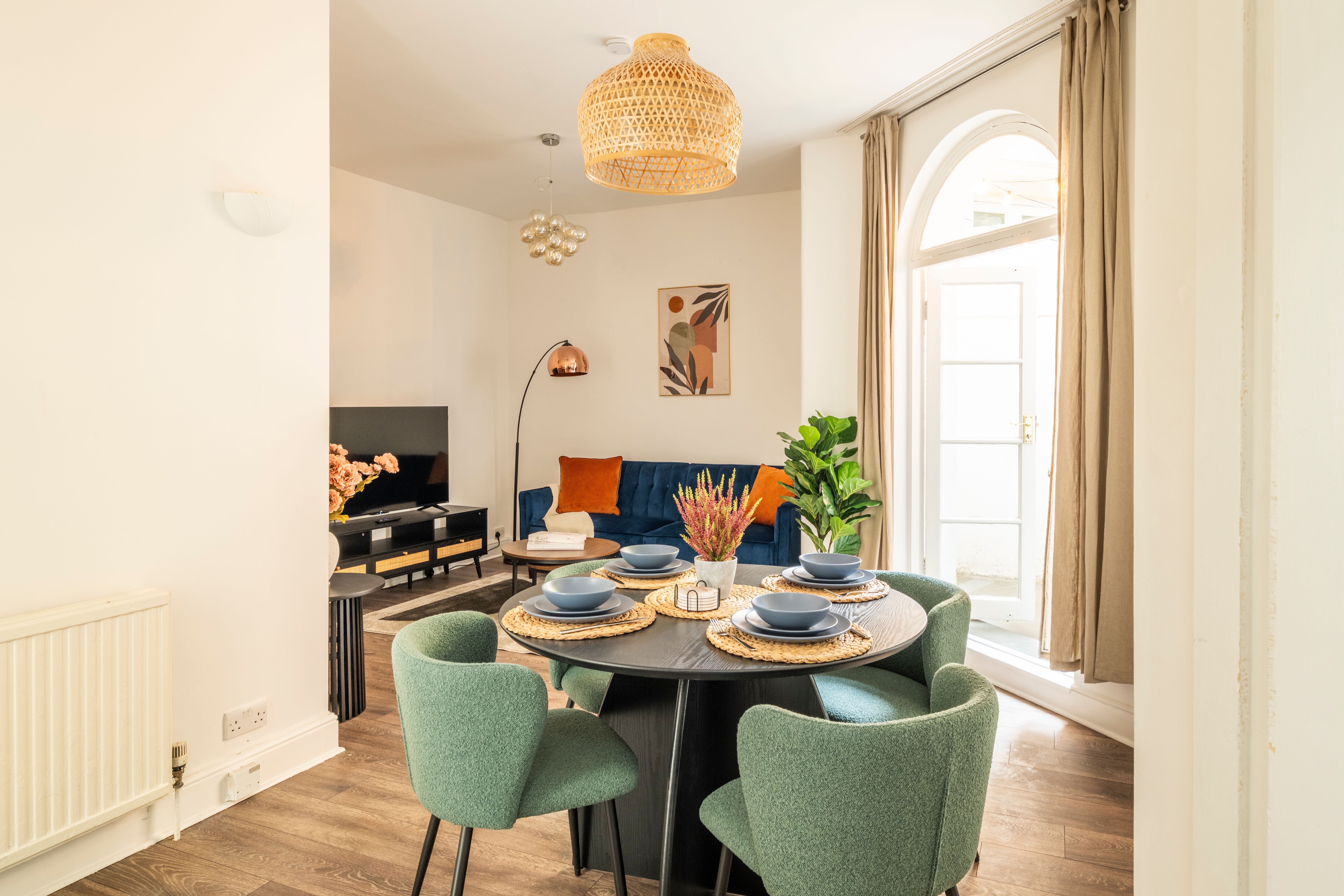 You'll find this charming basement apartment in a residential corner of Kensington. Conveniently located, it has direct tube links to Heathrow Airport and a number of London's most popular attractions. It's also a short walk from top spots like Hyde Park, Kensington Palace, and the V&A museum – not to mention an array of cafés, pubs and restaurants. This home is a perfect base for exploring London, with a full kitchen for home cooking and a private terrace with a dining table so you can take dinner outside. There's even a dedicated workspace so you can catch up on work, if you must, and a bathtub for ultimate, feet-up relaxation.