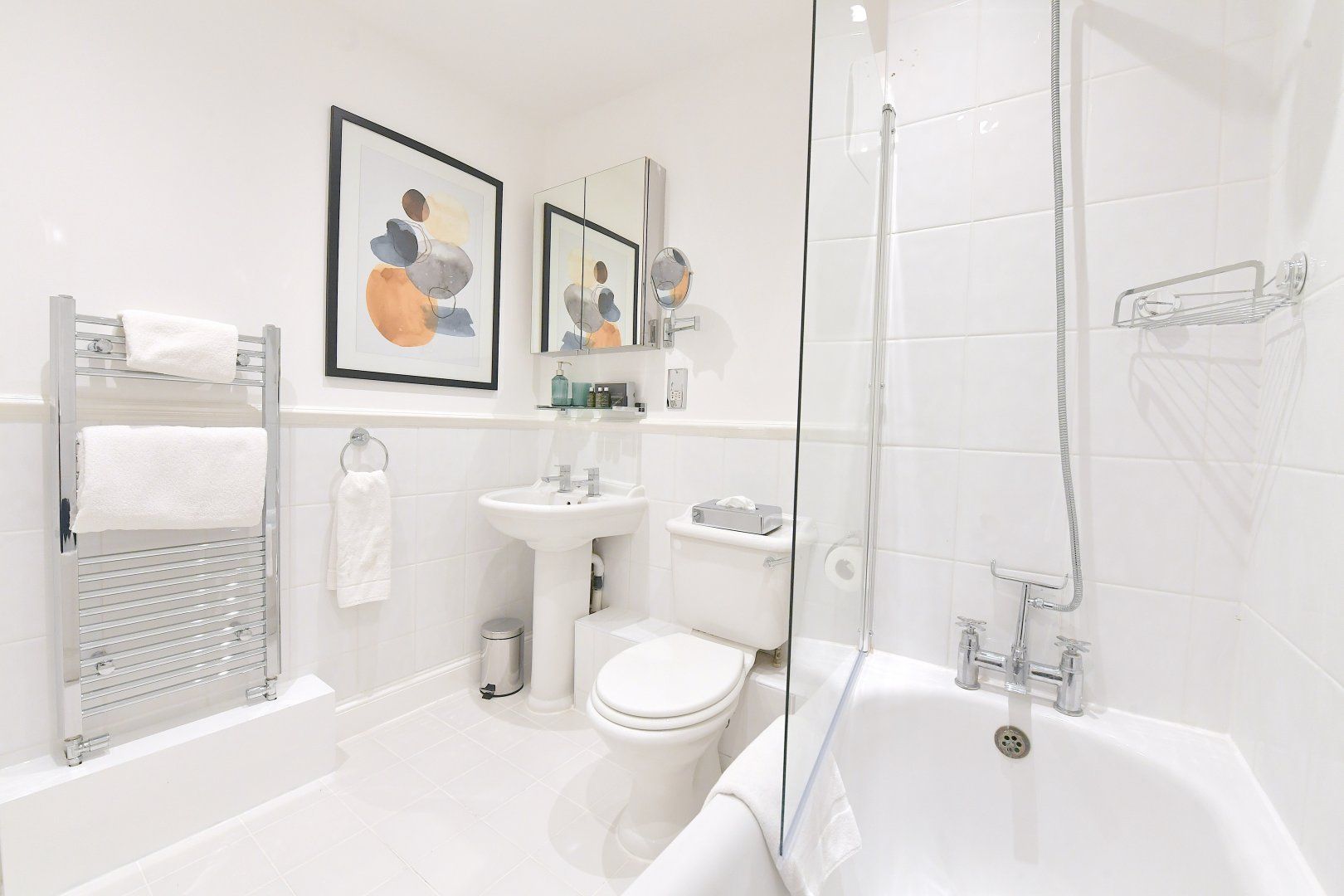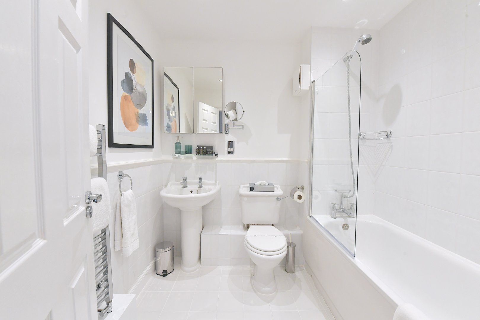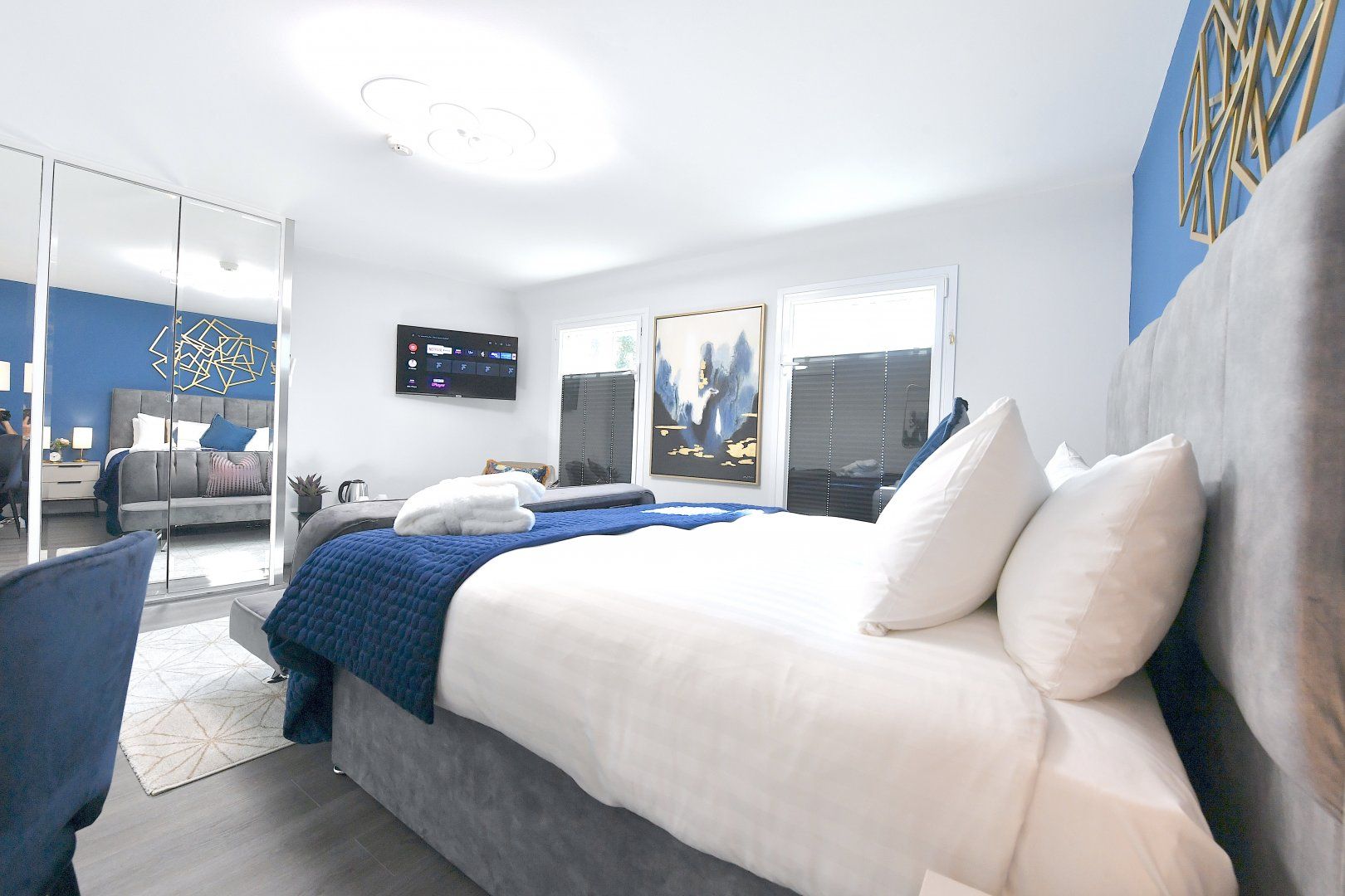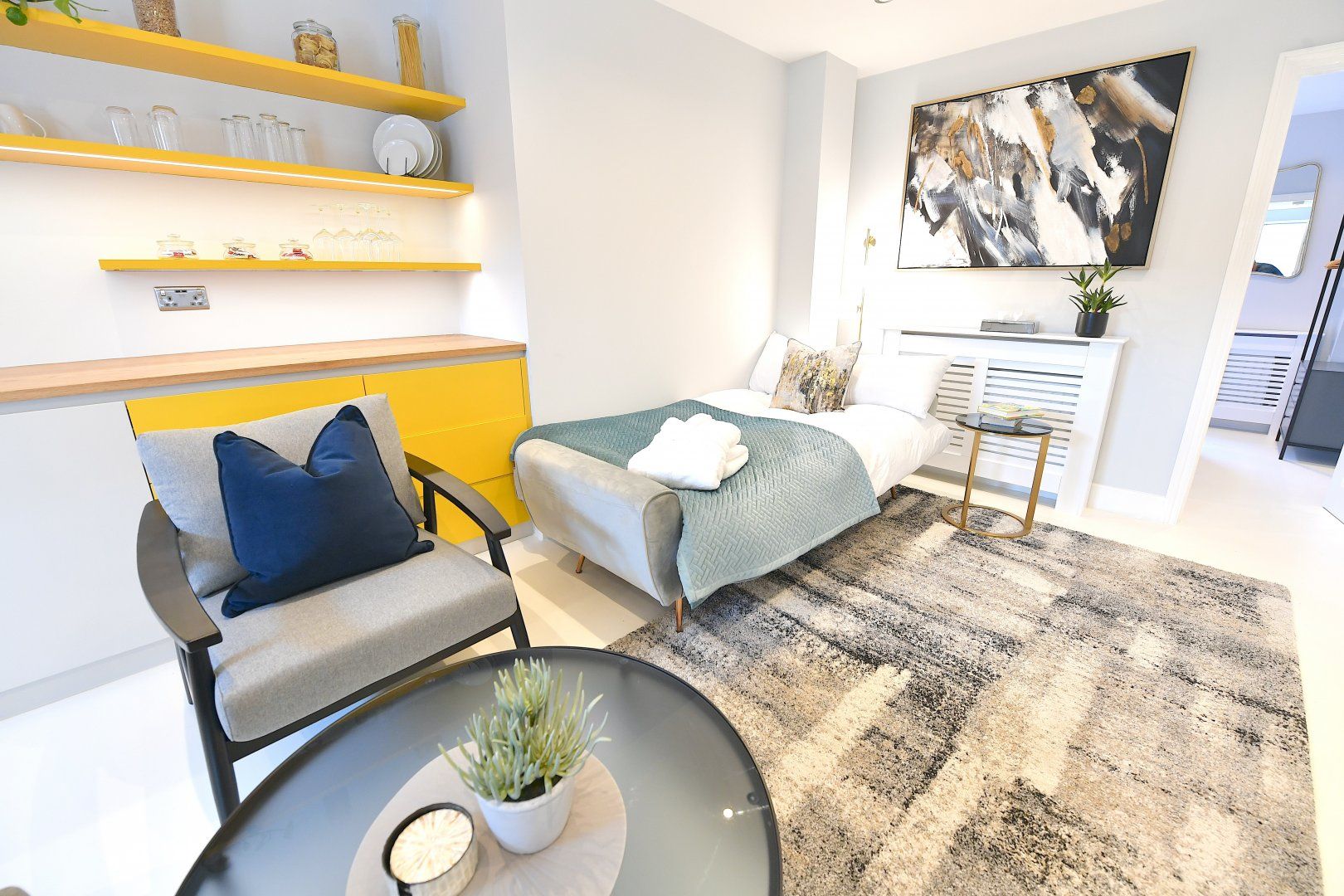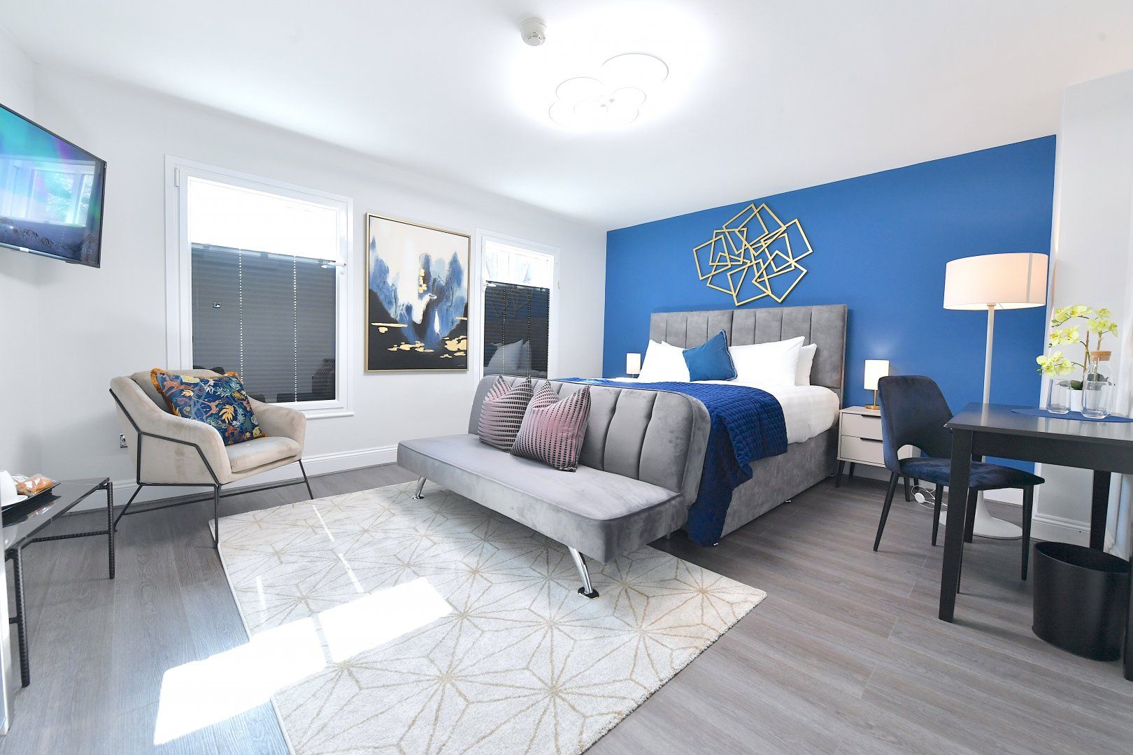Back home, bright colourful tones and natural woods give the home a playful feel, while plush furnishings keep things comfortable. With a choice of two sitting areas, two kitchens as well as adaptable dining and living space, this is seamless modern living at its finest. Those studying or working from home will also find laptop-friendly desk space, and there's even an outside patio if you wish to take five.