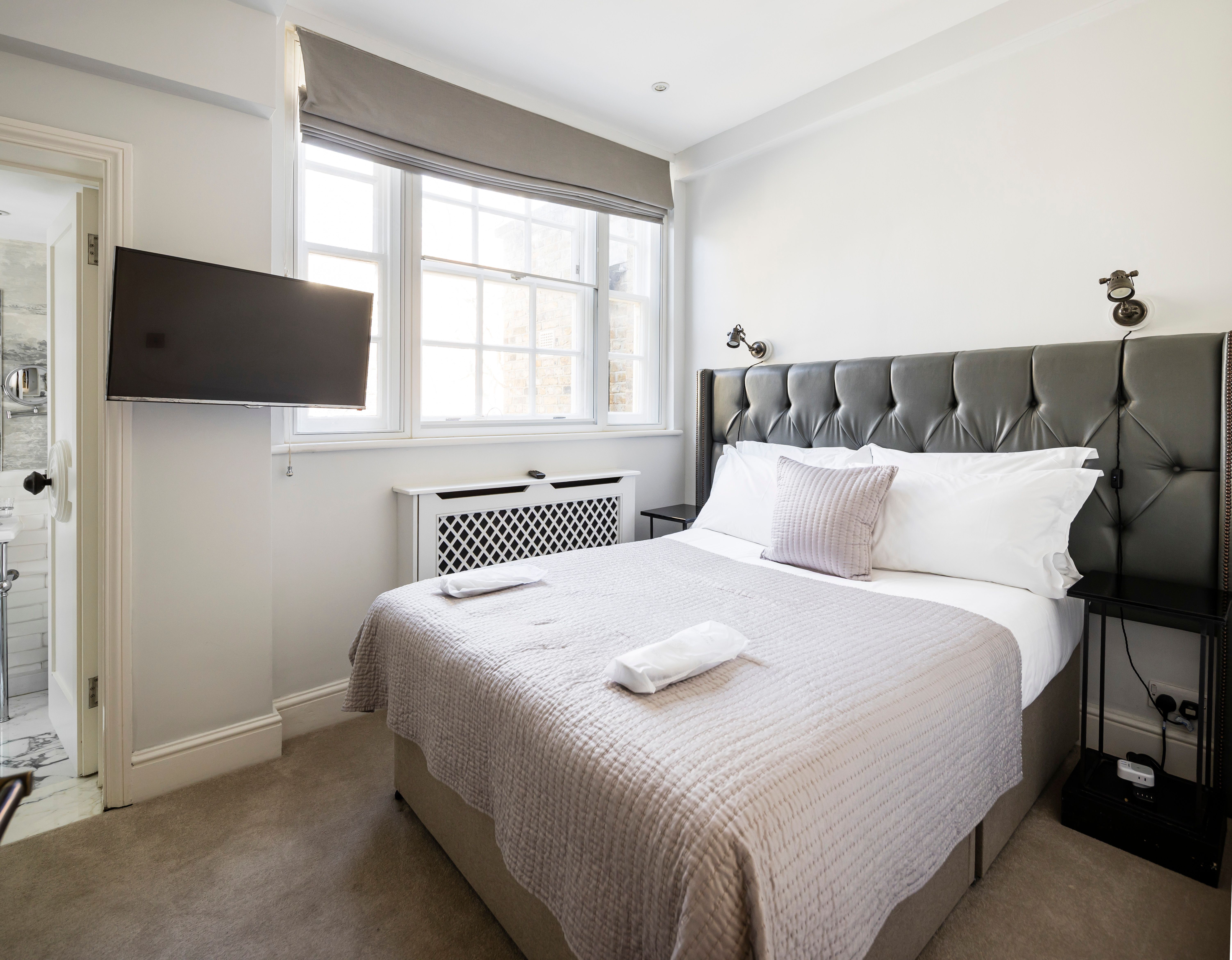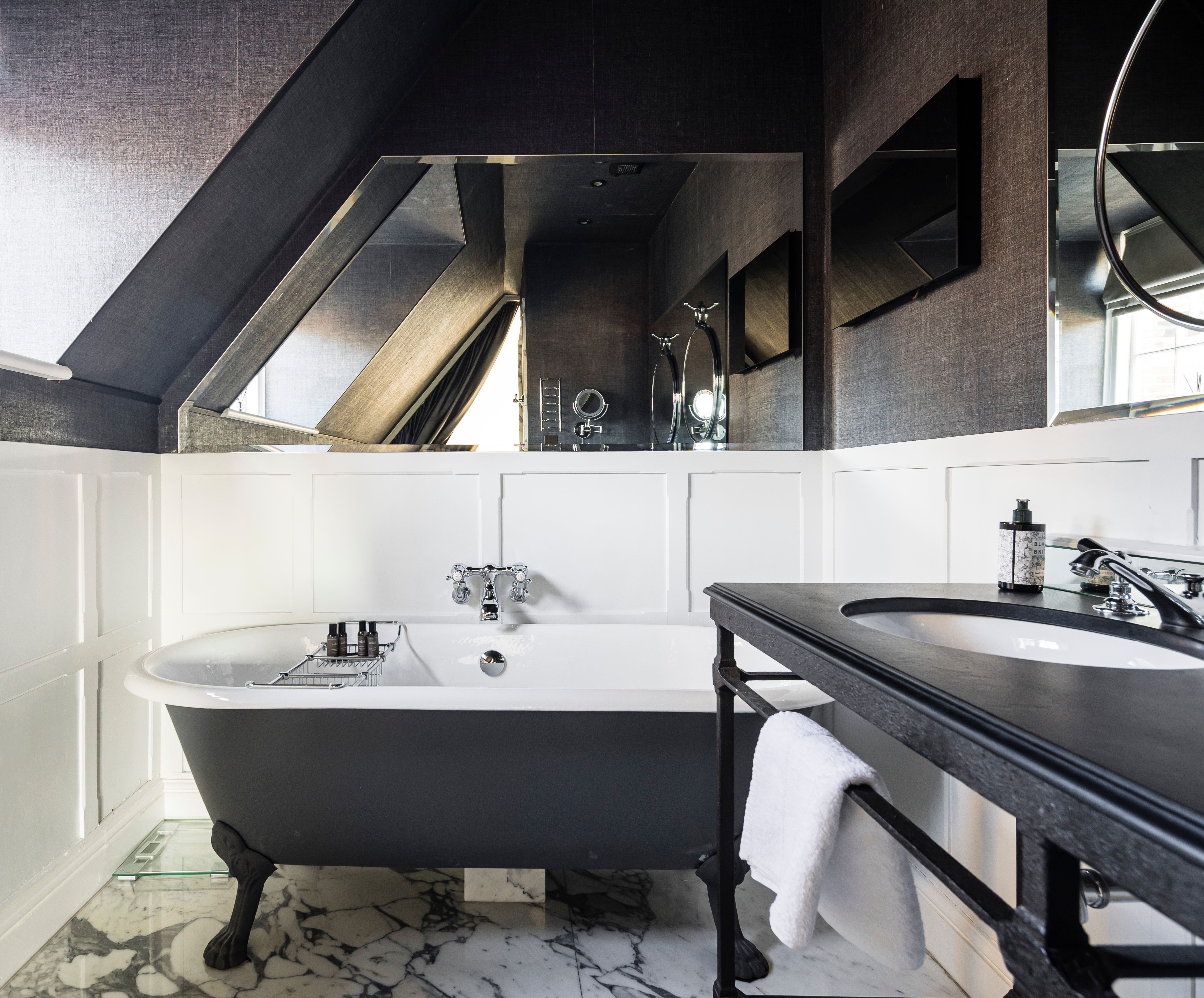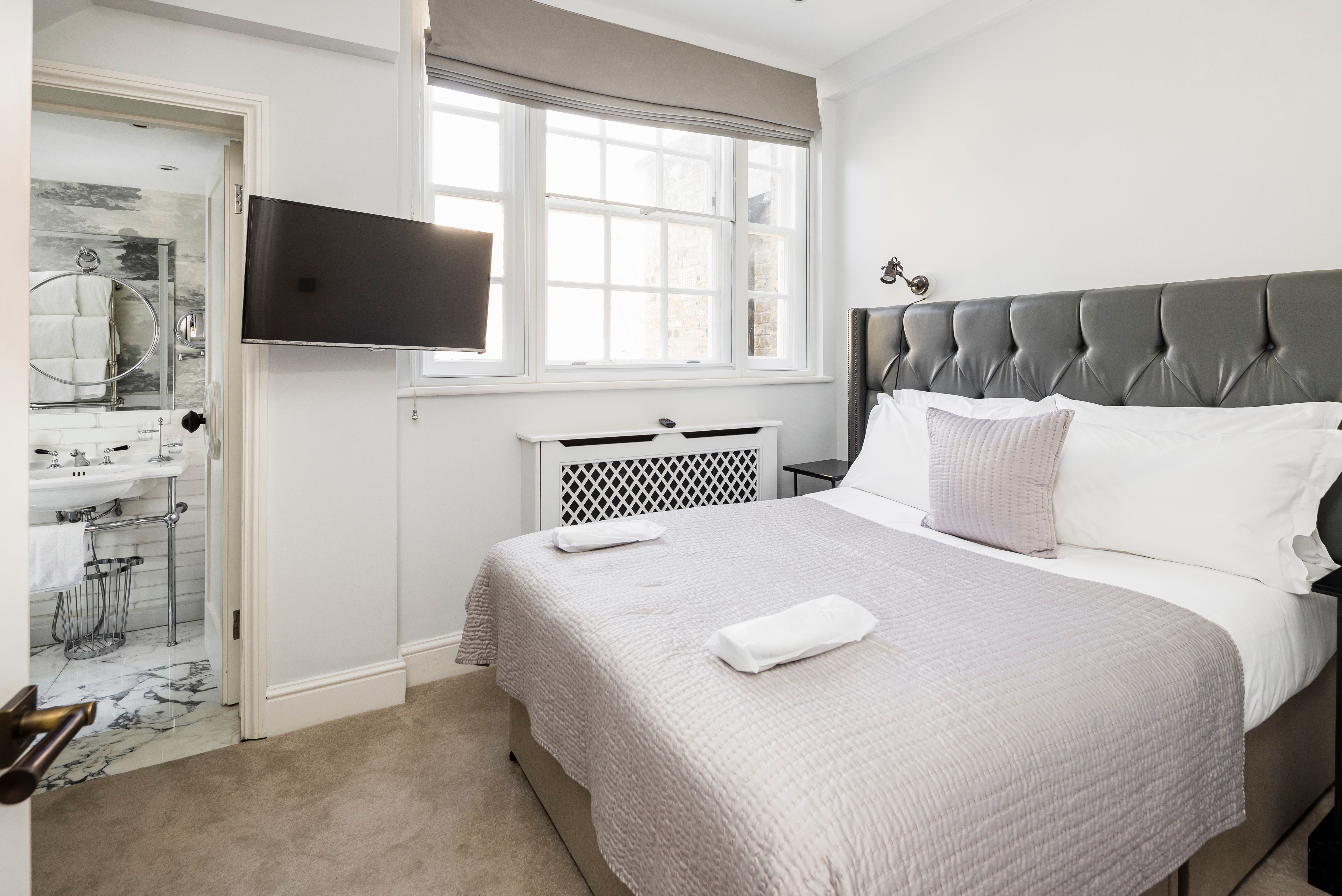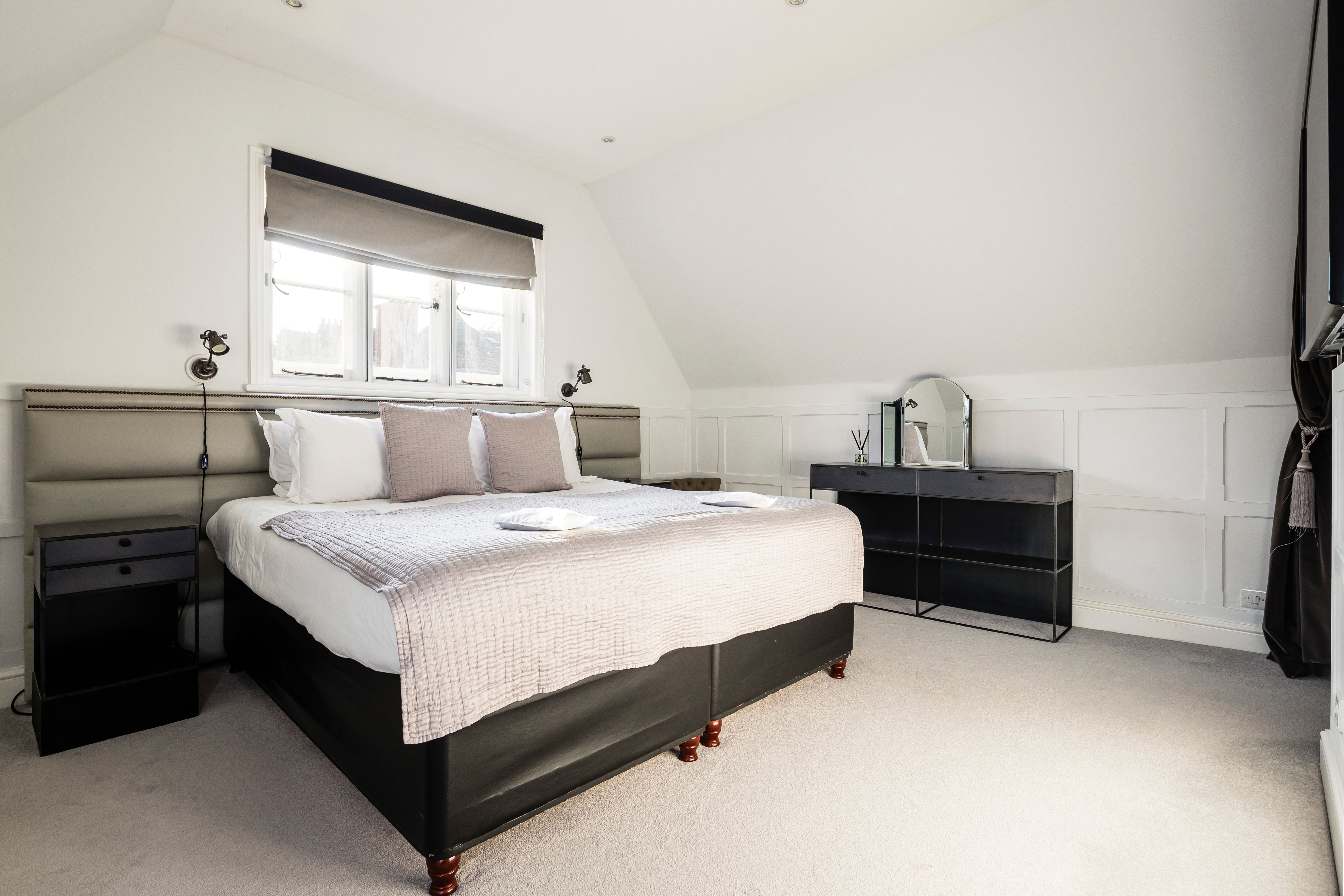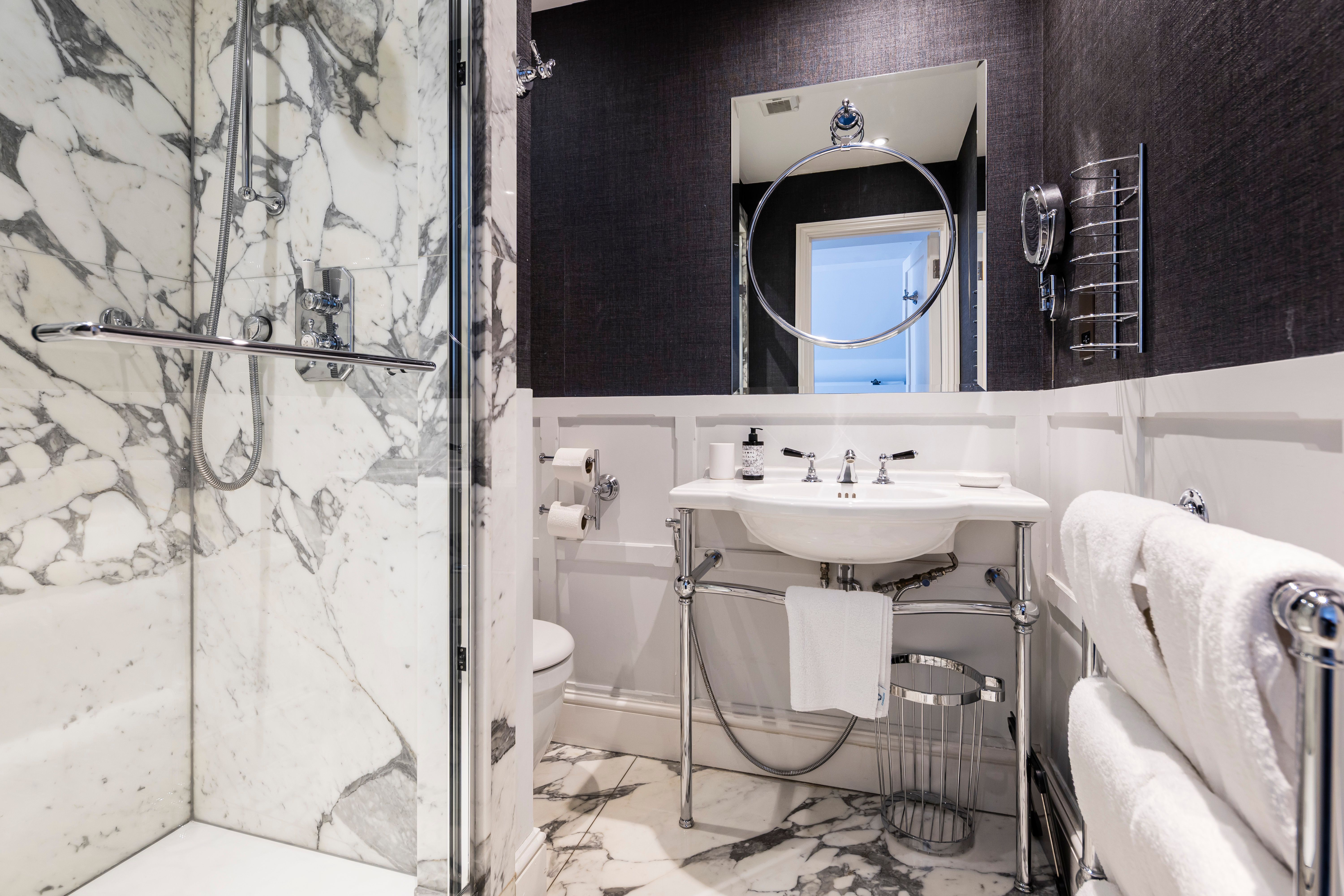This penthouse residence is located in the heart of Mayfair, one of London's most exclusive areas. The location is perfect for walks in Hyde Park, shopping on Oxford Street, and dining in Covent Garden nearby. Back home, you'll find plenty of space to relax together after a busy day in the city, including an elegant living area with high vaulted ceilings and a Chesterfield sofa. The dining table seats up to eight, and there is a fully fitted kitchen with modern appliances. All four bedrooms benefit from a high-end touch, with the main bedroom offering a roll-top bathtub. But the real standout here is the private outdoor terrace – ideal for alfresco dining and entertaining during the summer months.
