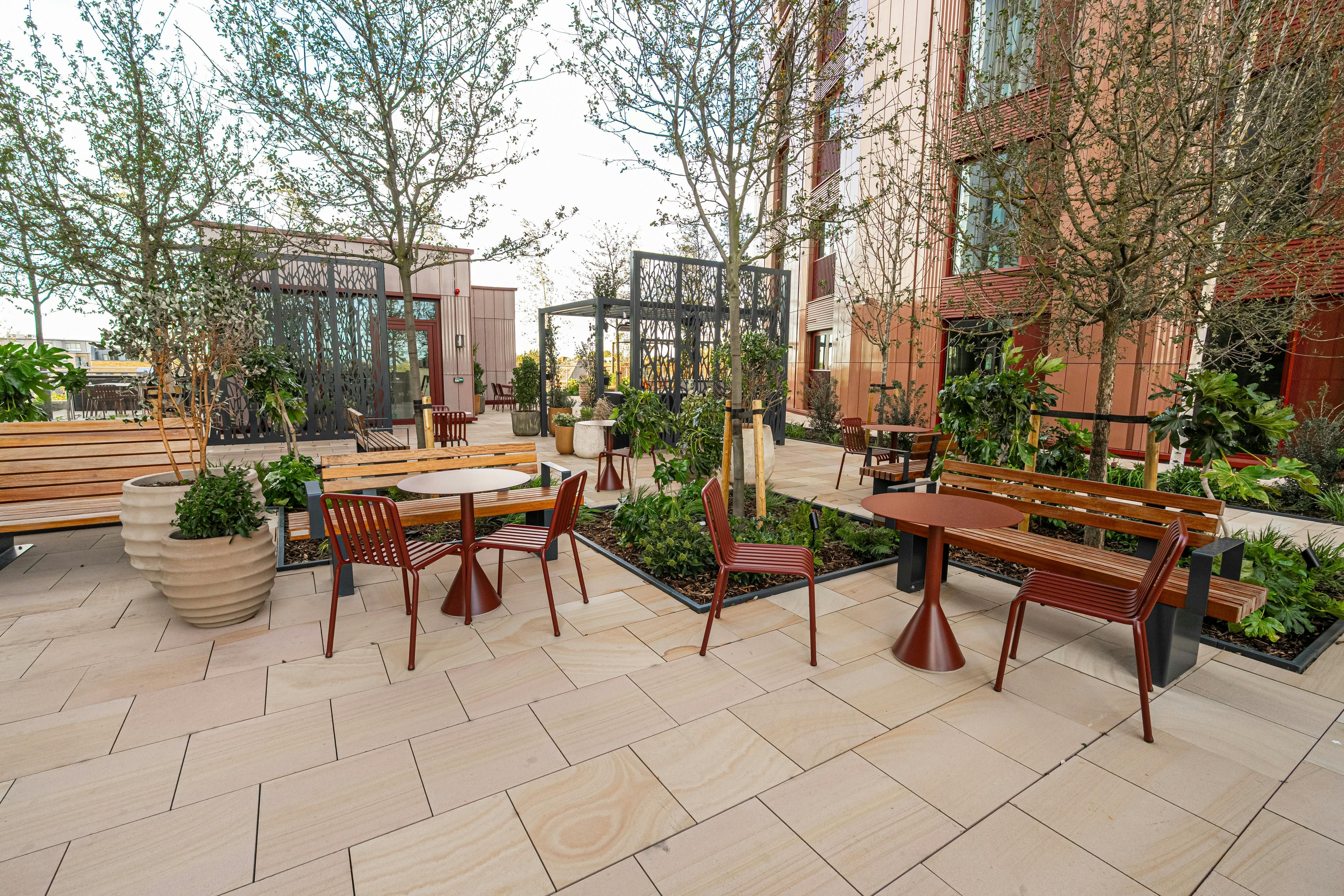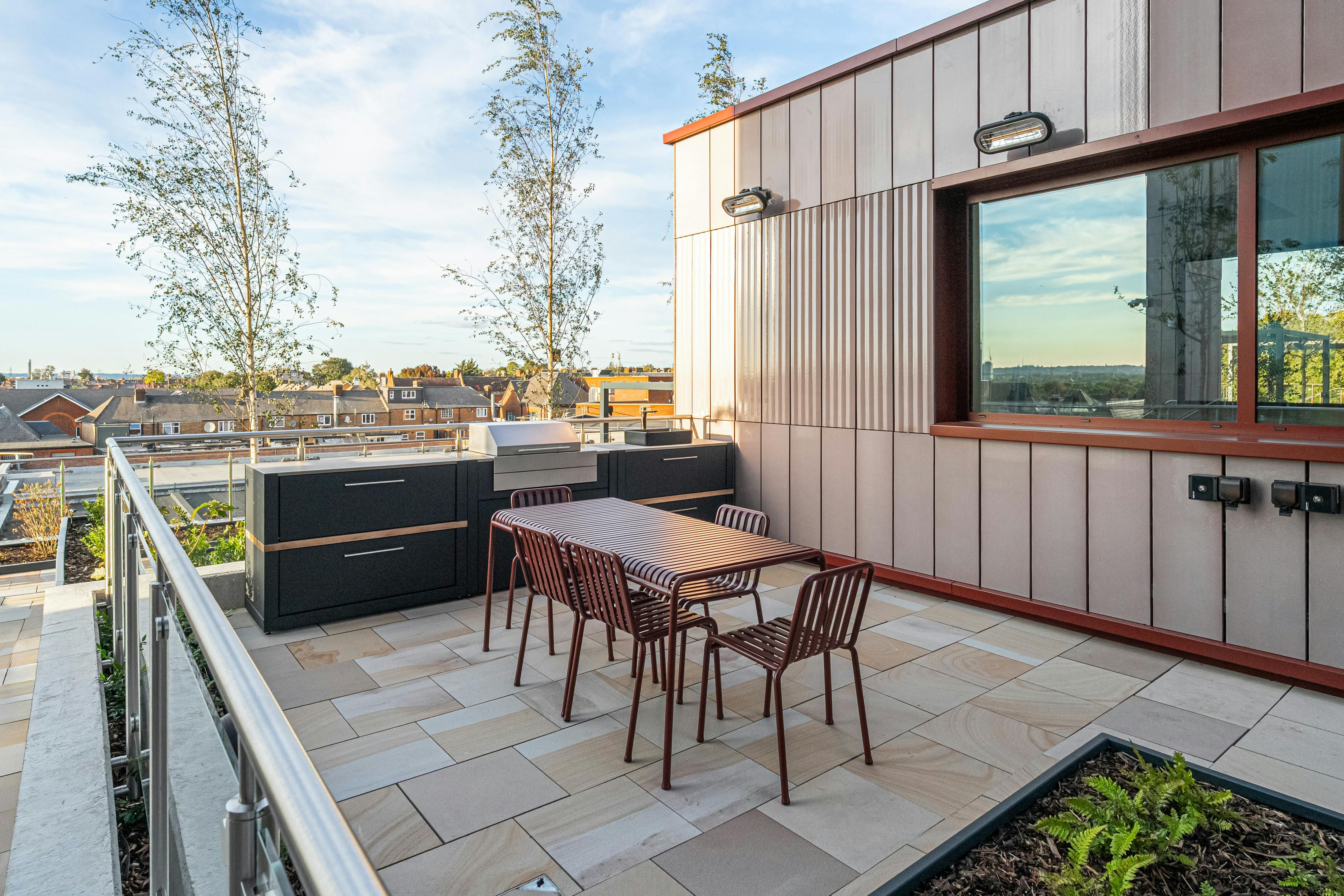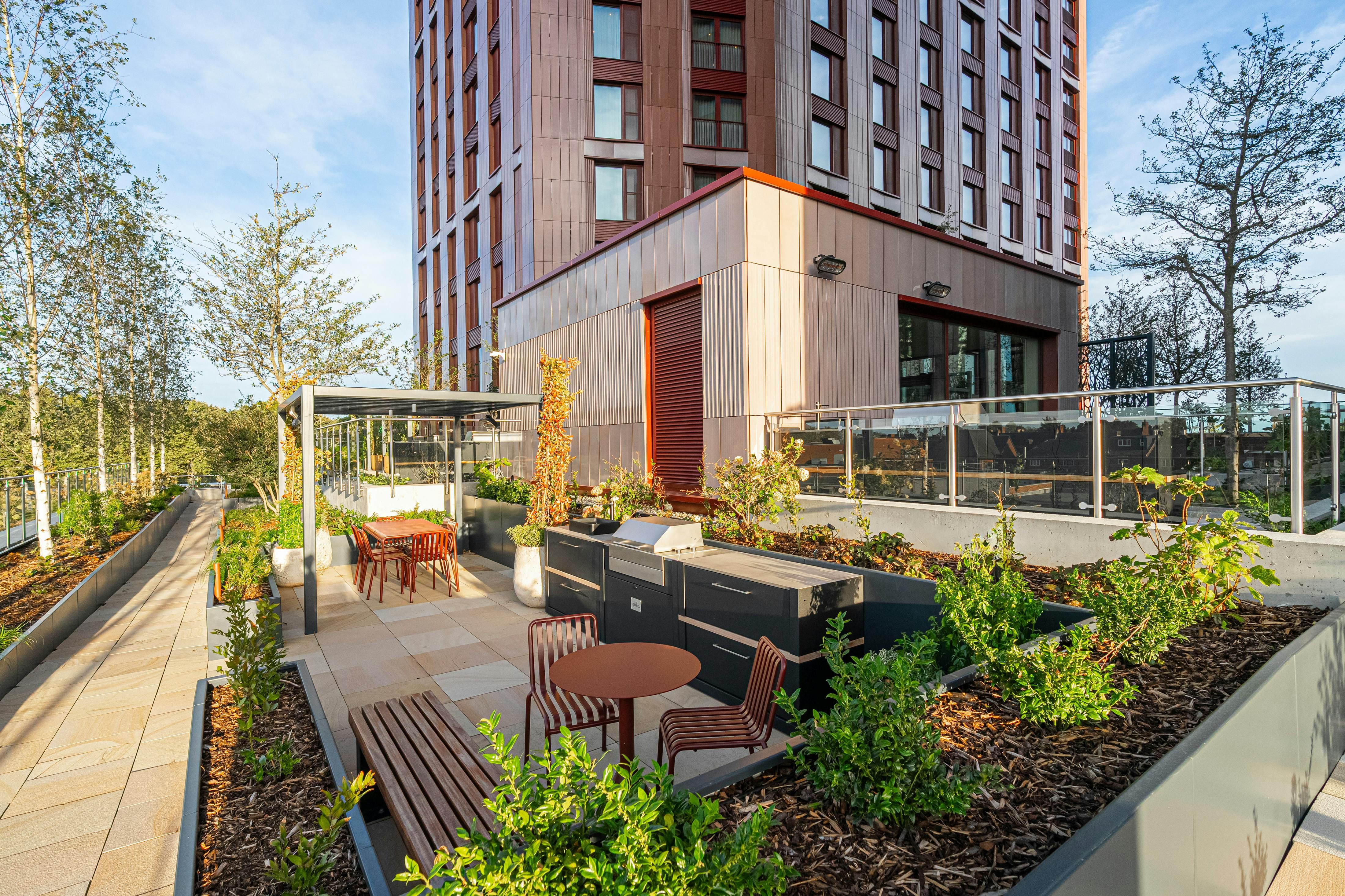 *You'll have access to the on-site gym, coworking space, and rooftop terrace here. They're shared with the building's other residents.
