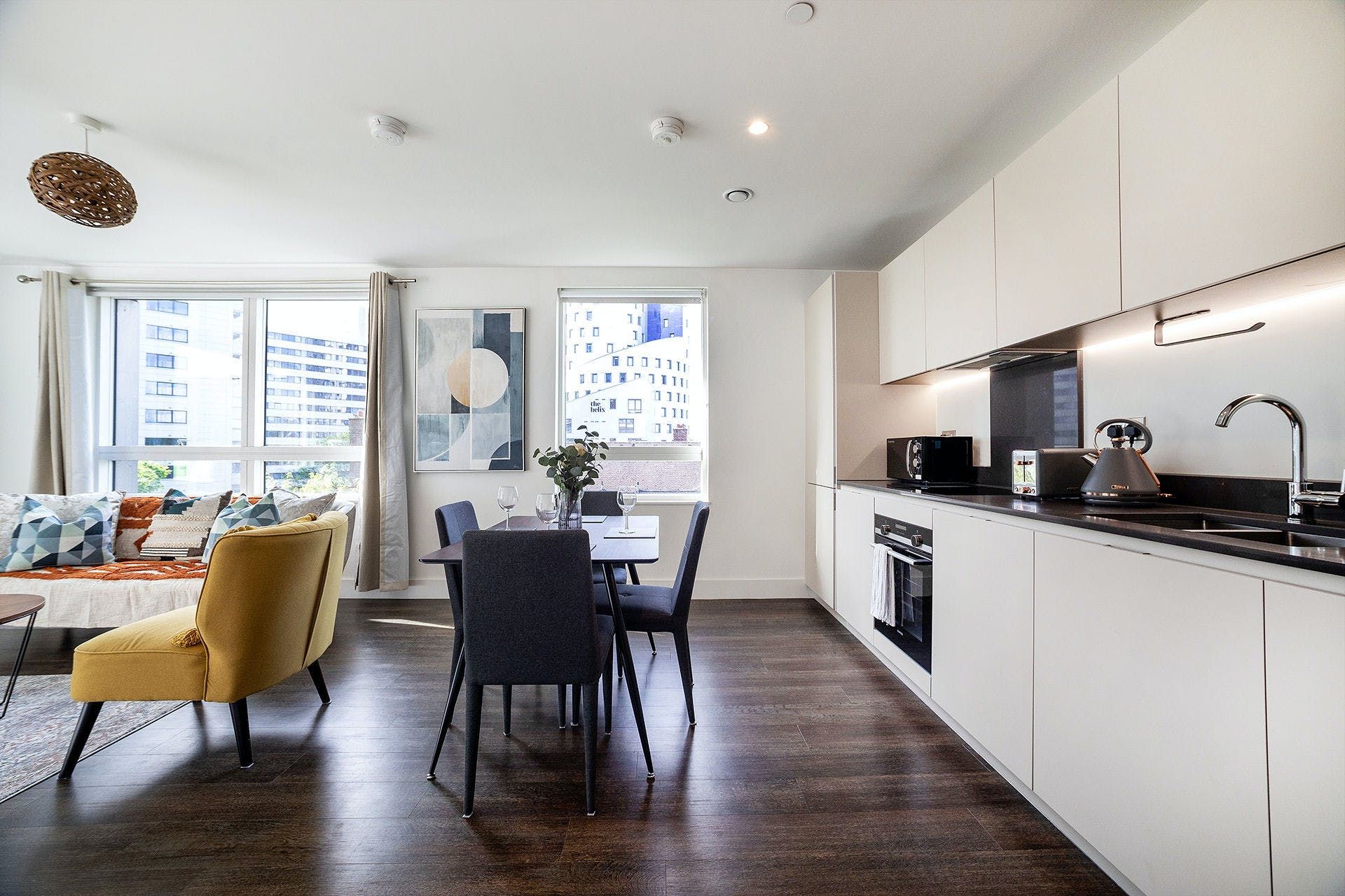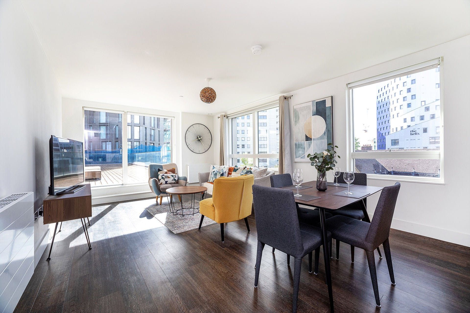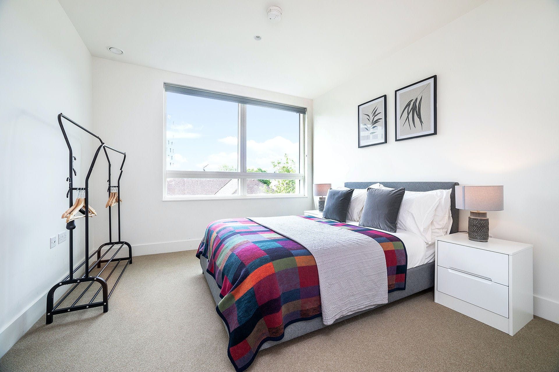 How about overlooking the London skyline from a large private terrace, ideal for sipping sundowners? A stone's throw from Wembley Stadium and Arena, this home is the perfect pick for ticket holders. But you may be within earshot of crowds and concerts, which might not suit everyone. We love the well-lit interior, and there are communal gardens on-site. While shops and cafes are on your doorstep, nearby public transport links can shuttle you to Central London in just thirteen minutes.