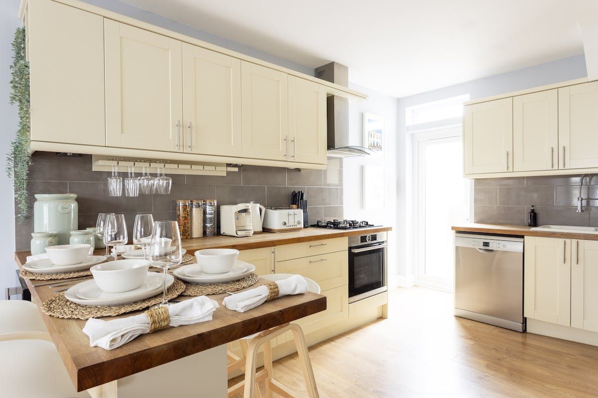 *There's no desk, but the breakfast bar doubles up as a laptop-friendly workspace
