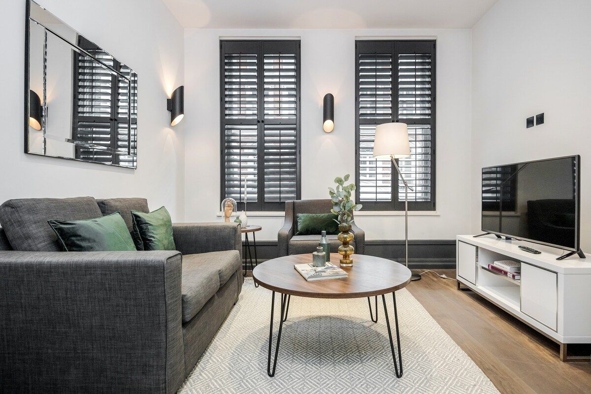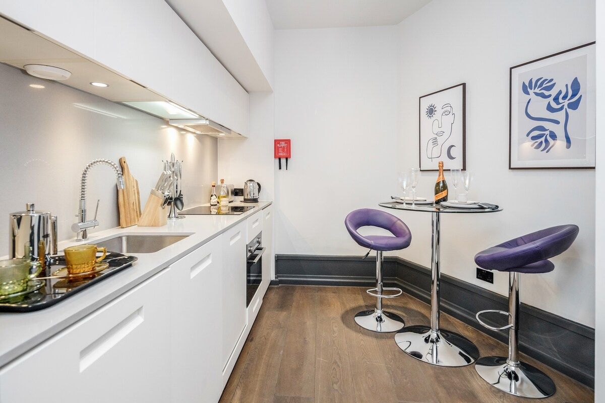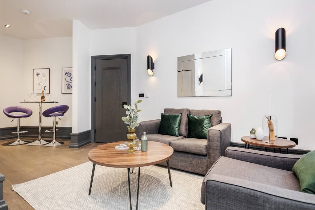 Whether you’re in town on business or exploring the city, this stylish home-from-home is just the ticket. Situated in the middle of bustling Covent Garden, you couldn’t be better placed for seeing everything the big smoke has to offer. The apartment’s elegant interior mirrors the sophisticated streets below, with neutral tones of regal green, grey and white that create a calm yet chic living space. We love the charming little bar area in the kitchen, an ideal spot to kick back and sip cocktails after a day of sightseeing. Plus, the bright kitchen is fitted with high spec appliances to make home-cooking a delight. And if you’re dining out, you are right in the heart of London’s culinary hub, surround by high-end restaurants, hip bars and world-class theatres. You’re within walking distance from the cultural sights at Trafalgar Square, the vibrant shops of Leicester Square, as well as Soho’s oh-so-trendy markets and iconic boutiques. With its spectacular location, plus a sleek and homely interior to welcome you back, we think this one-bedroom apartment is a real West End star.