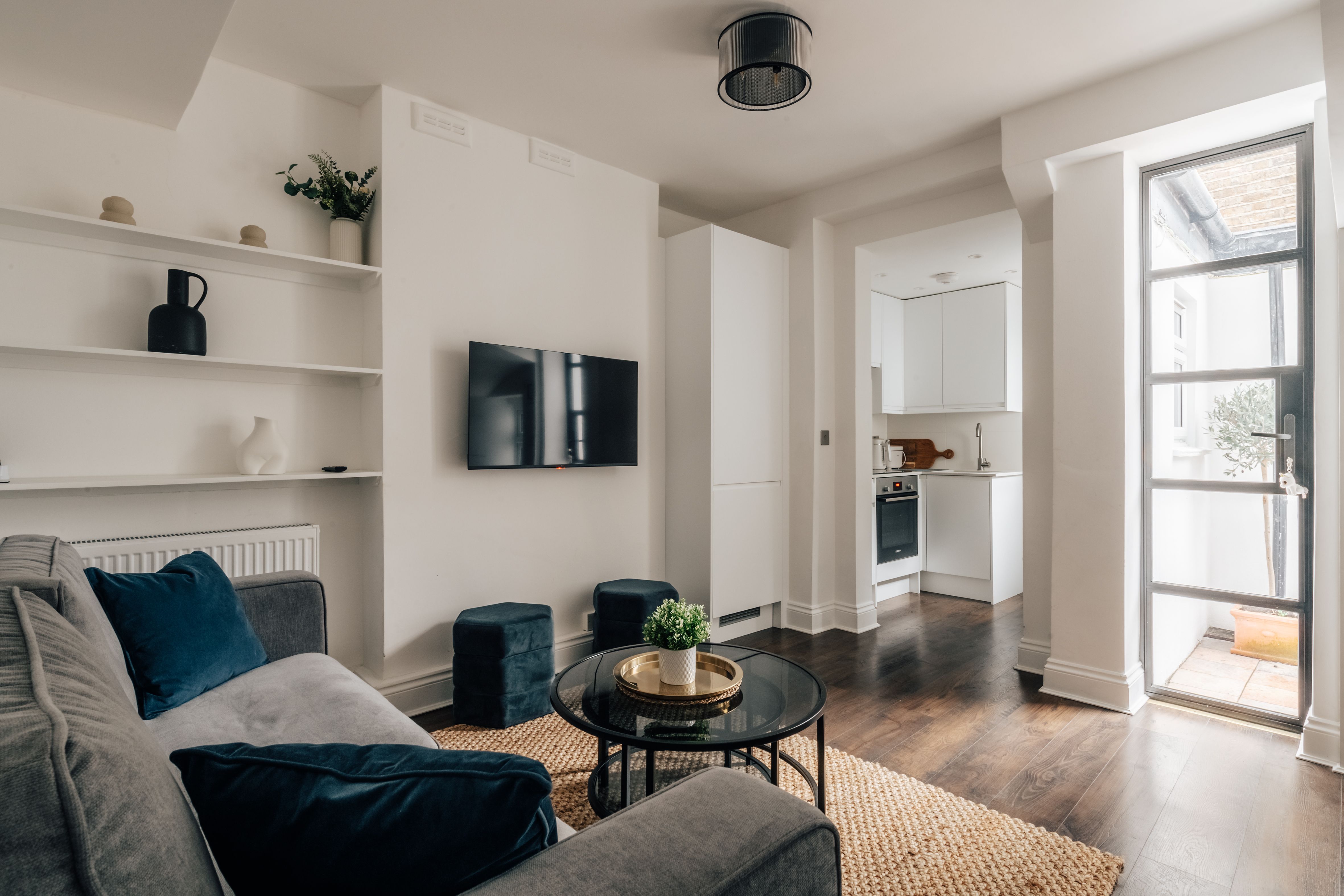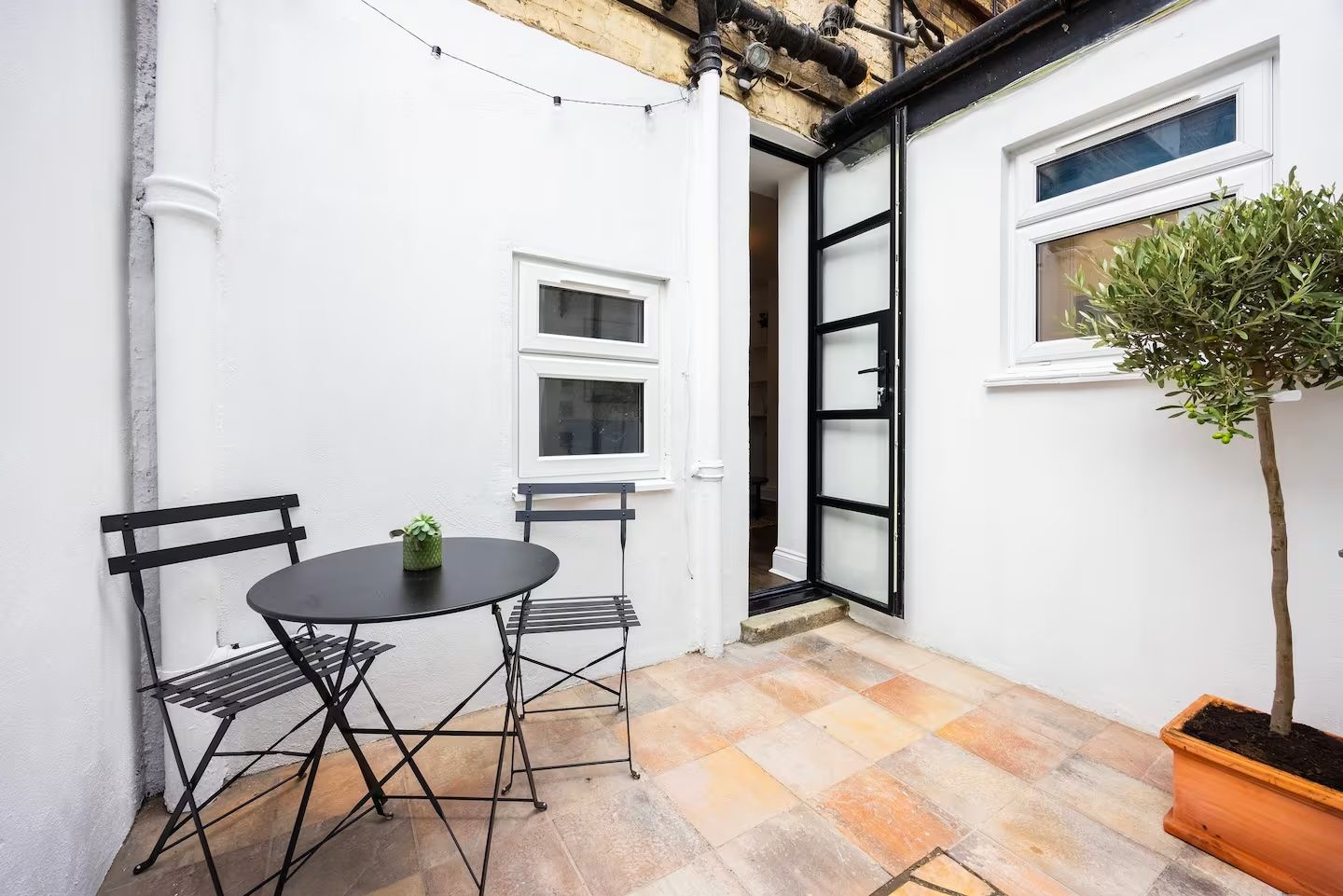 It's hard to beat the location of this apartment. Situated in Marylebone, it's just a stone's throw from Regent's Park and an easy walk to Baker Street Station. You can take it slow and meander through the neighbourhood – where local eateries, independent shops, and cosy pubs await – or kick things up a notch with an adventure into central London. Back at home, unwind in the stylish and comfortable living space. The paintings add an artistic flair, and the private patio is a delightful bonus. Just note that two guests will sleep on a sofa bed.