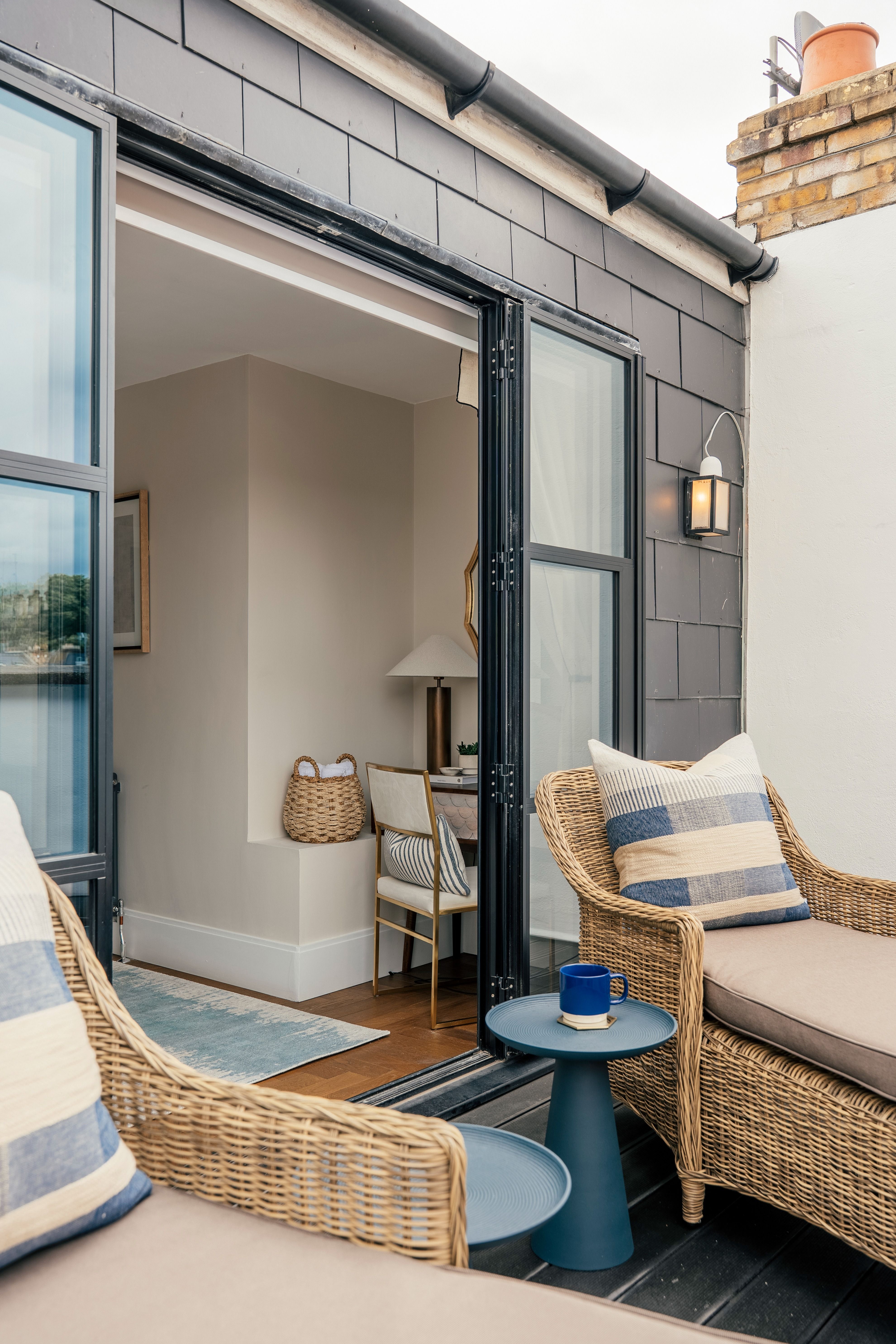This Fulham townhouse is full of warmth, character, and charm. It’s beautifully decorated throughout, with soft lighting, plush furnishings, and elegant touches that make it feel like a true home from home. The bright living space flows into a modern kitchen, set up for everything from quick breakfasts to group dinners. Step into the courtyard garden, complete with outdoor seating and a BBQ, perfect for sunny afternoons. Upstairs, the top-floor bedroom is a true retreat, with a luxury four-poster bed, en-suite, and its own private terrace. The third bedroom is compact but cosy, ideal for a good night’s sleep. With a prime Fulham location, this home offers comfort, style, and a peaceful base for your London stay.