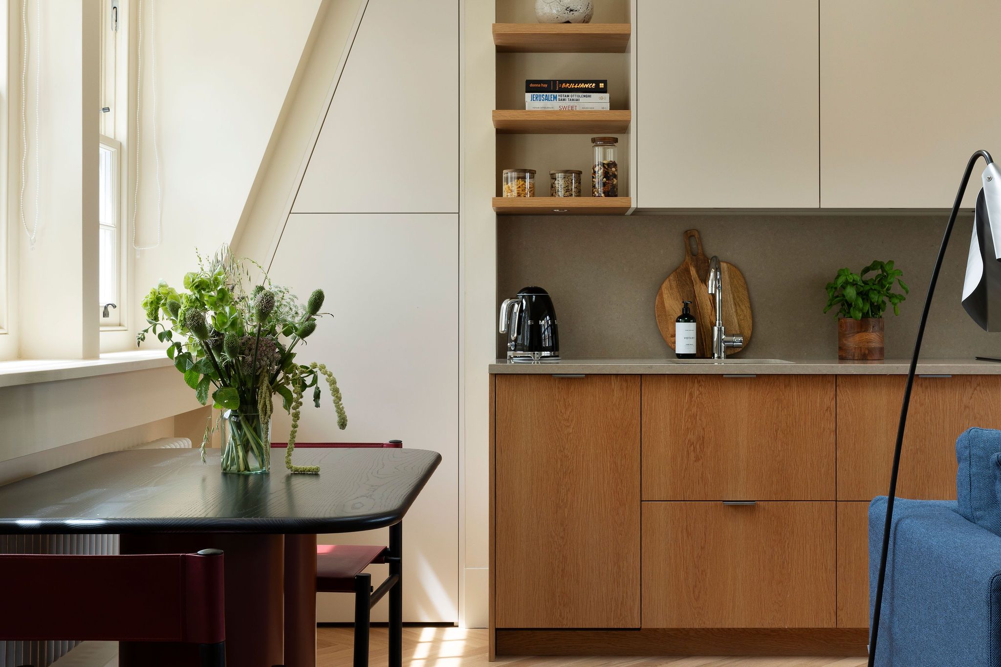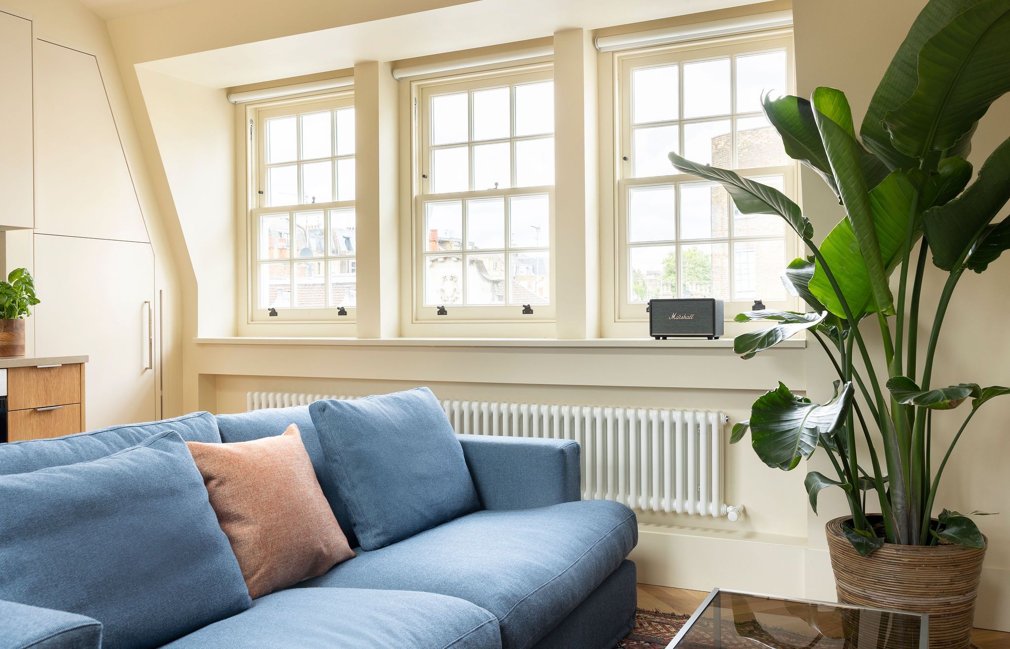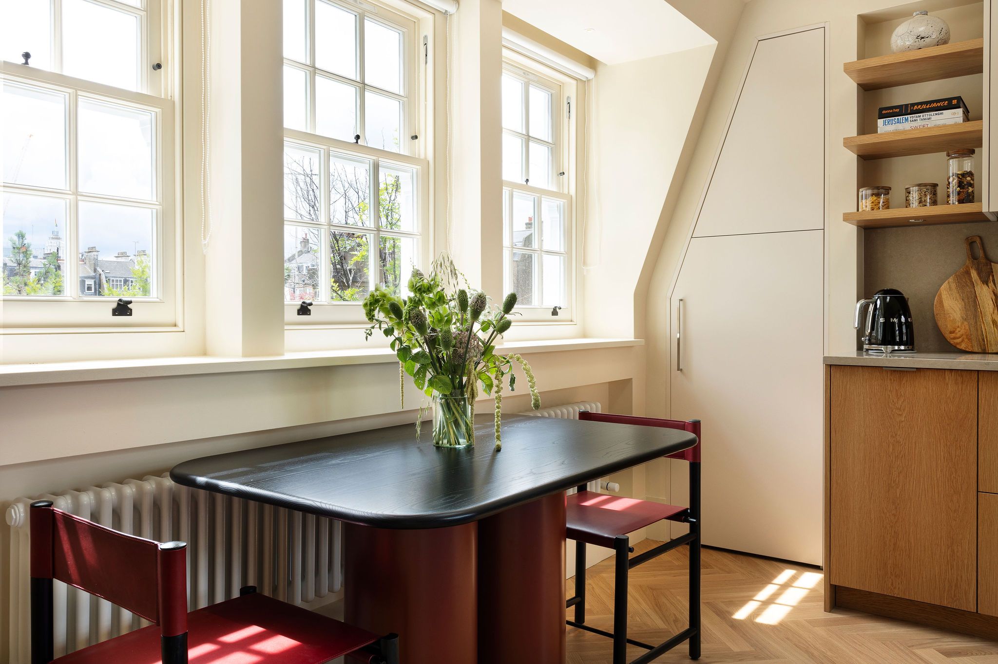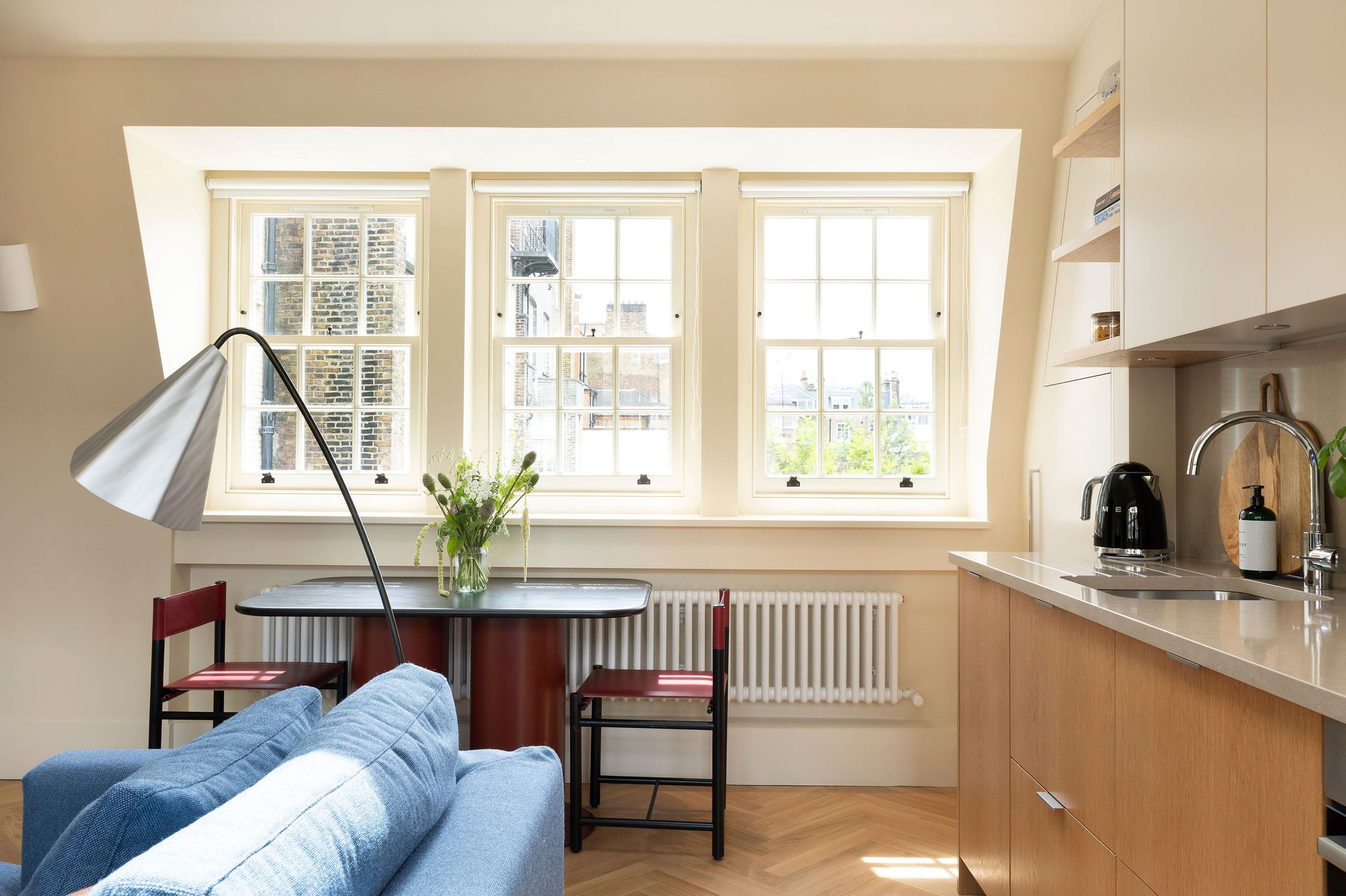 In the heart of London, Marylebone feels like a little village, with its range of cafes, local shops, and delicious eateries. It's close to Regent's Park, Baker Street, and all the designer offerings in nearby Mayfair – not to mention a Tube station for adventures far and wide. Though the apartment itself is on the compact side and on the second floor, we think it's rather cosy. The design is thoughtfully curated to reflect the Grade II-listed building. And despite its small footprint, it has all you need for a relaxed stay – a comfortable bed, a sleek kitchenette, and a light-filled living area.