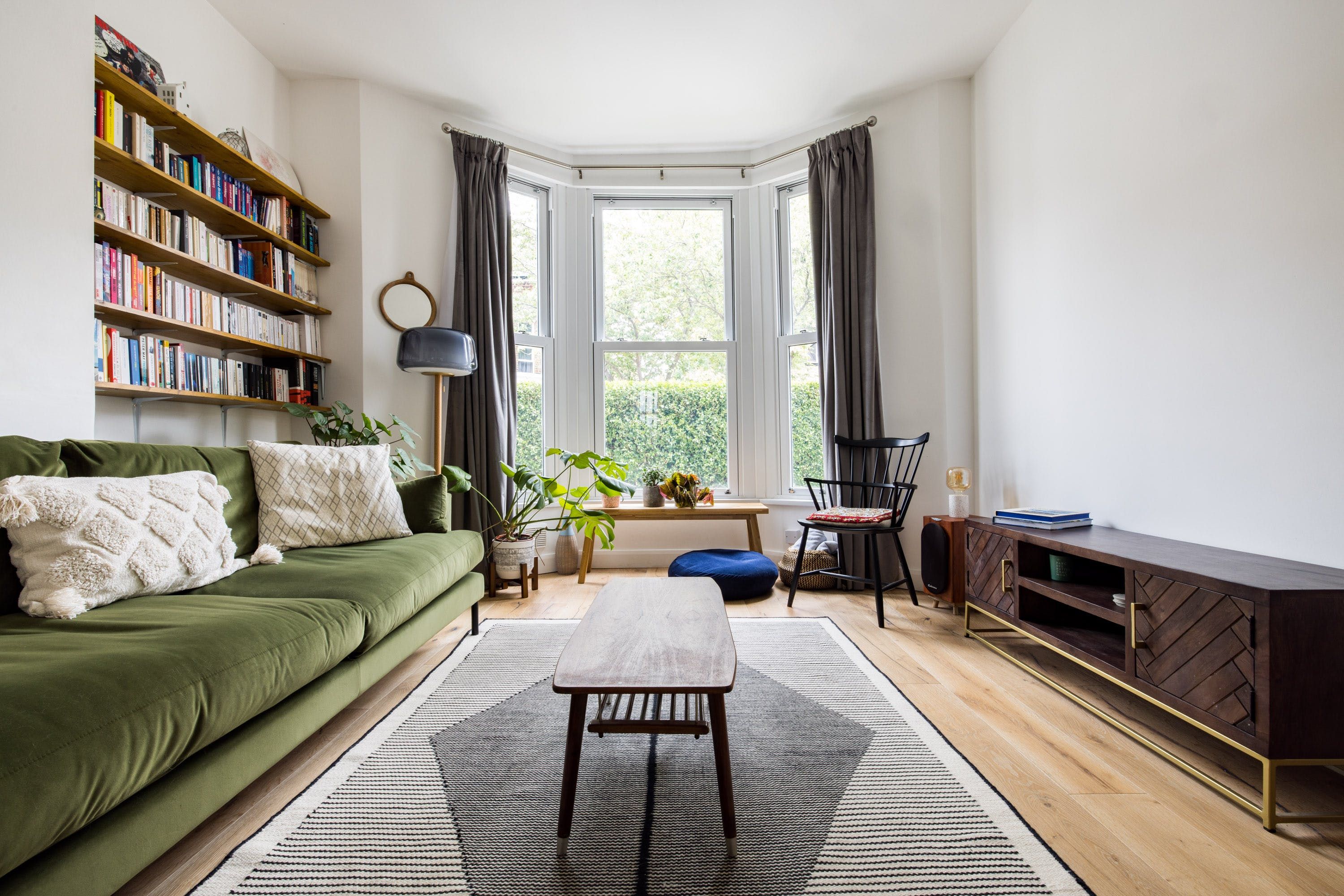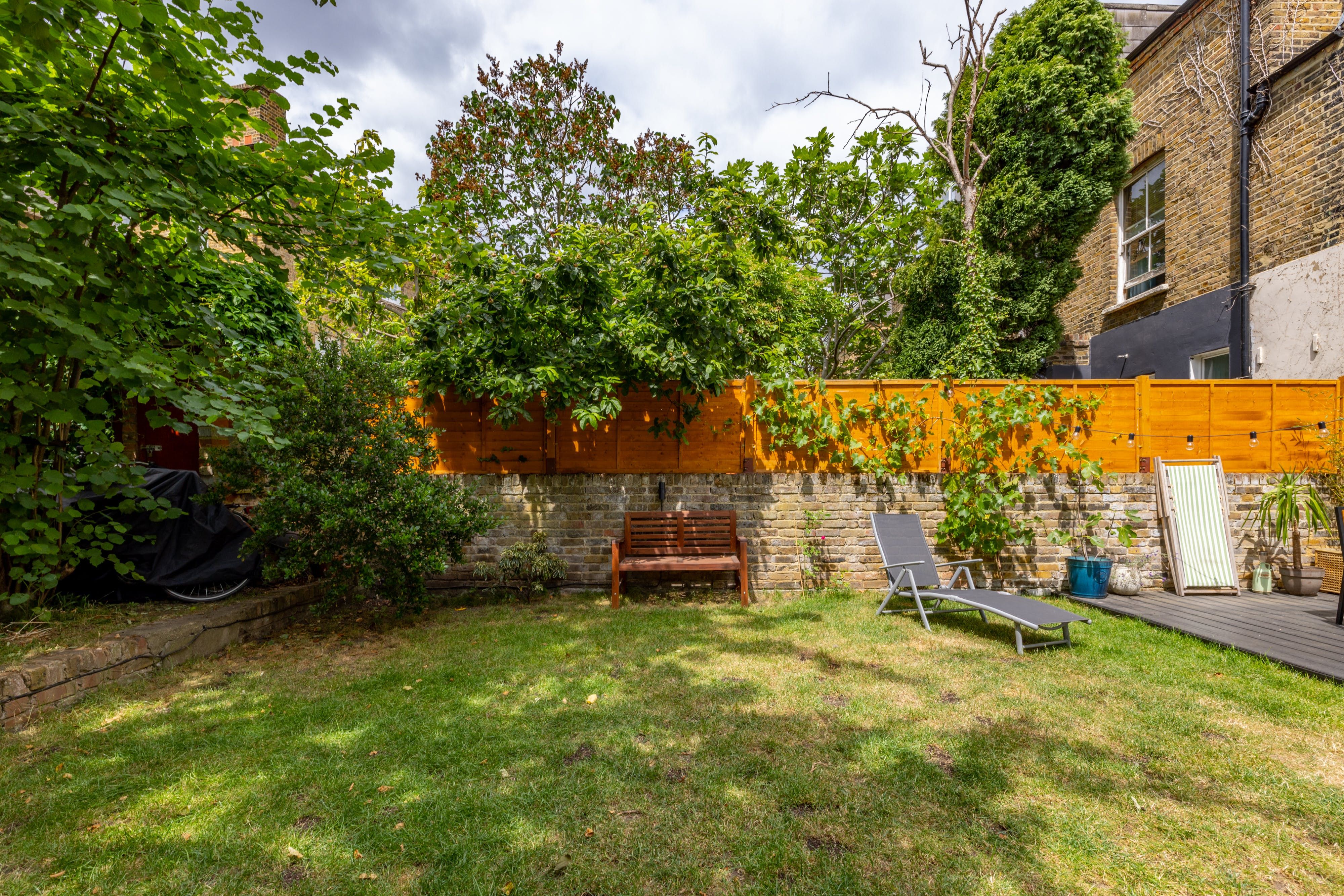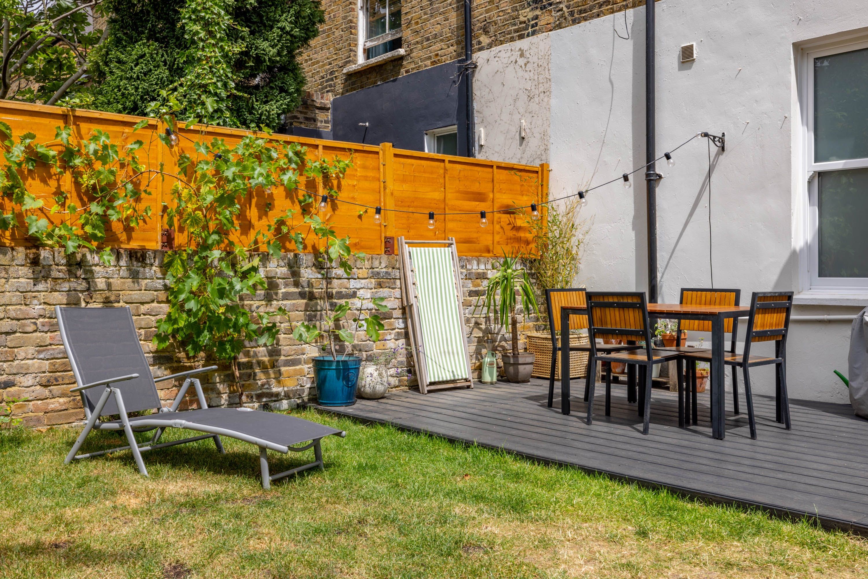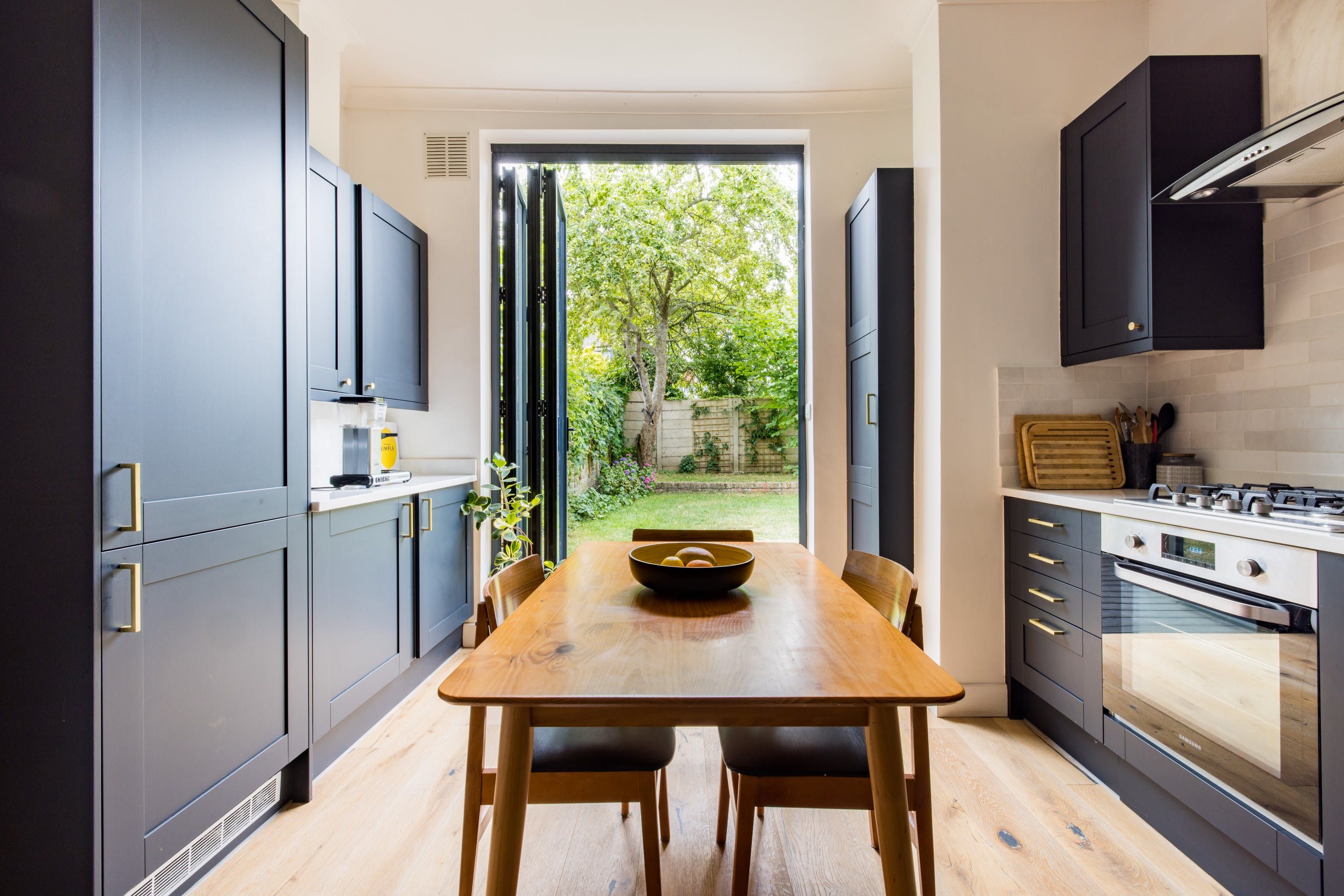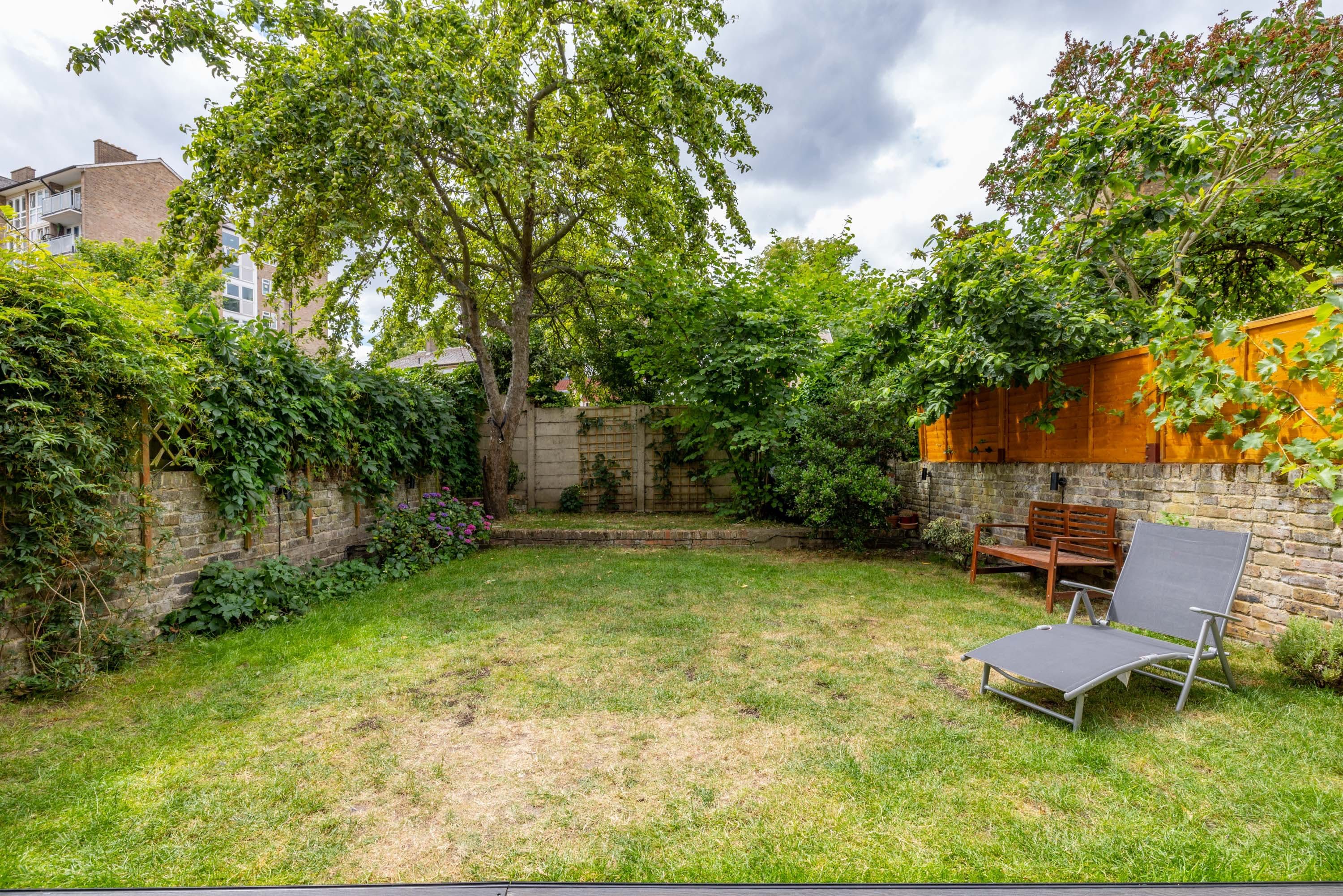 The home itself is within a traditional London townhouse with big bay windows letting in plenty of natural light. A book-filled living room with plush velvet sofas feels homely and luxurious at the same time and the solid wood floors throughout are a lovely touch. The kitchen, in raven-black, has all the bits and pieces you need for self-catering and it leads out to a huge garden. This really is the piece de resistance, with a big lawn for kids to run around on, walled for privacy and with loungers and outdoor dining. There’s a hammock and deckchairs too.