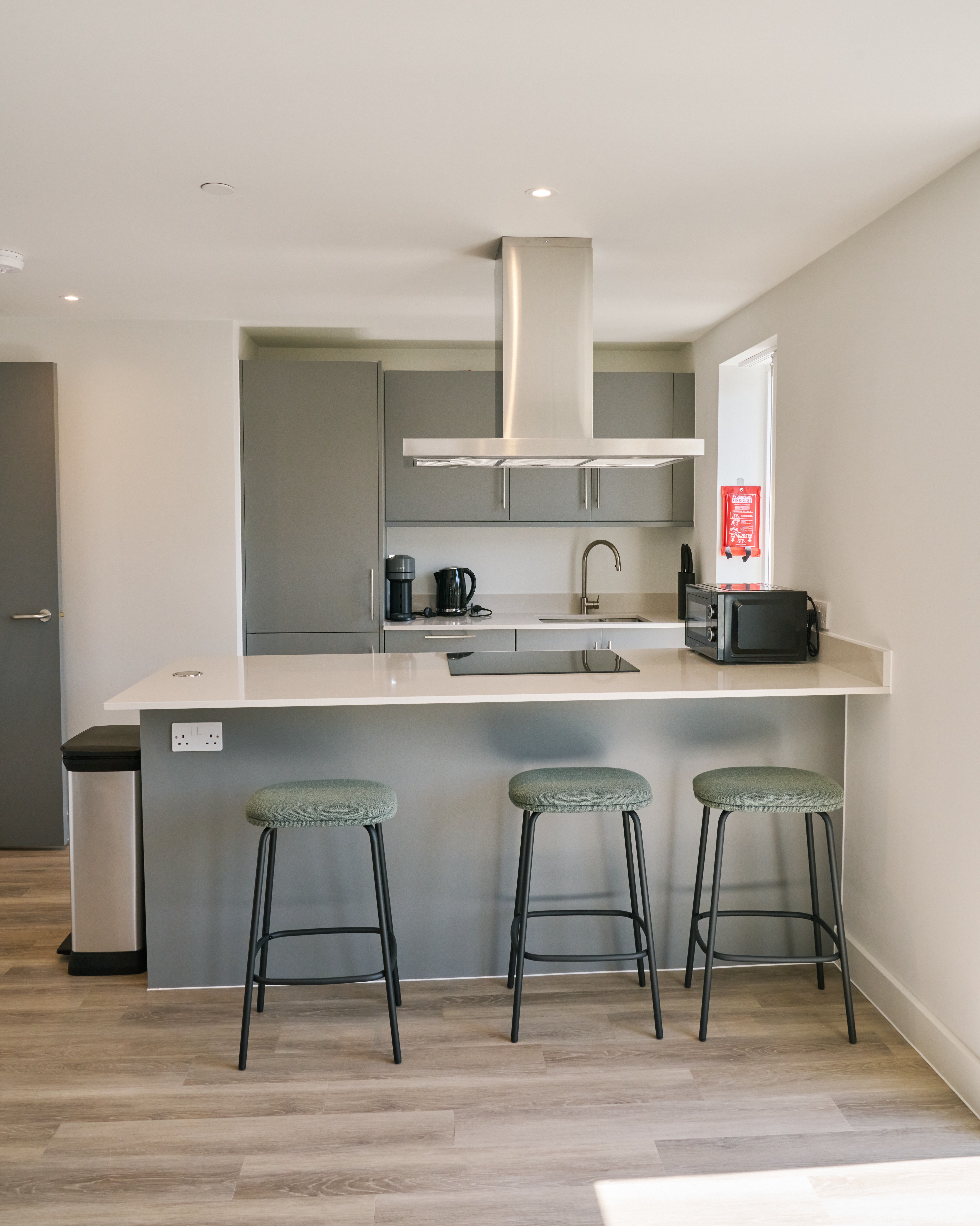 You can't deny that this apartment is perfectly situated. King's Cross Station is a five-minute walk away, offering quick connections across London. But, with shops, bars, and restaurants in Coal Drops Yard also nearby, there's plenty to see and do closer to home, too. When you're not taking advantage of this convenient location, make yourself comfortable in the open-plan living space. The kitchen island is ideal for quick breakfasts, while the dining table can double as a desk. Topping it all off is the small terrace with a glimpse of the Shard.