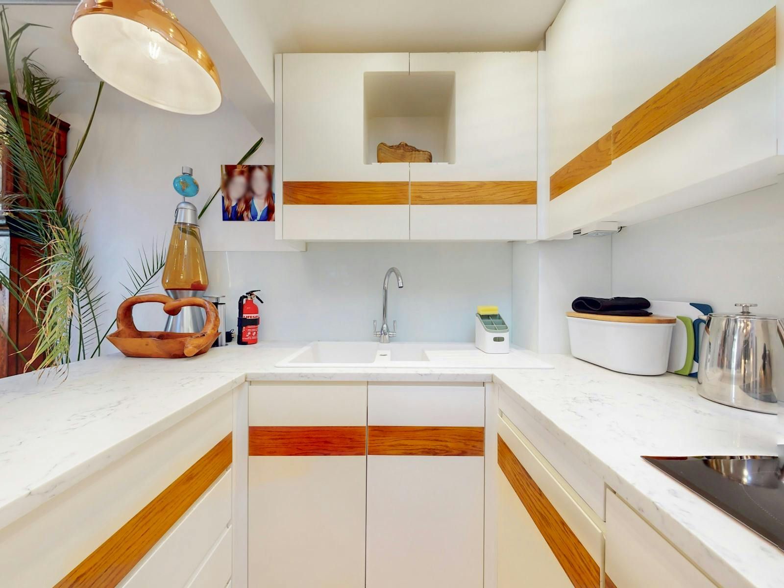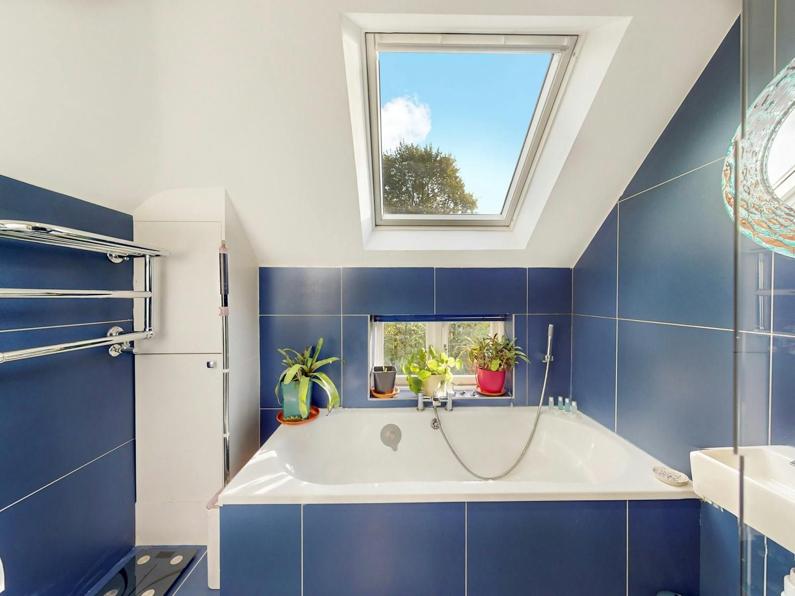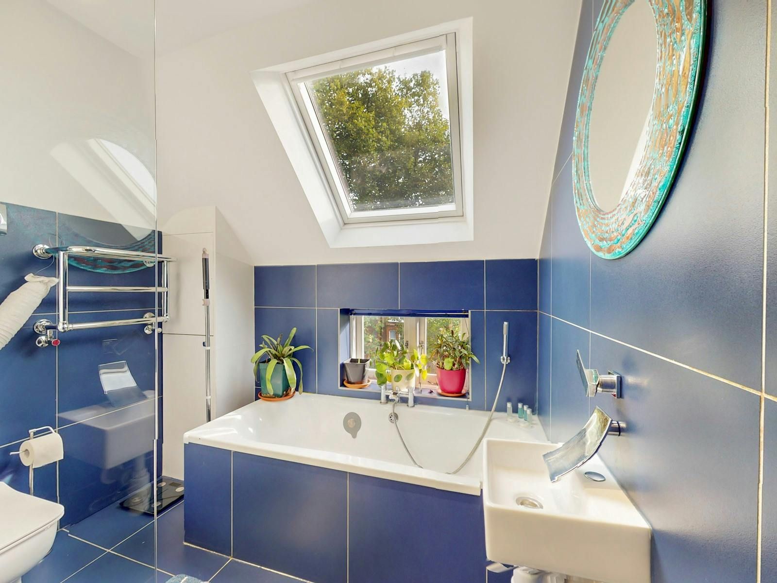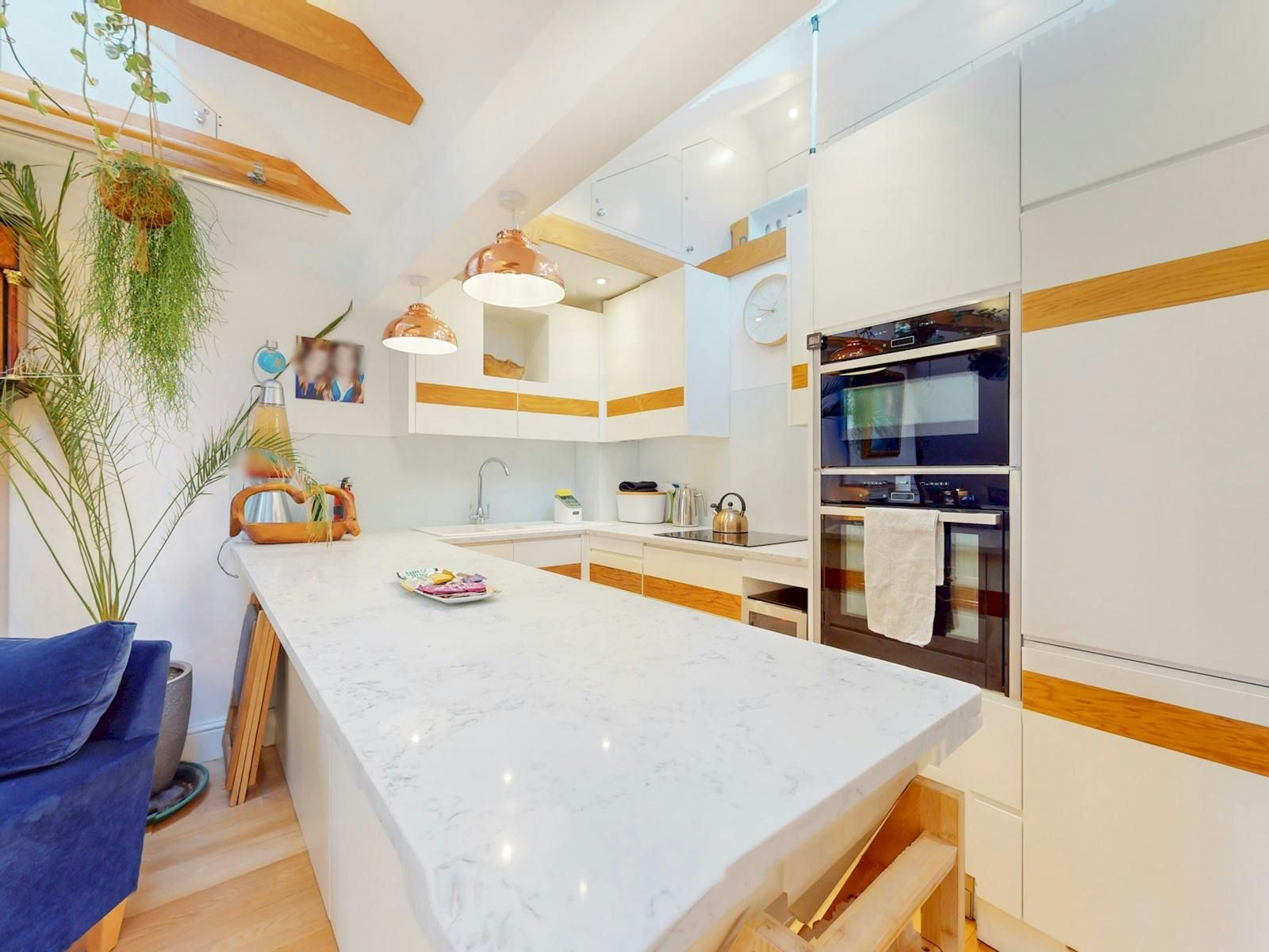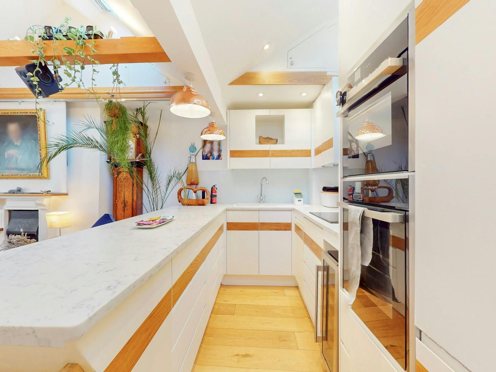 Bursting with plants and exposed beams, this top-floor flat is certainly unique. The style is maximalist and eclectic. It may not be the most modern home, but you can't deny it's cosy. Besides, you'll find everything you need to settle in – a well-appointed kitchen, an ample-sized bedroom, and a living area that invites you to get comfortable. Just note that it's on the third floor of a building without a lift. As for location, you can't do much better than Hampstead. The High Street, flanked by cafes, eateries, pubs, and shops, is a ten-minute stroll away. You're also a stone's throw from a Tube station when you're ready to venture further afield.