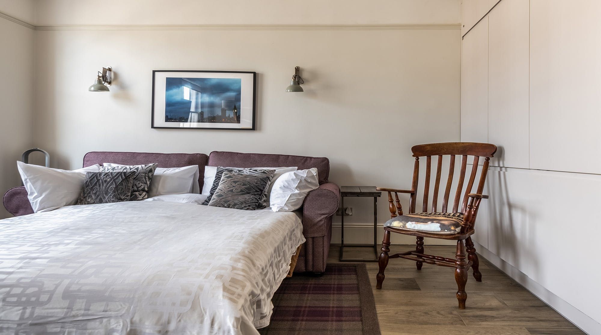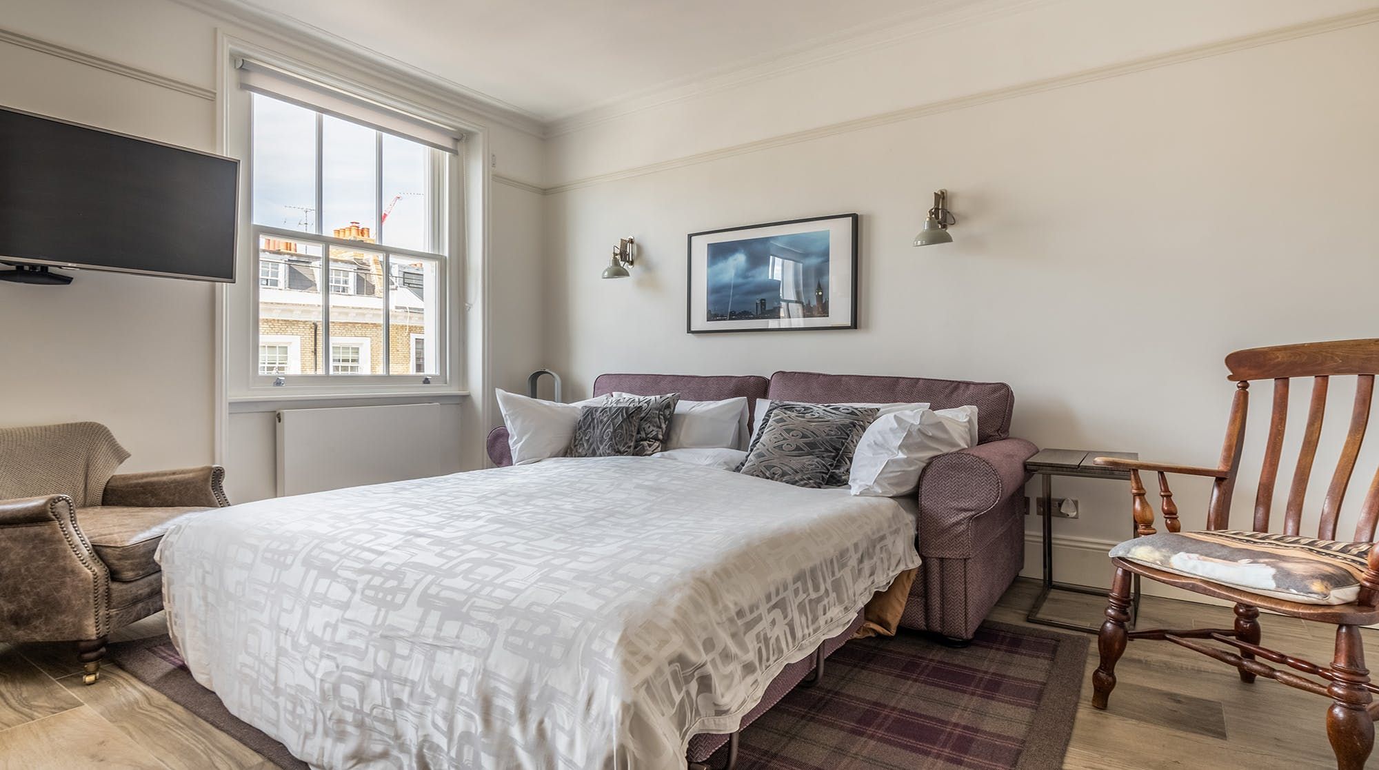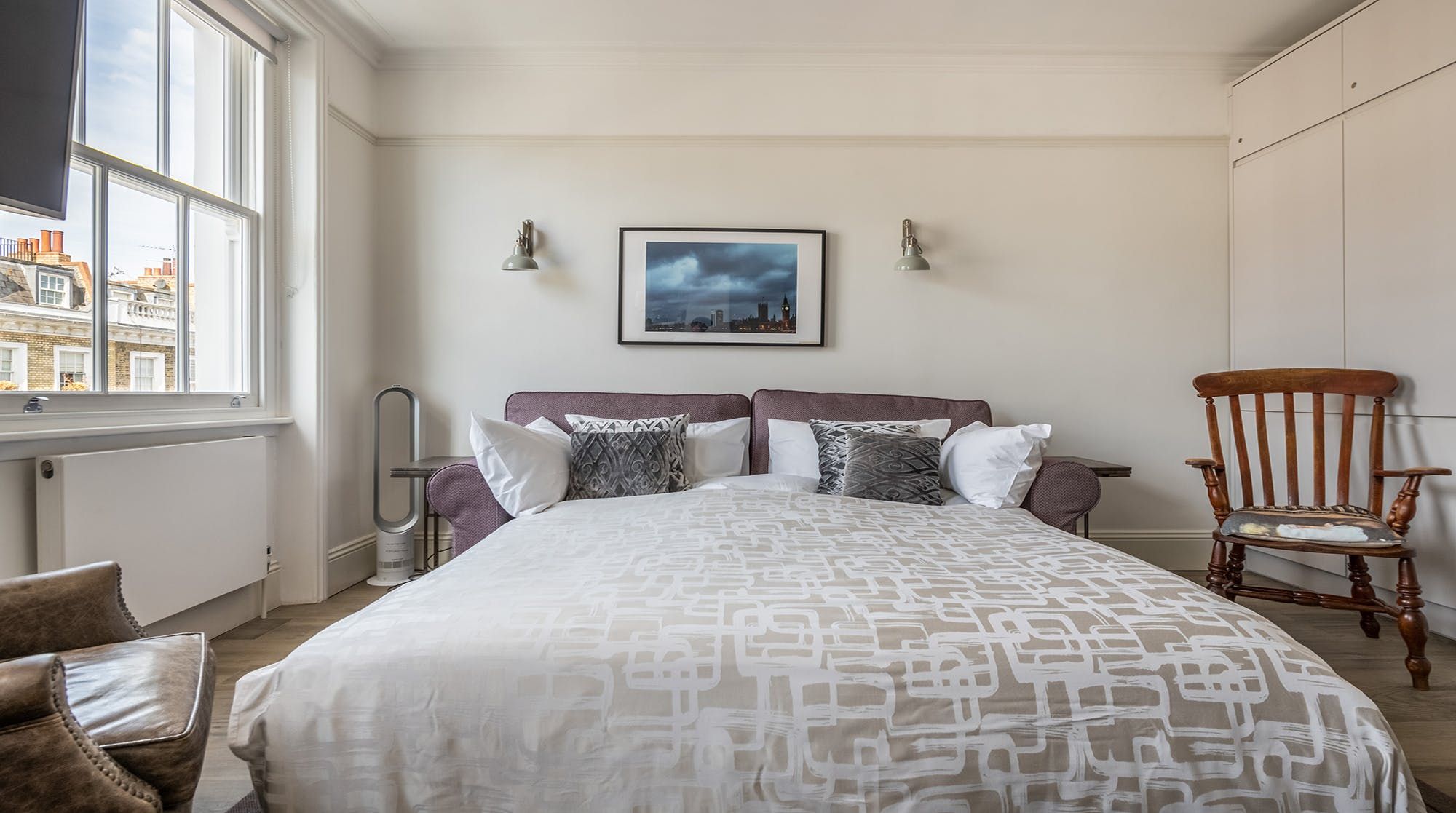Set in the heart of the beautiful ’Pimlico Grid’, this pristine bijou apartment is perfect for solo travellers, couples & small families wanting to get out and explore. Much is accessible on foot with Victoria less than 10 minutes away and Buckingham Palace only a 20-minute stroll from your doorstep. The stylish, recently re-designed interior impresses with a soothing colour palette of purples and mauves, a chic gloss kitchen, underfloor heating and a peaceful bedroom prepared with high-quality linens. An ideal choice for those who love the small details and hotel-like quality.