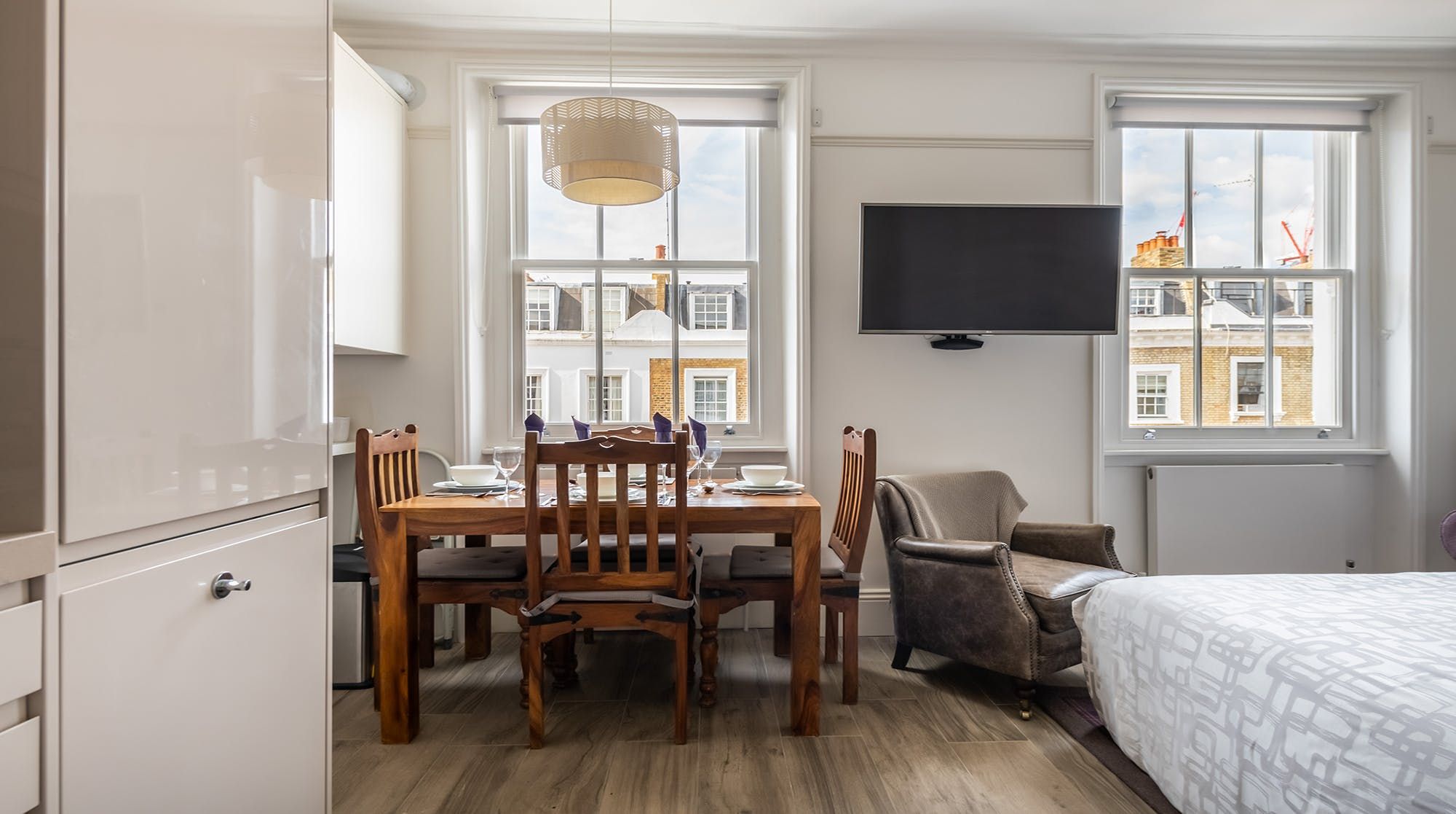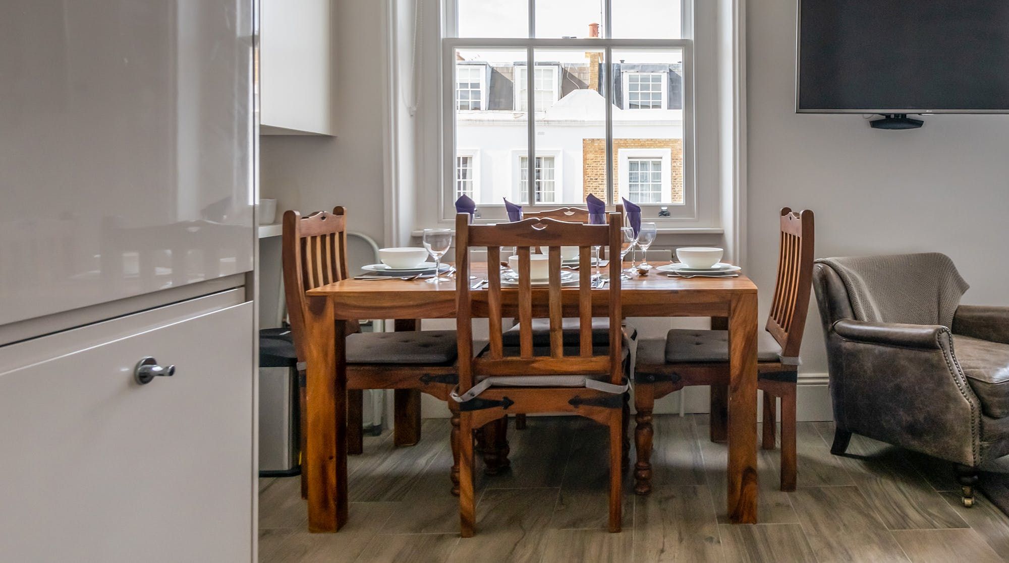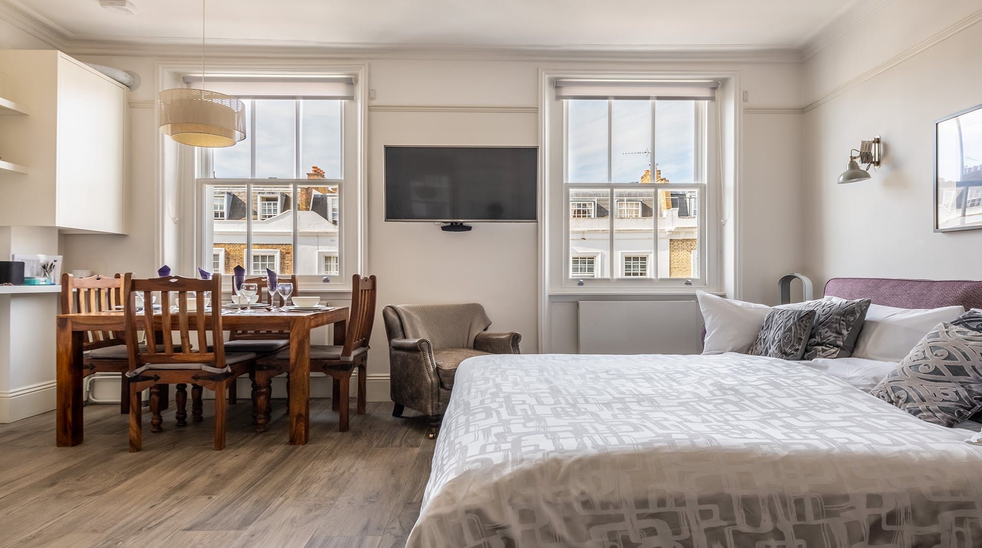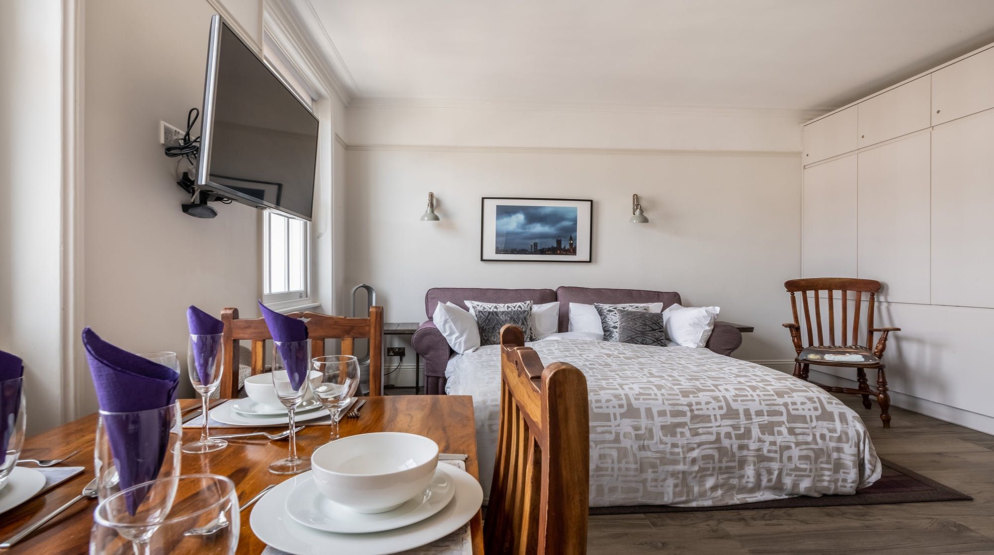 Set in the heart of the beautiful ’Pimlico Grid’, this pristine bijou apartment is perfect for solo travellers, couples & small families wanting to get out and explore. Much is accessible on foot with Victoria less than 10 minutes away and Buckingham Palace only a 20-minute stroll from your doorstep. The stylish, recently re-designed interior impresses with a soothing colour palette of purples and mauves, a chic gloss kitchen, underfloor heating and a peaceful bedroom prepared with high-quality linens. An ideal choice for those who love the small details and hotel-like quality.