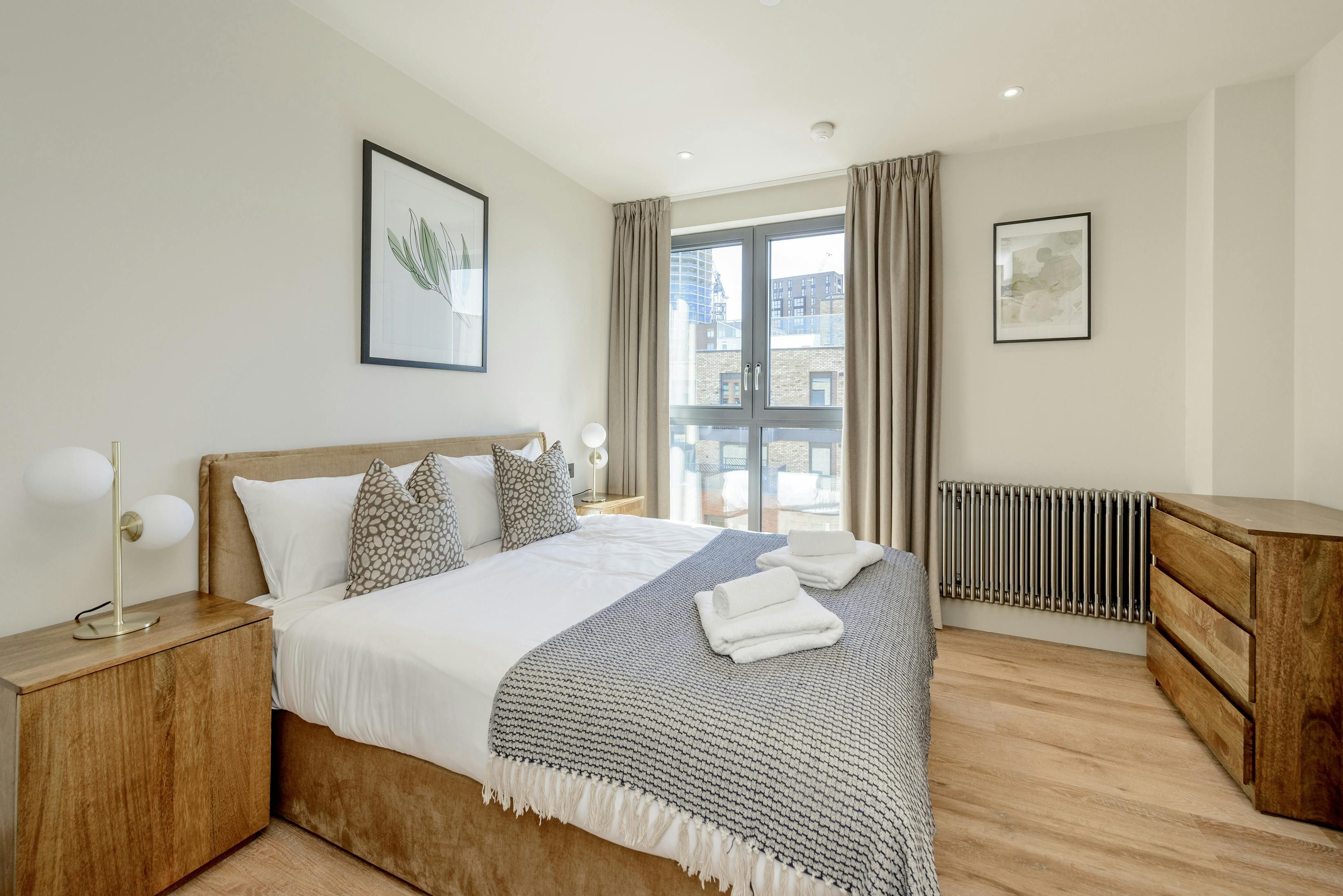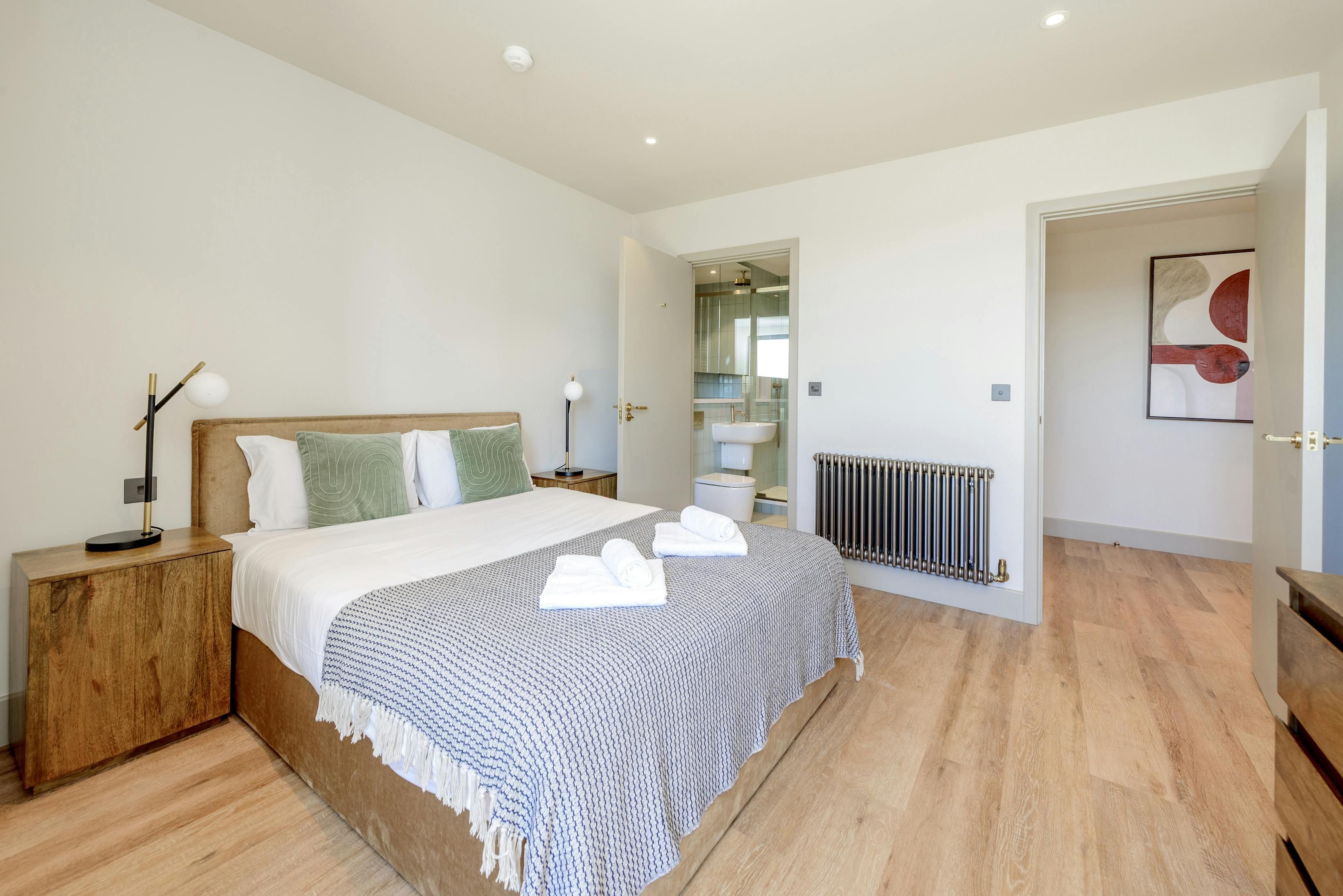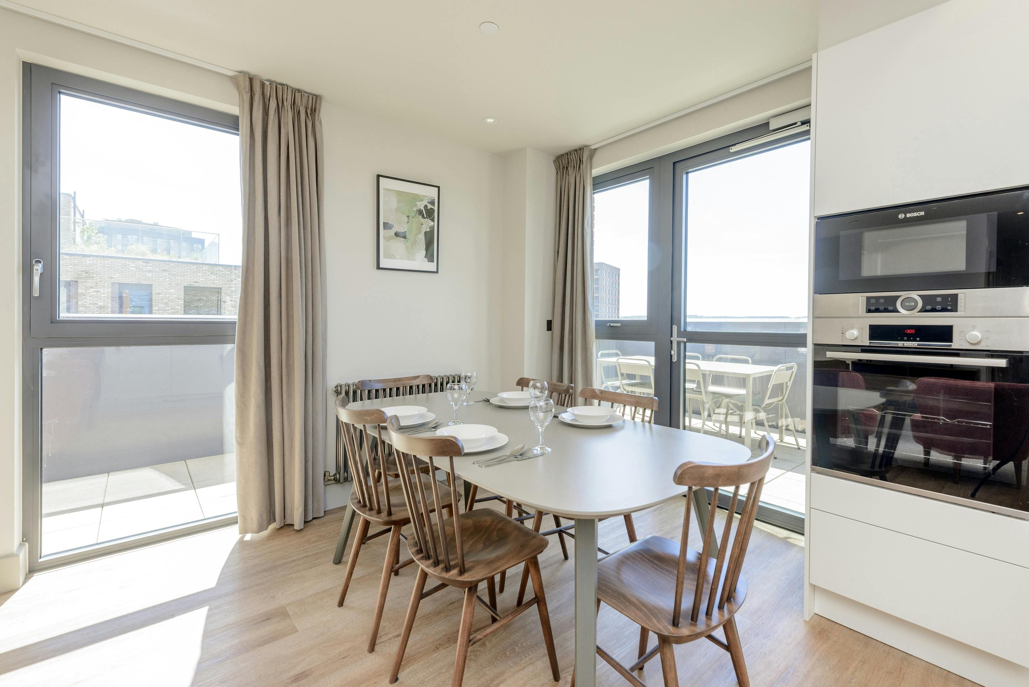Moments from Tottenham Hale station, this apartment is a great base for an easy-going city break. It’s just a fifteen-minute train ride into central London and you can stroll to local restaurants, shops and parks. Plus, you’ll have access to a shared roof terrace, a yoga studio and a gym throughout your stay. Whether you’re on a productive business trip or a fun-filled adventure, this home makes it easy to switch off and unwind. The layout is simple, minimal and there’s a private terrace for warm weather days.