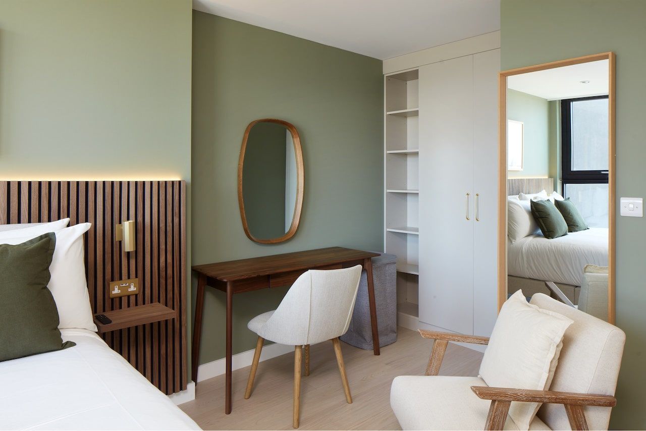Offering unique views of the City from its eleventh floor vantage point, this good-sized apartment overlooks Waterloo station and benefits from a standout location. Minutes from the London Eye and across the bridge from Big Ben, you'll have an ideal base for exploring the English capital, with the added assurance that this home's design and amenities are focused on sustainability. From small touches like recycled glassware and organic toiletries to a comfortable bed made from natural materials, this practical apartment has a conscious and commendable sense of style.