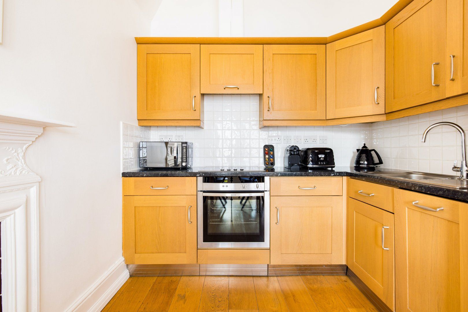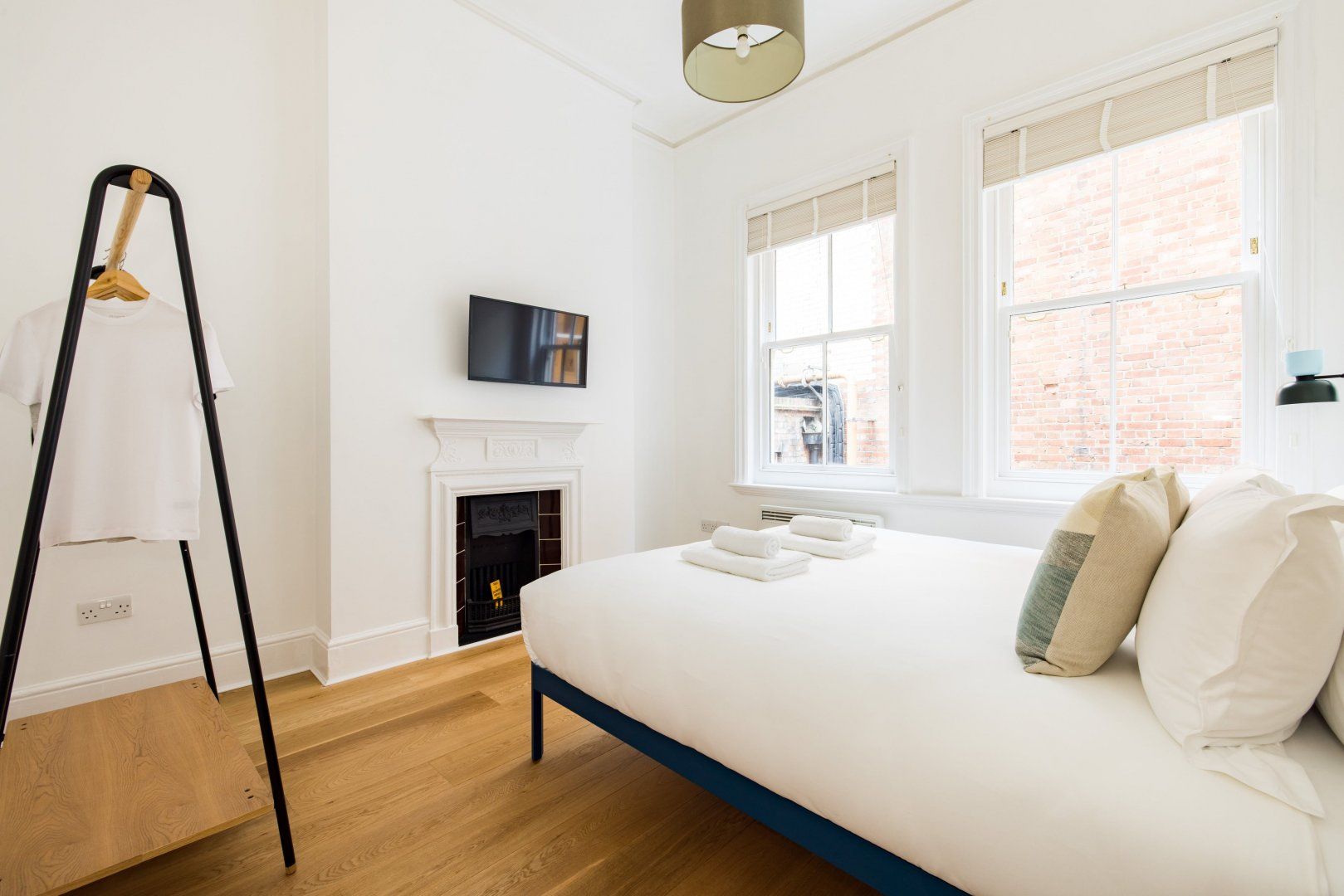 Set right in the beating heart of London's West End, just around the corner from Leicester Square Underground, the location of this smart apartment is unbeatable. While the contemporary interiors of this serviced apartment may feel a little stark for some, the dual-aspect sash windows flooding the home with natural light and decorative period fireplaces are a nice touch. It's worth noting there's no lift in this apartment building, so be prepared to notch up your step count with some stairs.