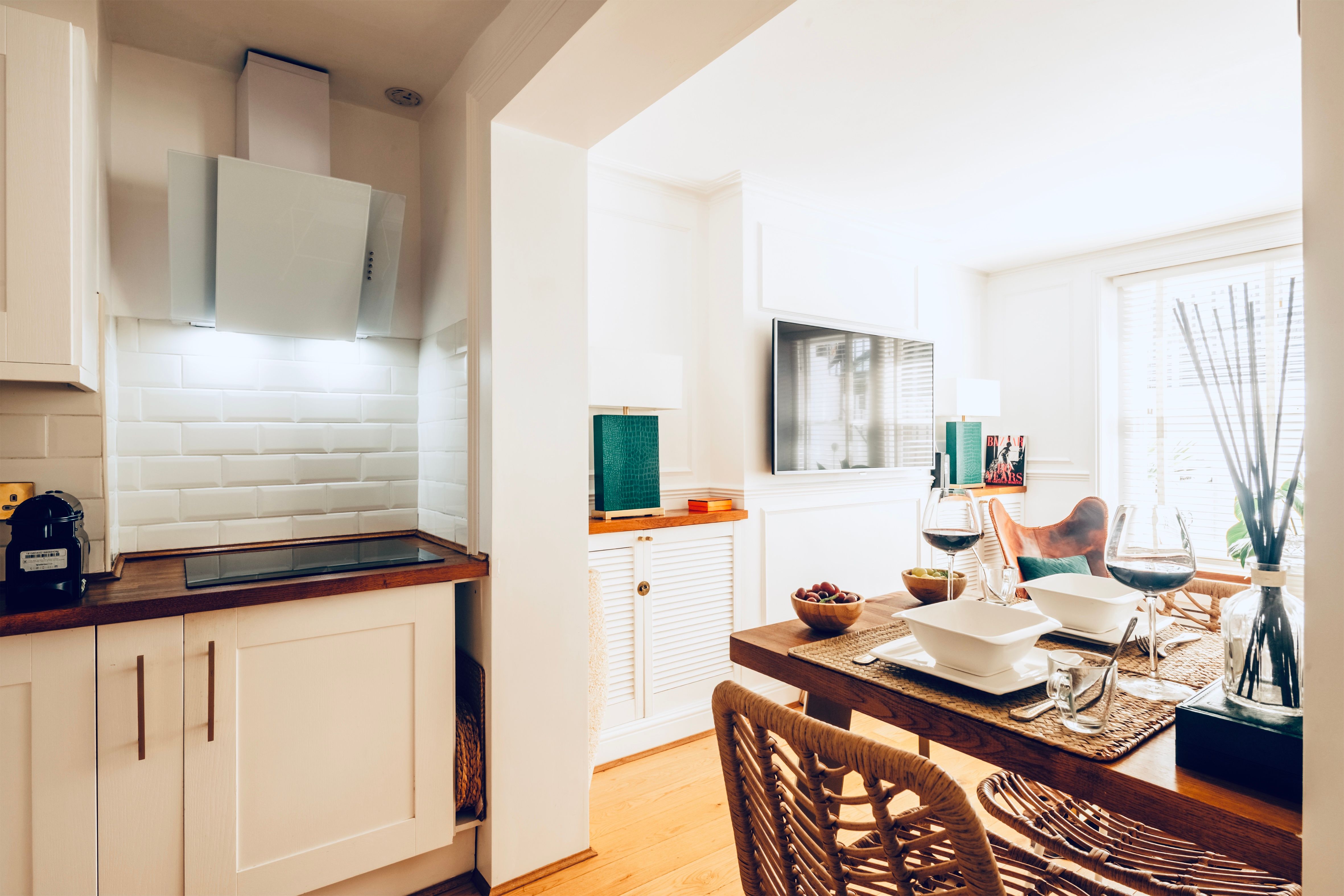 Seconds from the Thames and minutes from the King's Road, this ground-floor apartment boasts a sophisticated location and a private garden to boot. Despite being down a flight of steps, there's plenty of light throughout the living room and dining area, though the small counter in place of a dining table is unable to seat four. Further inside you'll find two double bedrooms, one of which is cramped and lacks direct access to the garden. Indeed, it's the garden that sets this home apart, with its Mediterranean ambience and sense of sanctuary. You'll be walking distance from Chelsea's many popular shops and cafes, and ten minutes from Imperial Wharf station.