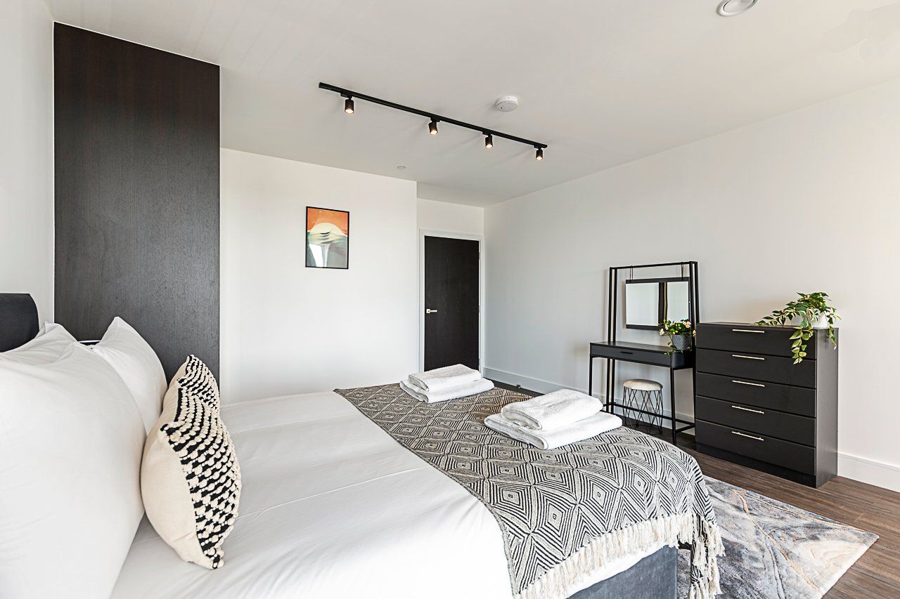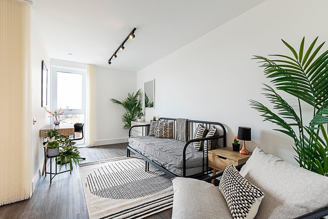 This contemporary apartment offers a comfortable place to stay in West London, whether you’re visiting for work or play. There’s an open-plan living area with a well-equipped kitchen for meals at home, plus a double day bed where two guests can sleep. The living room and the bedroom each have a small balcony, and although the view isn’t the most inspiring, it’s a bonus to have a little outside space. While the surrounding area is mainly residential, you’ll be a short walk from Willesden Junction station. It’s on the Bakerloo line, connecting you to London landmarks like Oxford Street and Piccadilly Circus with ease.