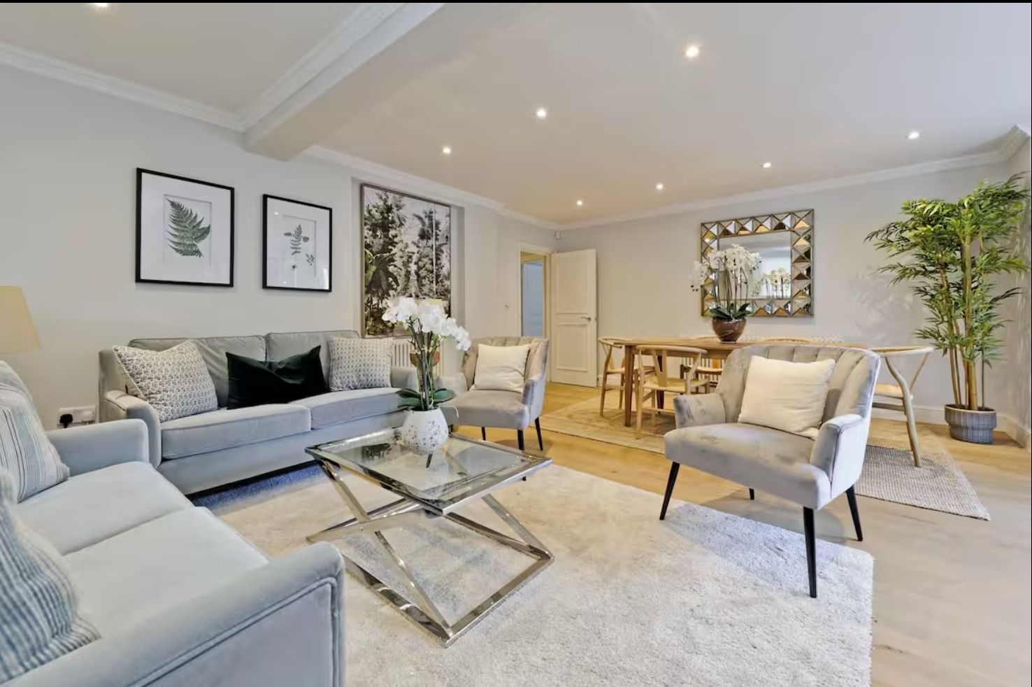Step into this lovely home in the sought-after nexus between Kensington, Holland Park, and Notting Hill. Feel right at home in the living area, where the decor and furniture evoke a relaxing atmosphere. This leads straight out to the private garden and terrace – a rare pocket of sunny outdoor living in the city – where you can dine alfresco or enjoy their morning coffee in the sun. Step outside and you’re moments from leafy parks, excellent restaurants, and local pubs, yet the apartment itself feels worlds away – a peaceful base in the heart of West London.