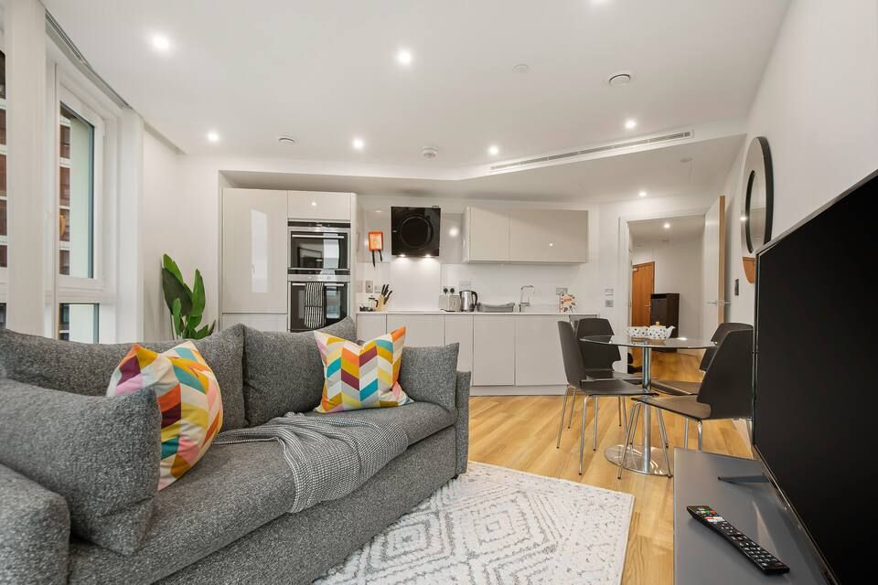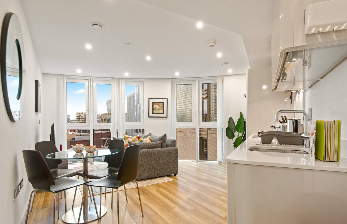 Located in the beating heart of cosmopolitan London, Whitechapel is where the gleaming office tower blocks of The City give way to the most exciting corner of Tower Hamlets. Near bustling Aldgate East station, this block of luxury flats rises high above the fine Georgian terraces that line the streets below. The apartment is decorated in neutral tones, with mid-century inspired furniture to add a touch of panache. The floor-to-ceiling windows in the living space and bedroom offer uninterrupted views of the London skyline. At the same time, the mirrored wardrobe does an excellent job of storing your belongings and ensuring plenty of natural light even when the London weather isn't playing ball. The clean and compact kitchen has everything you could need, but when you can go on a culinary voyage to all corners of the globe in restaurants just minutes from your front door, you might find the urge to cook your own dinner slowly ebbing away. Instead, we'd suggest trying out Tayyabs and Lahore Kebab House for mouth-watering flavours served up in a no-nonsense setting – the food definitely takes centre stage here.