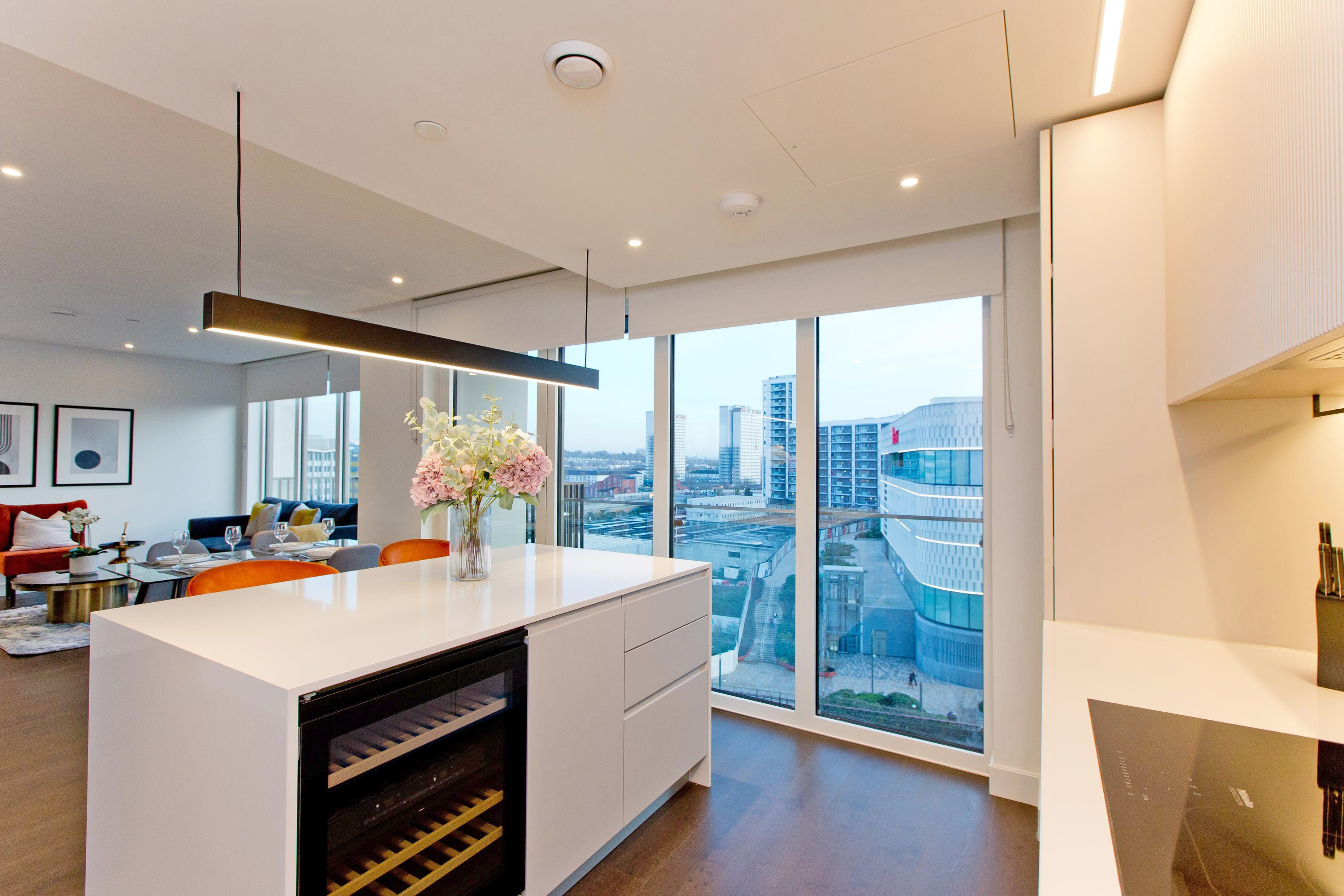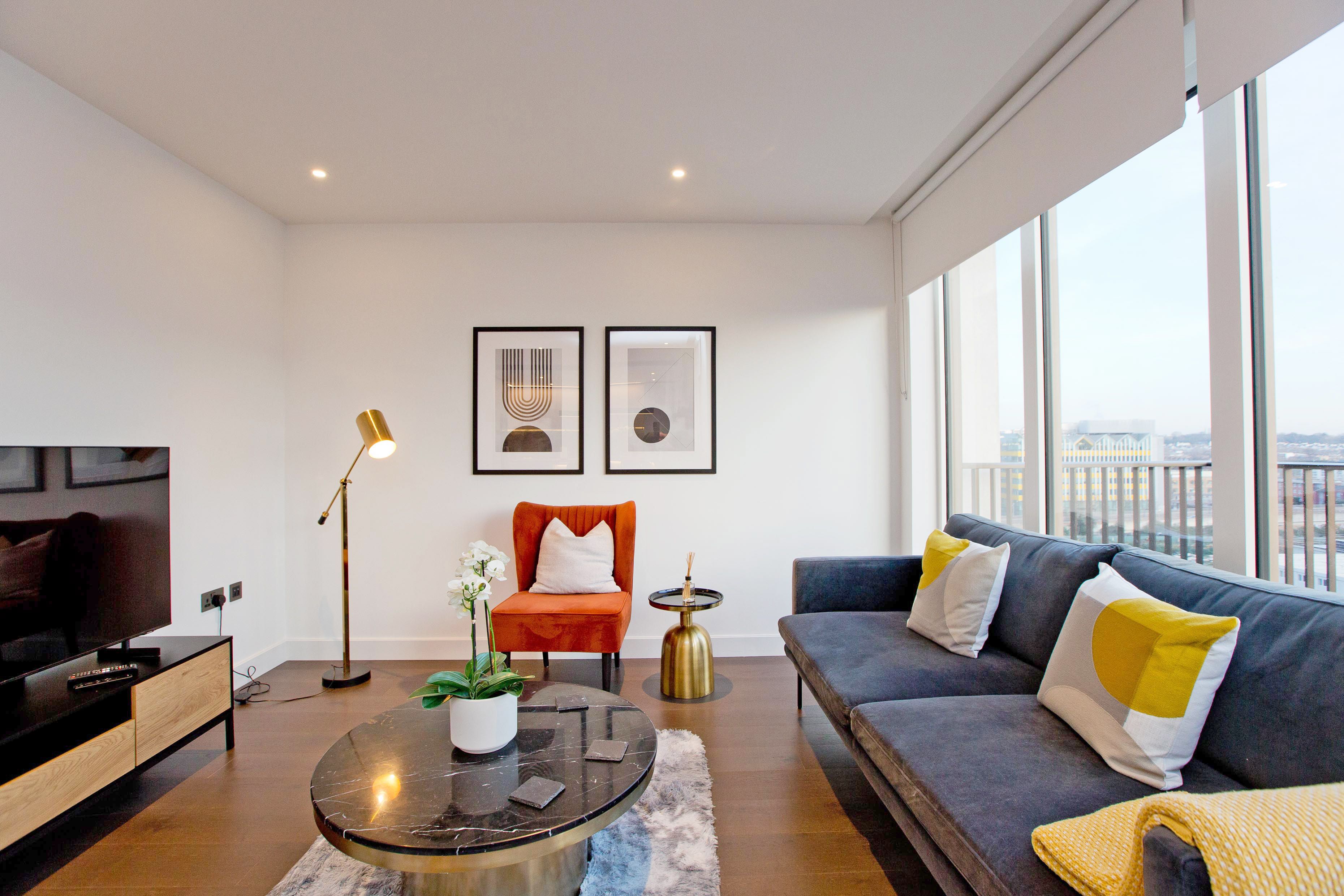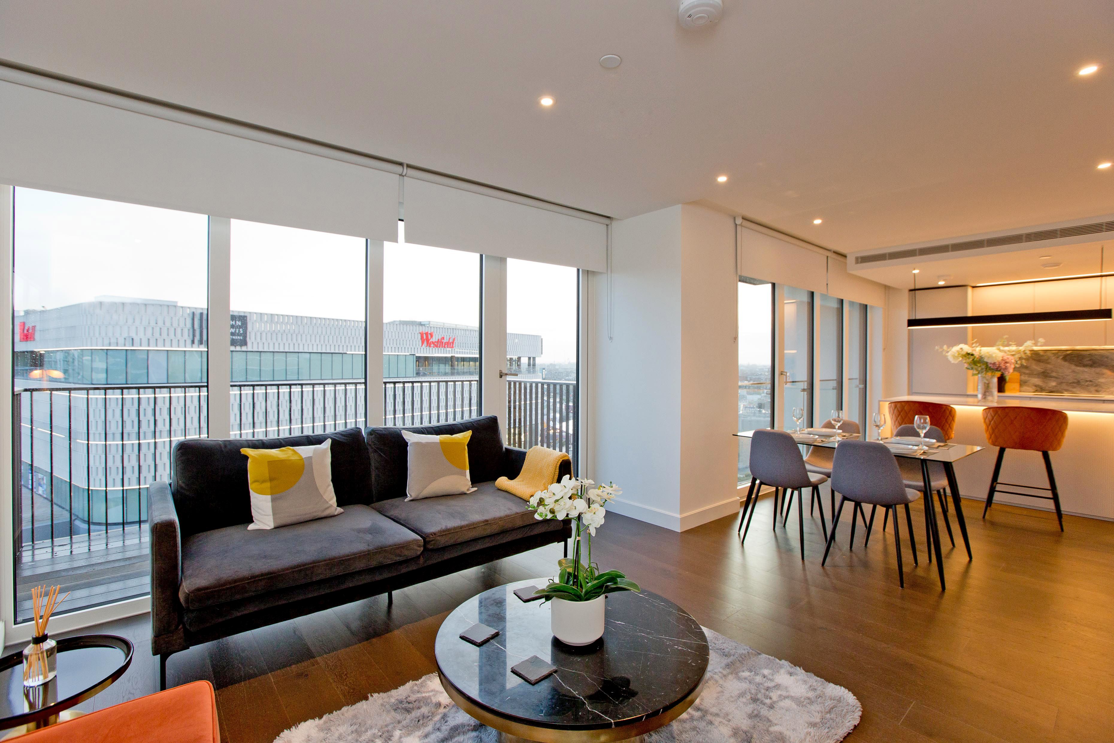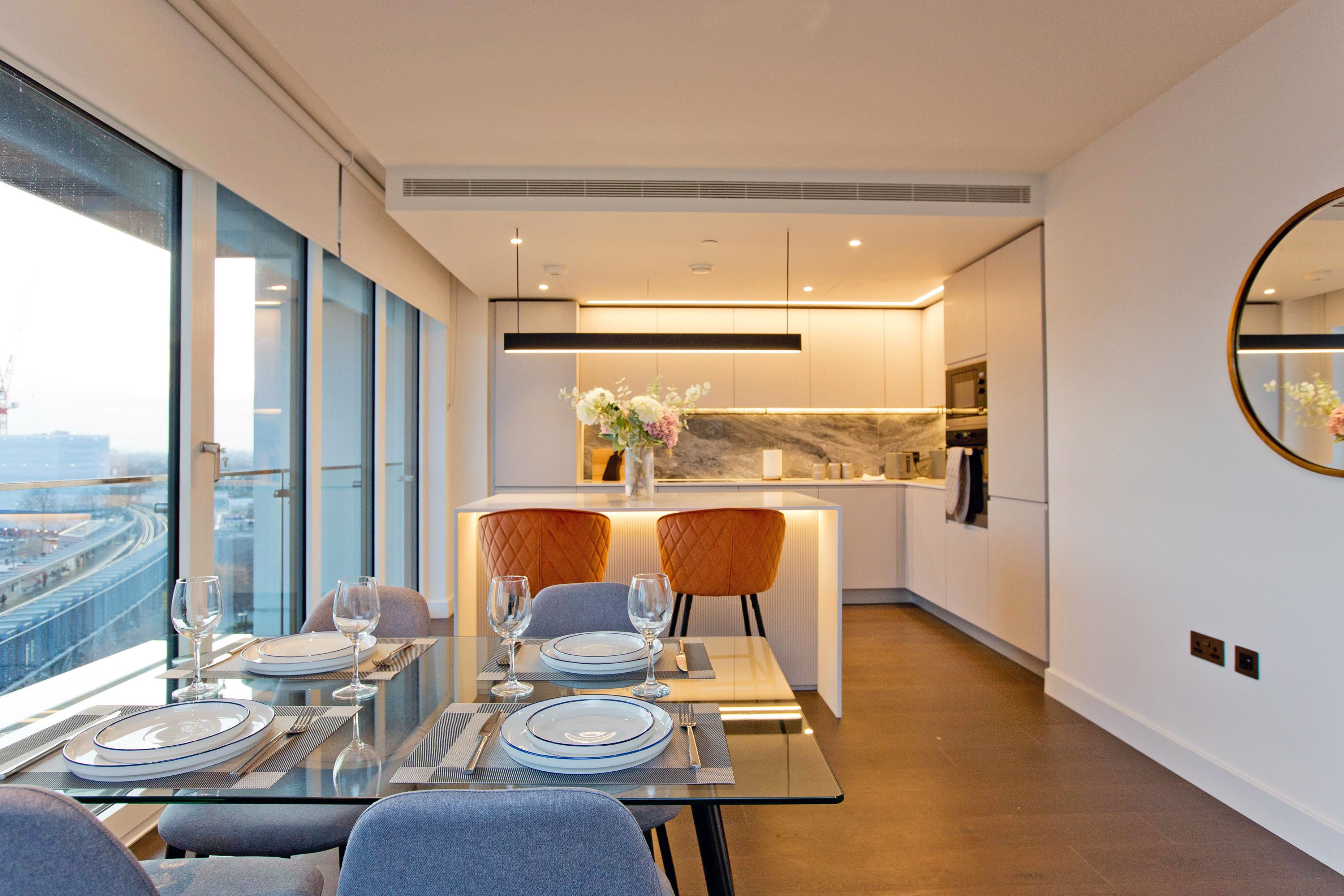 This White City apartment is just a short walk from Westfield London, giving a whole new meaning to the phrase 'shop 'til you drop'. Restaurants, a cinema, and a Tube station are at your fingertips, so you'll be well served whether you want to stay close to home or venture into central London. We love this pad's sleek design. Floor-to-ceiling windows give way to a balcony offering views of the surrounding area. There isn't a desk here, but the dining table doubles as one if remote working is on the cards. And those staying for thirty days or more will have access to the communal gym and pool – now that’s the cherry on top.