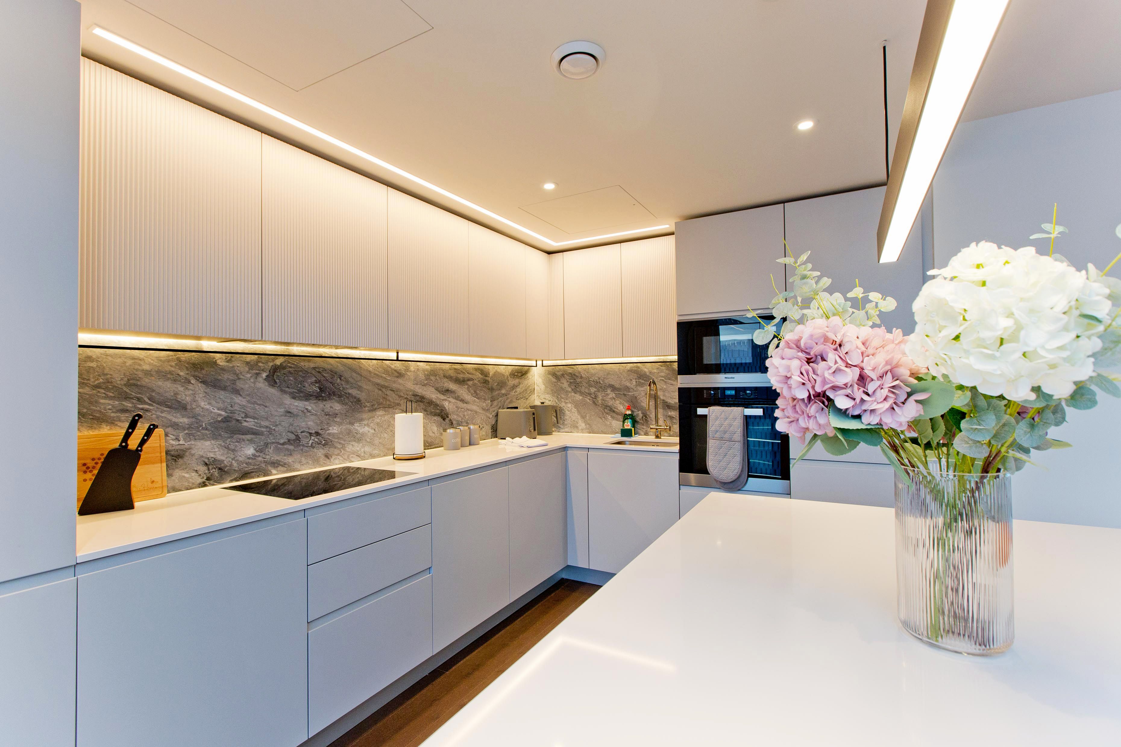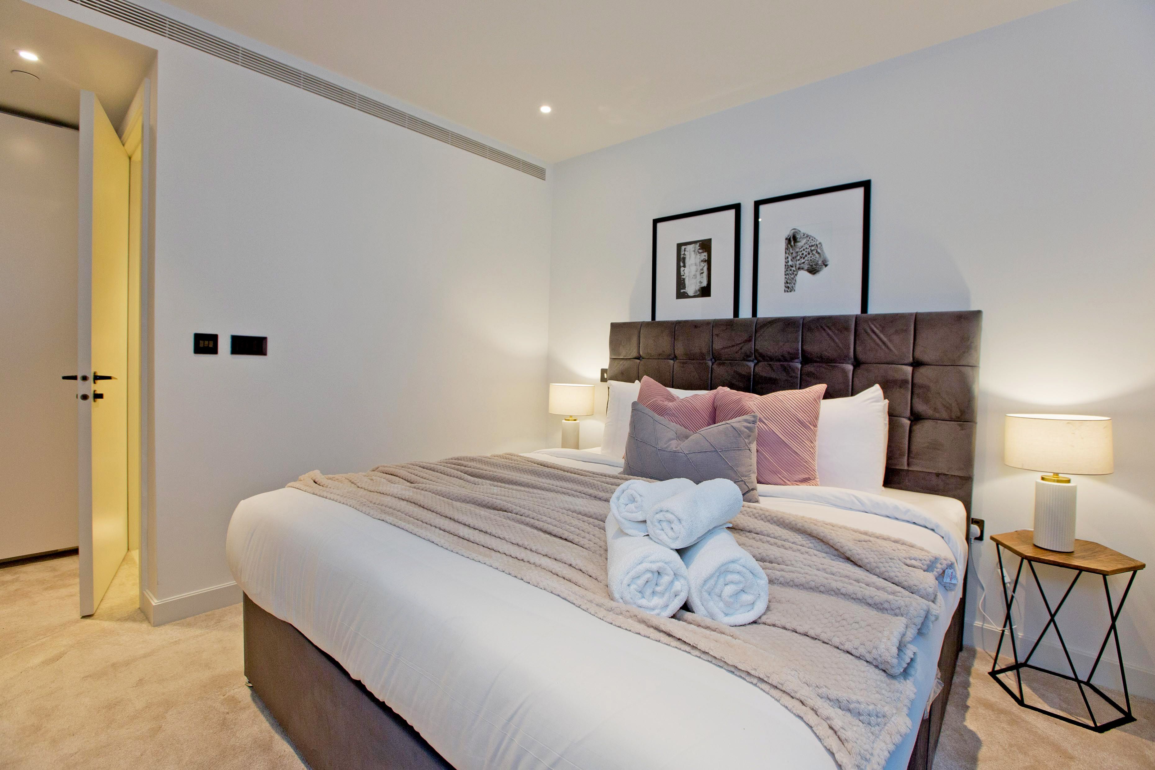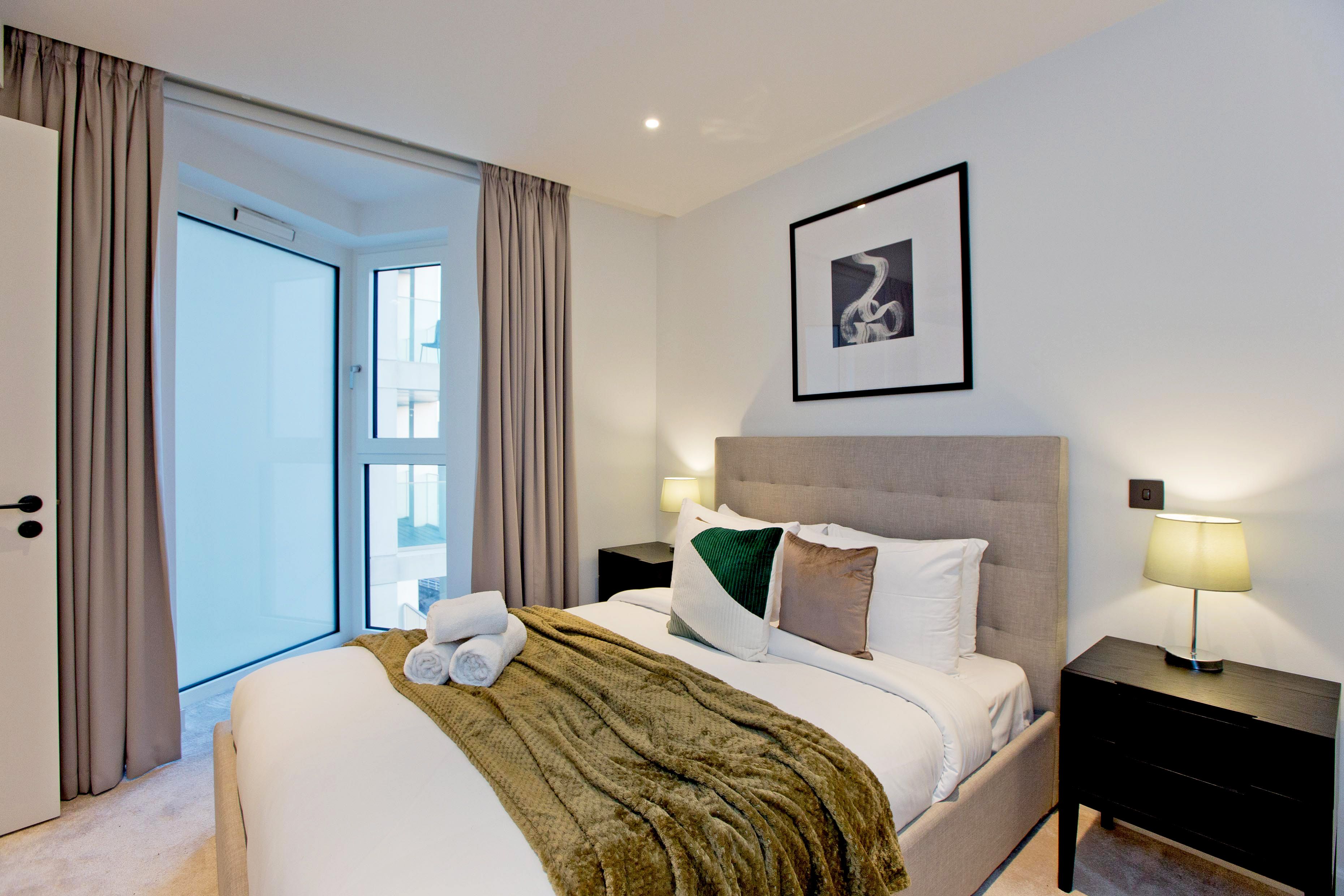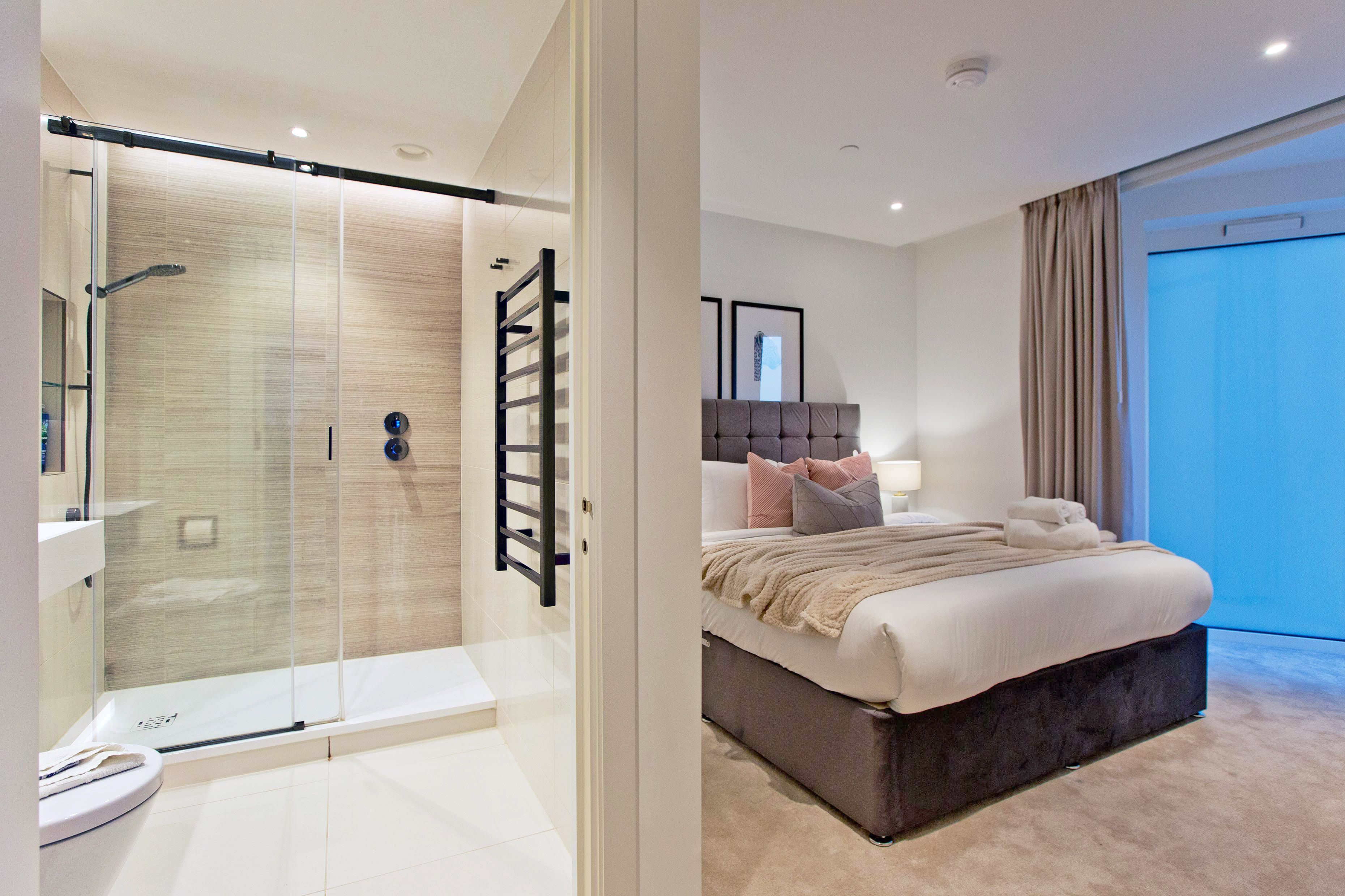 This White City apartment is just a short walk from Westfield London, giving a whole new meaning to the phrase 'shop 'til you drop'. Restaurants, a cinema, and a Tube station are at your fingertips, so you'll be well served whether you want to stay close to home or venture into central London. We love this pad's sleek design. Floor-to-ceiling windows give way to a balcony offering views of the surrounding area. There isn't a desk here, but the dining table doubles as one if remote working is on the cards. And those staying for thirty days or more will have access to the communal gym and pool – now that’s the cherry on top.
