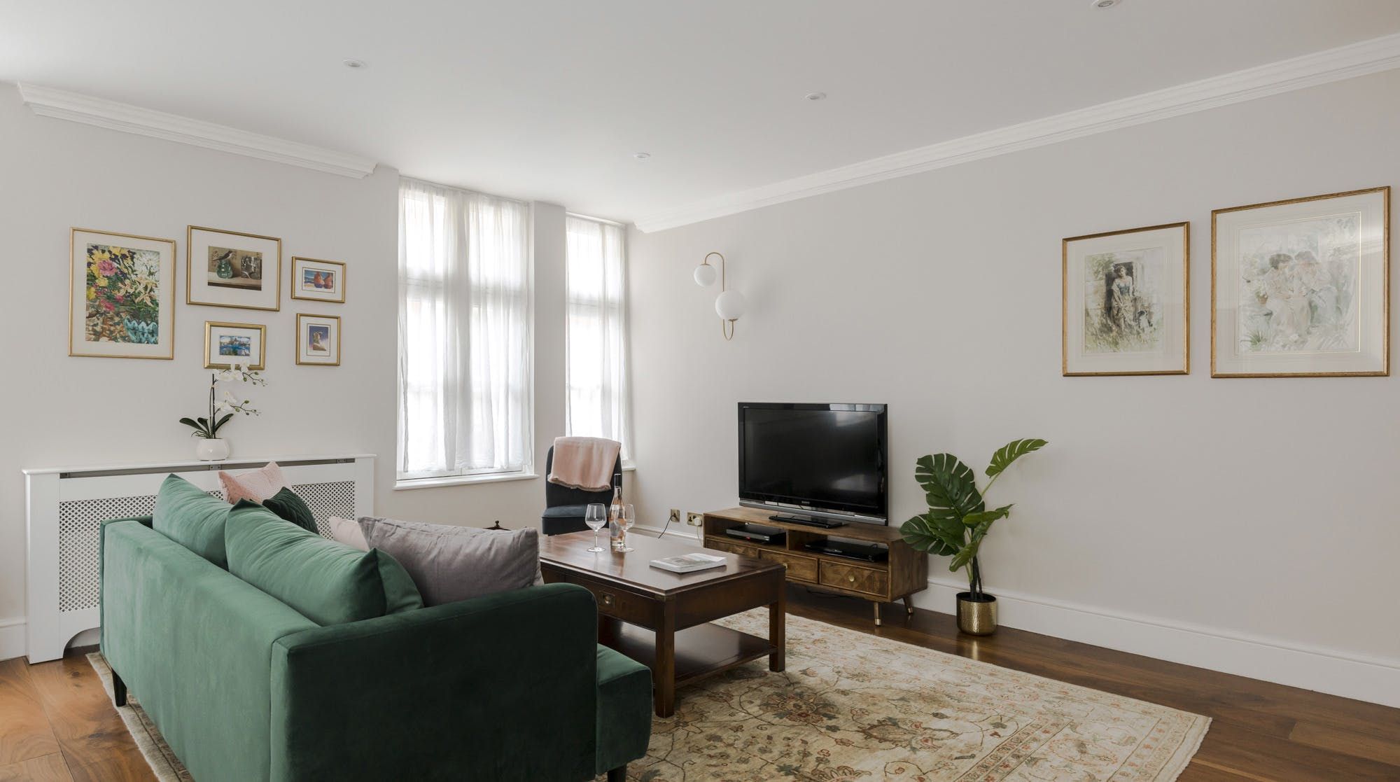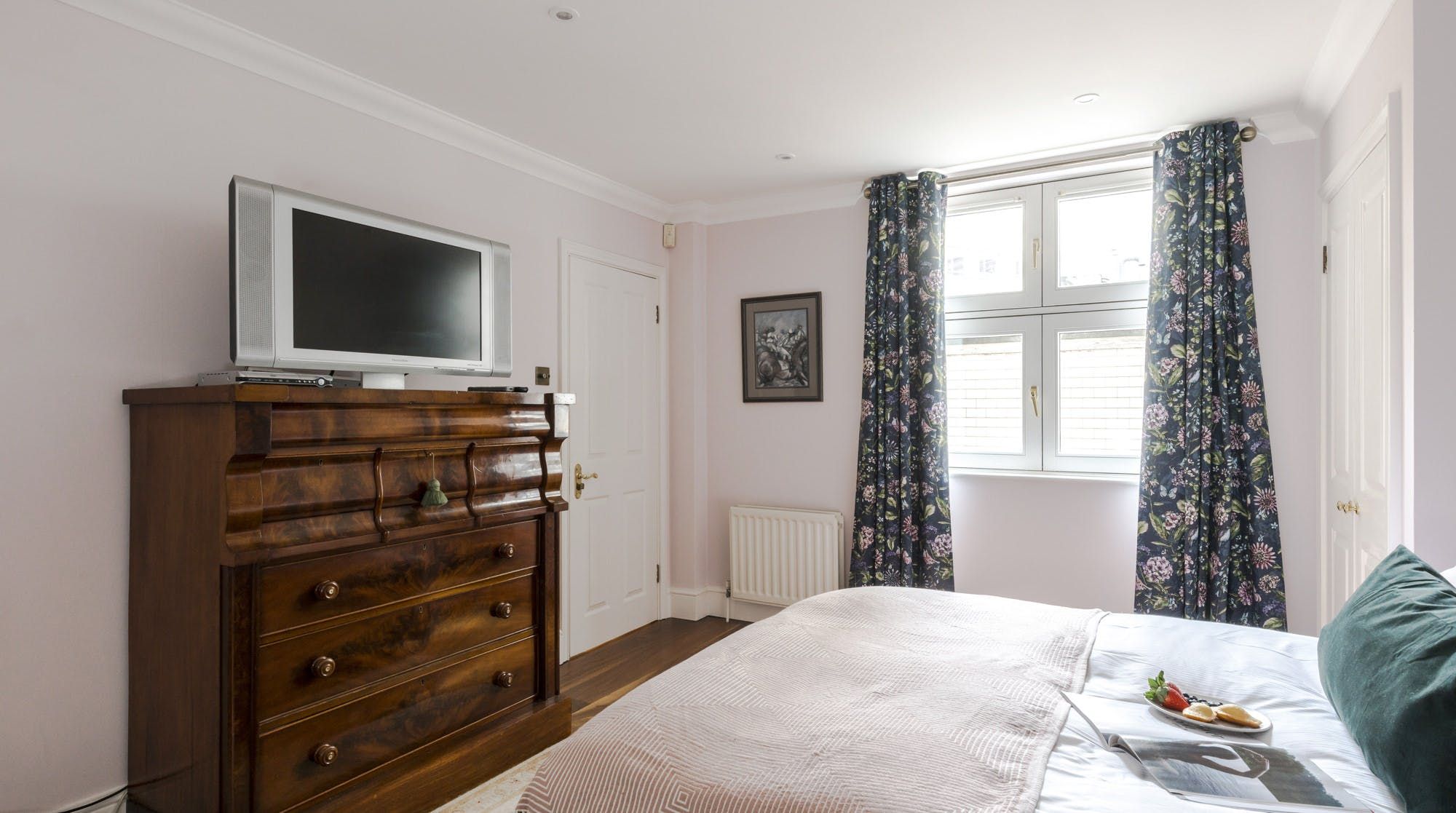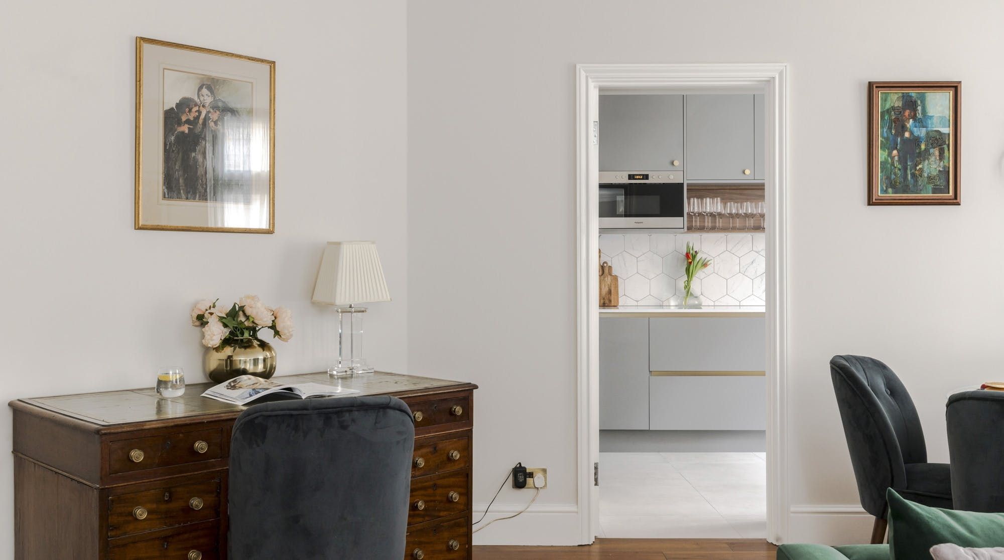 From this traditionally-minded yet well-maintained Mayfair apartment, there's a little taste of luxury in every direction. To your east is Liberty department store and there are further designer shopping options to your north on Bond Street. Head south and in two minutes, you could be on Savile Row, while wandering further west along these embassy-lined streets will get you to Grosvenor Square. However, despite this unbeatable location, we found this home to be extremely peaceful and a welcome refuge from the non-stop going-ons of Central London. The chic kitchen was a highlight here, with smart brass finishes contrasting nicely with honeycomb marble tiling, but let's not kid ourselves — with this many renowned restaurants only a short stroll away, don't be surprised if this home's oven remains undisturbed during the duration of your stay.