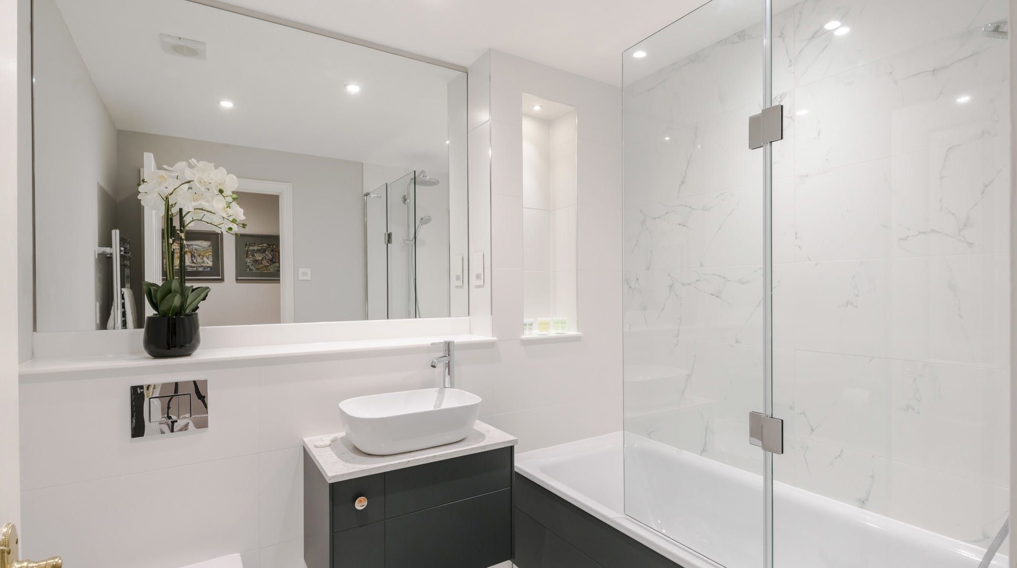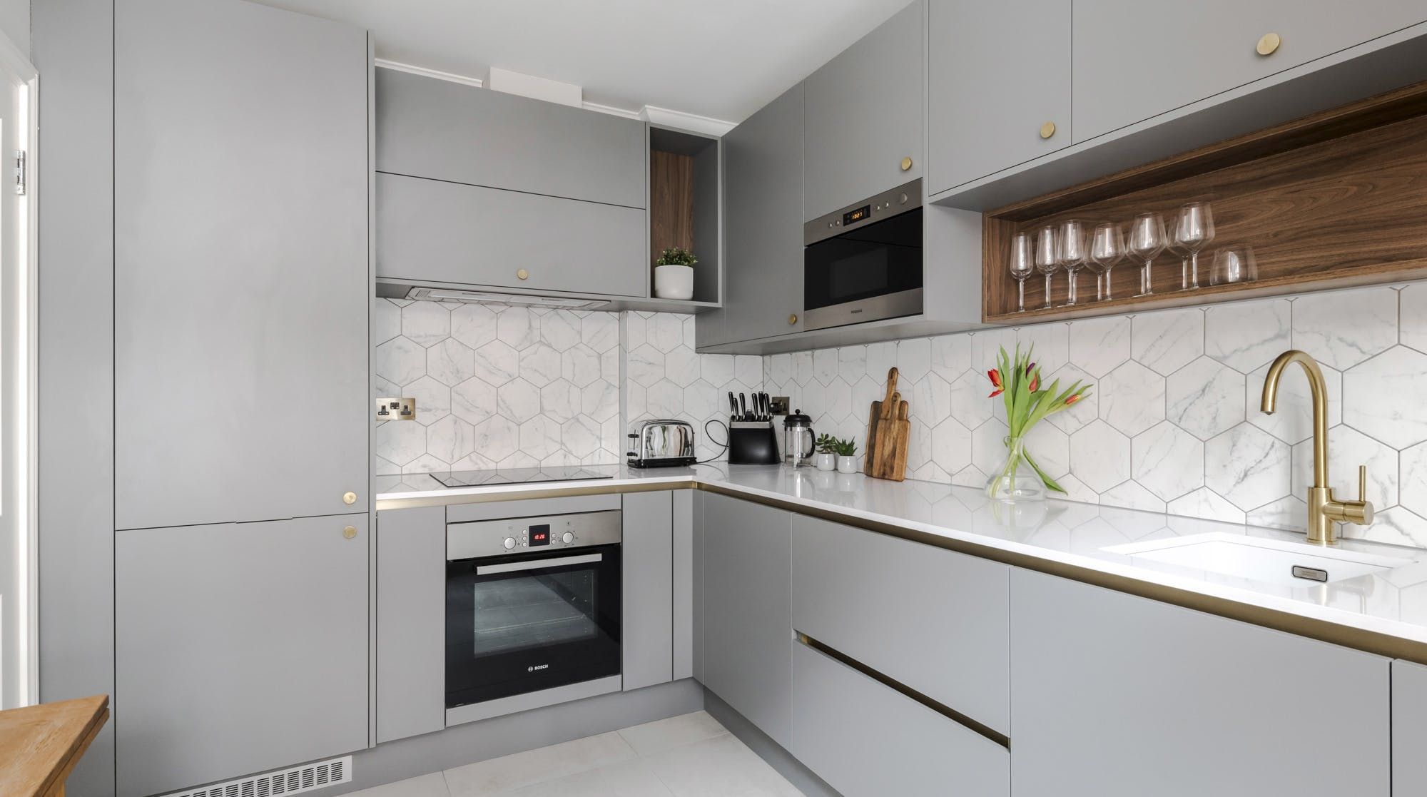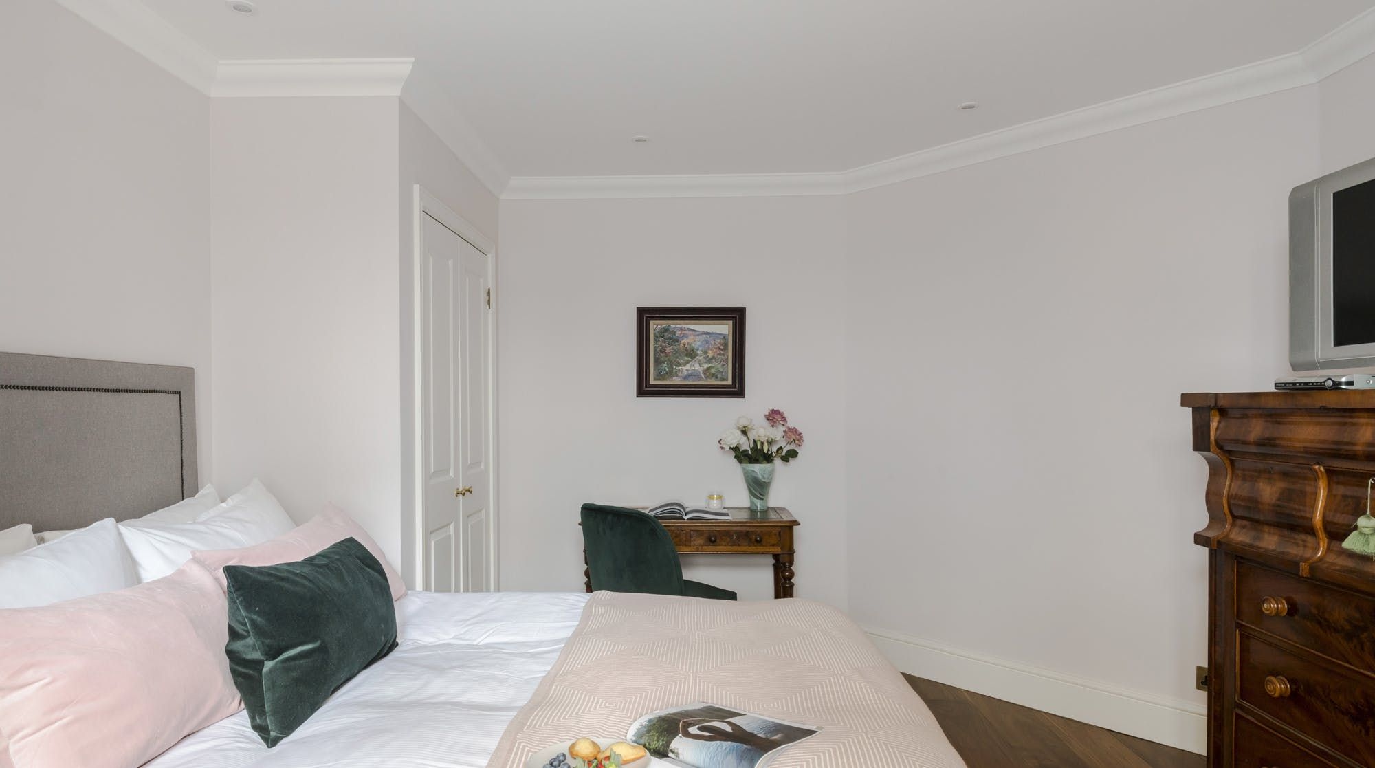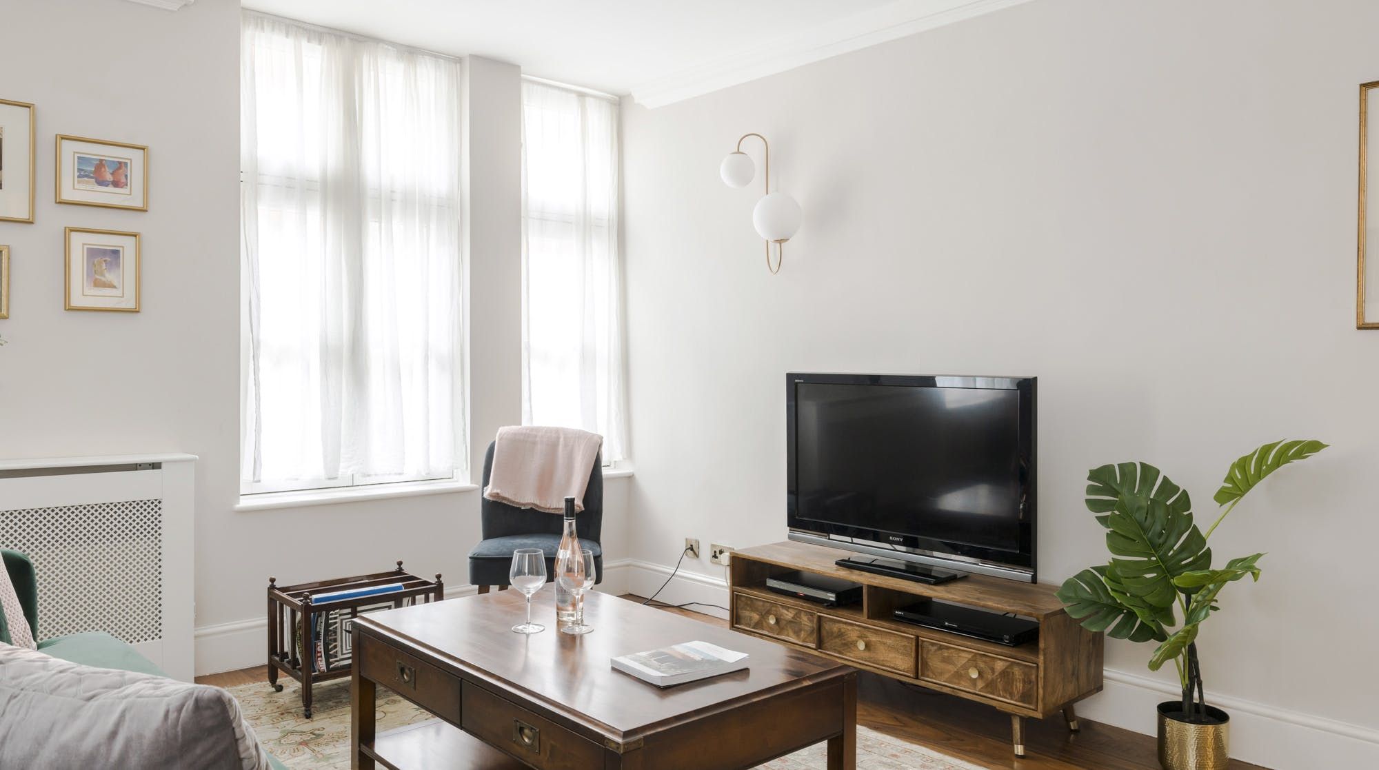 From this traditionally-minded yet well-maintained Mayfair apartment, there's a little taste of luxury in every direction. To your east is Liberty department store and there are further designer shopping options to your north on Bond Street. Head south and in two minutes, you could be on Savile Row, while wandering further west along these embassy-lined streets will get you to Grosvenor Square. However, despite this unbeatable location, we found this home to be extremely peaceful and a welcome refuge from the non-stop going-ons of Central London. The chic kitchen was a highlight here, with smart brass finishes contrasting nicely with honeycomb marble tiling, but let's not kid ourselves — with this many renowned restaurants only a short stroll away, don't be surprised if this home's oven remains undisturbed during the duration of your stay.