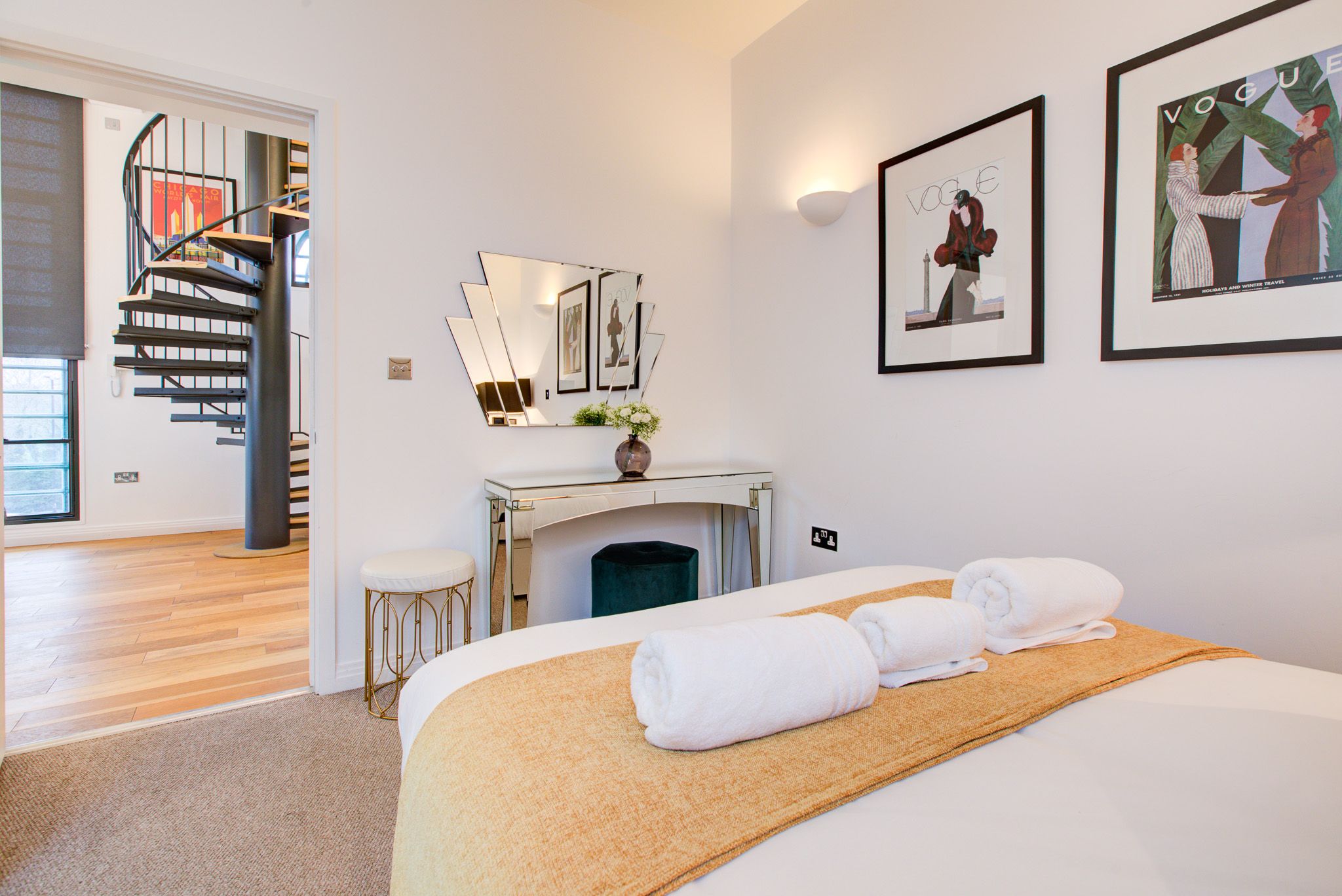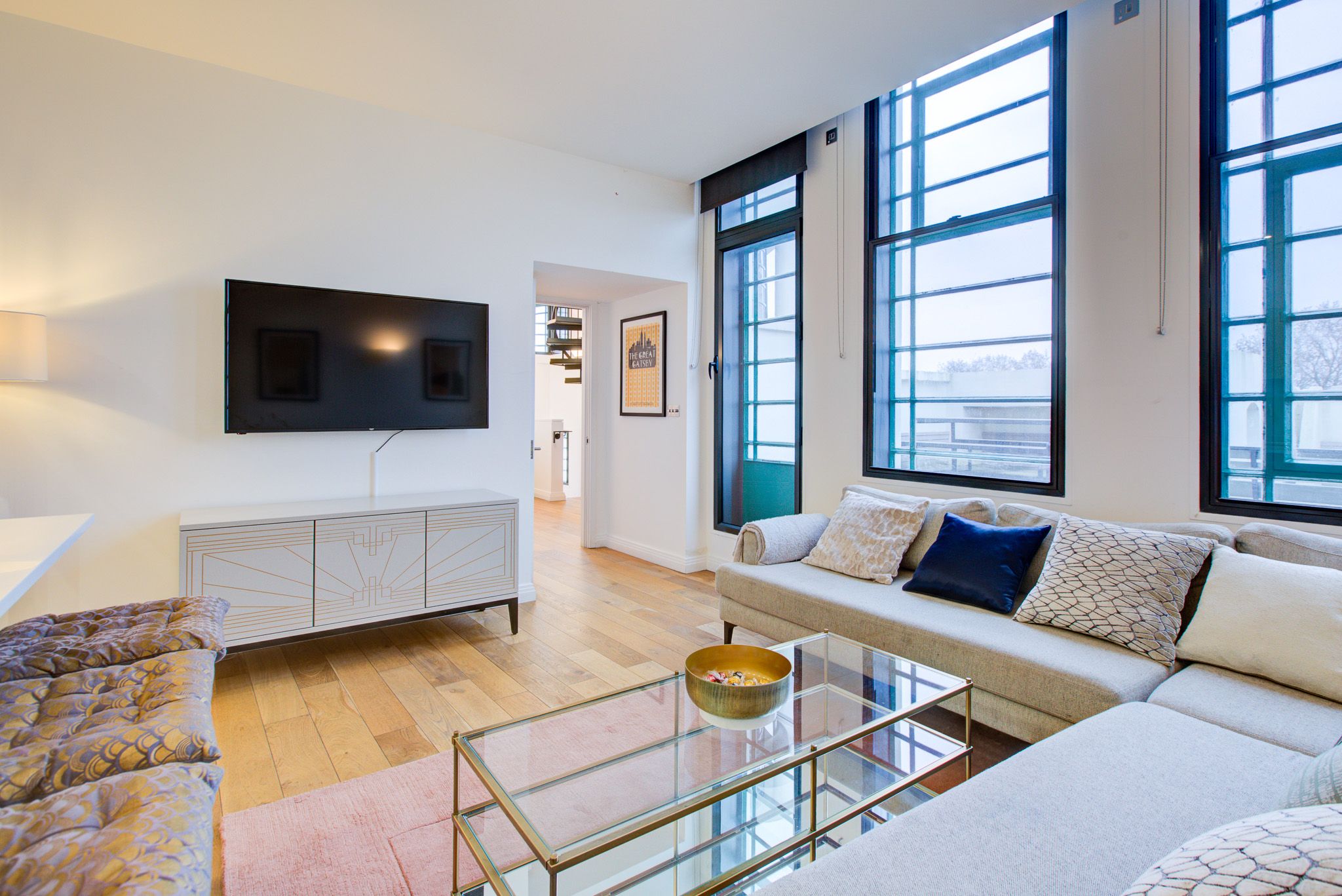 Located in a striking Art Deco, Grade II-listed building, this West London apartment is set to impress. The former factory windows fill the split-level home with natural light, and there’s a private balcony with views of the leafy Greenford area. Offering practicality and style in equal measure, each bedroom comes with its own bathroom to speed your mornings along. There's also a supermarket onsite to pick up essentials and a private car park to make arriving a cinch. Perivale Underground Station is just a short walk away for easy access to central London and nearby West London hotspots, including Notting Hill and Kew Gardens.