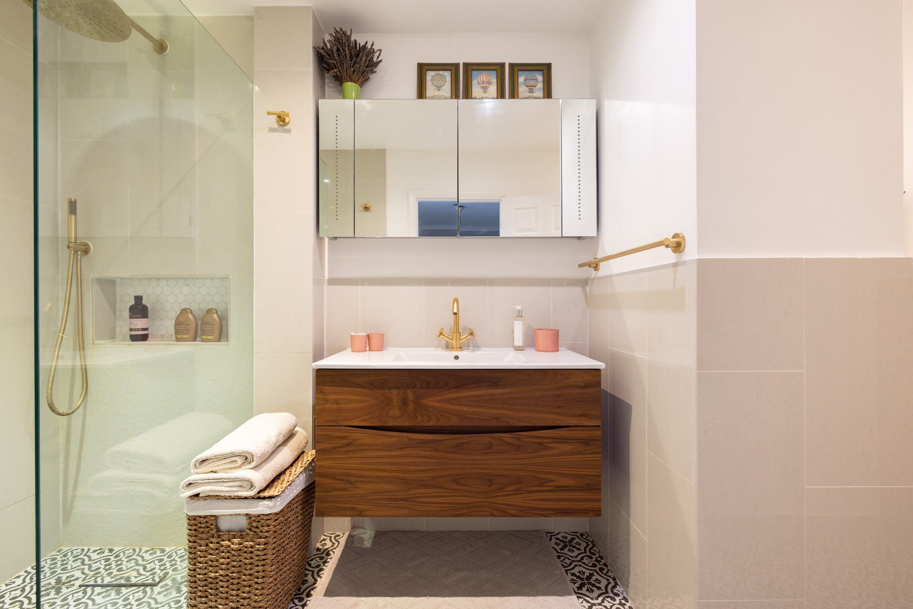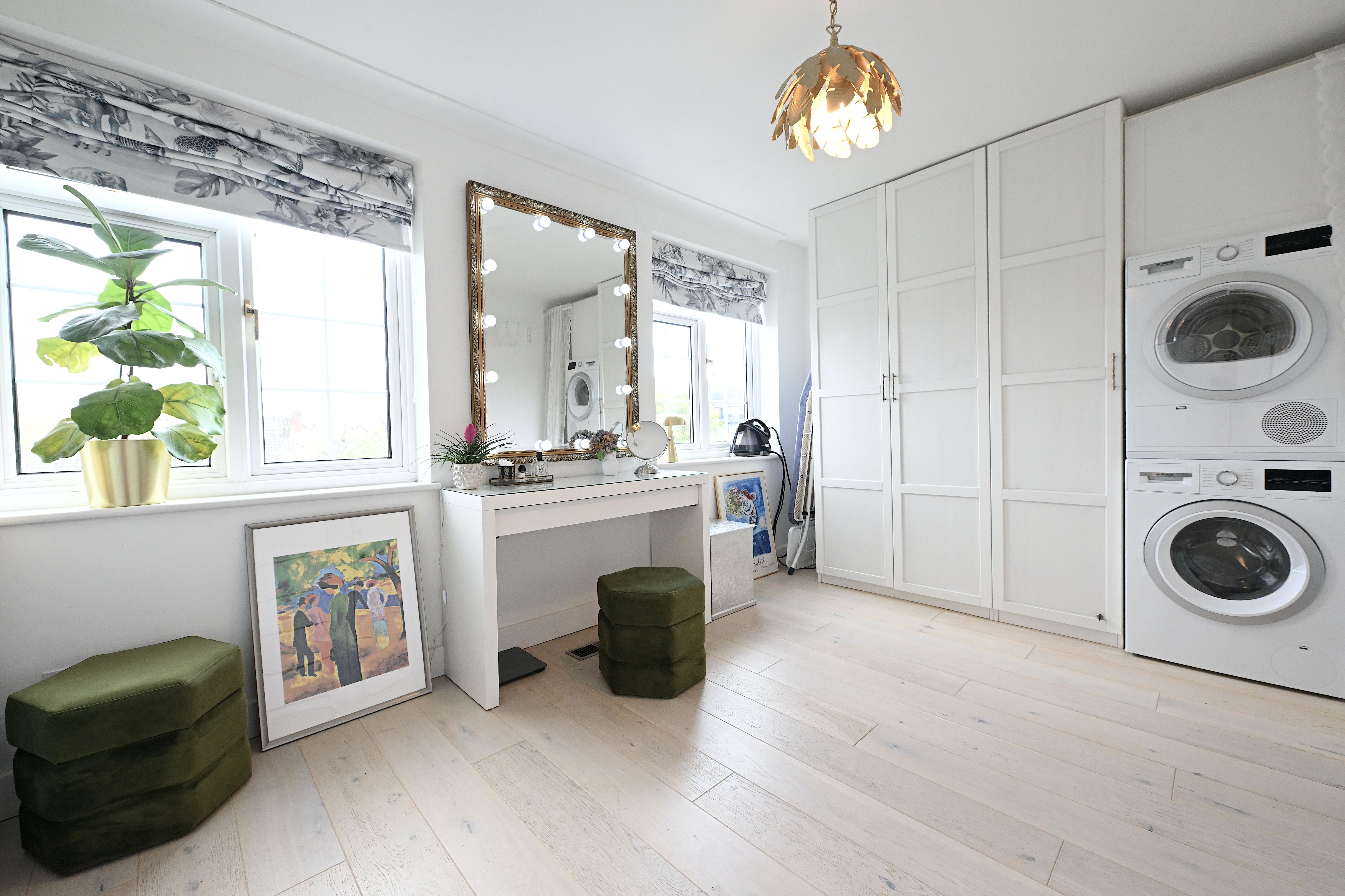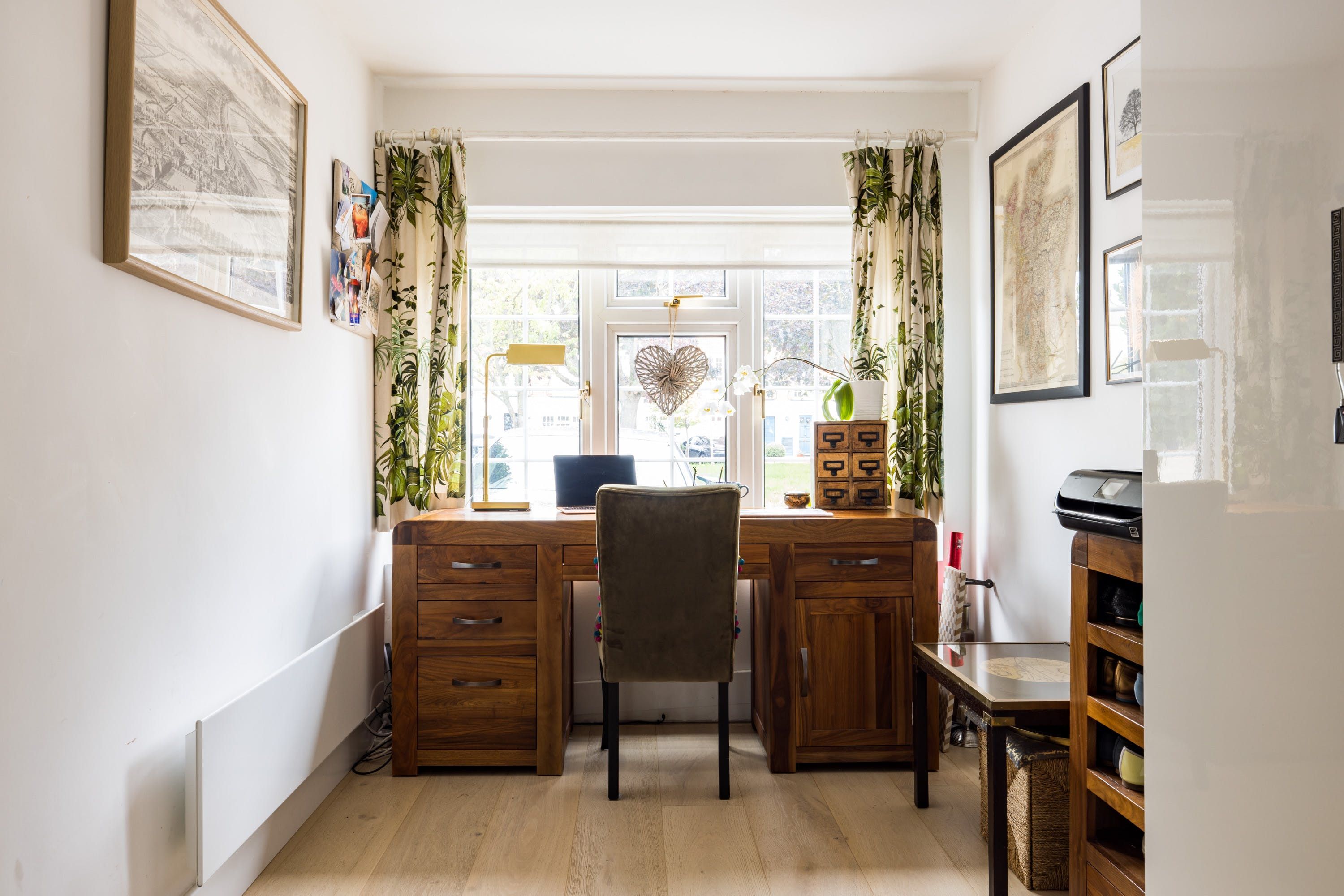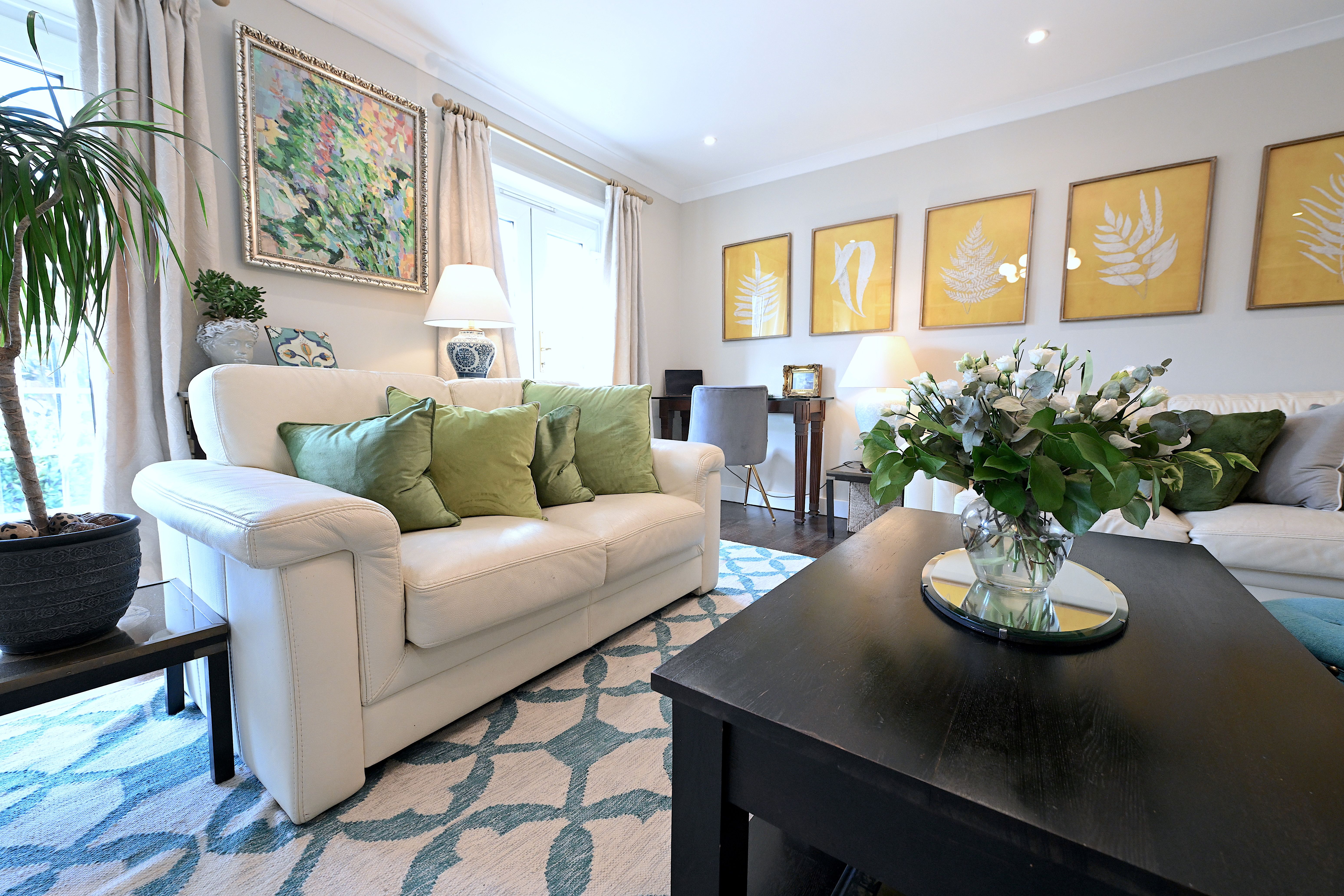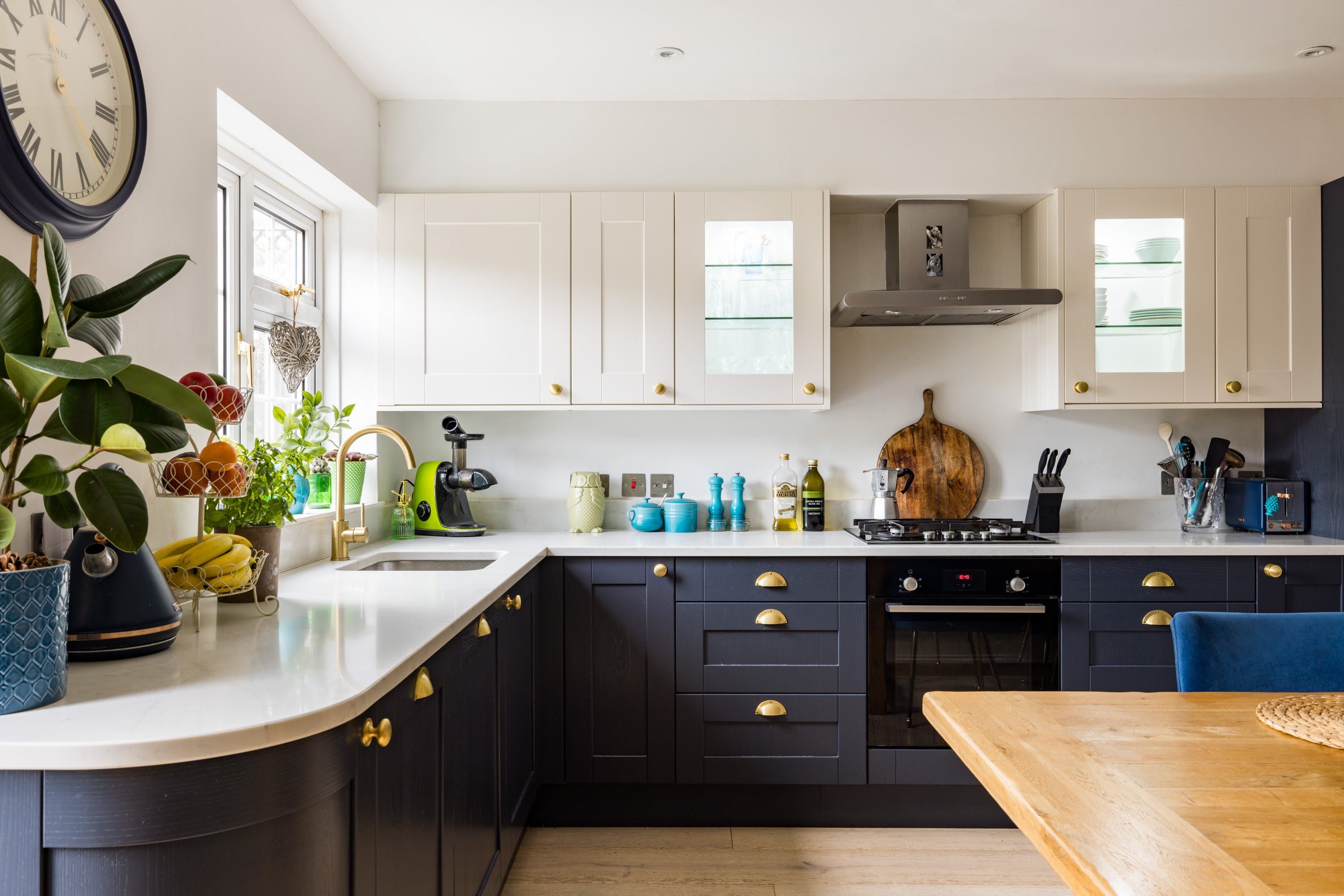 Back at this home, enjoy a cup of tea in the garden with its pretty flower borders, or relax on the sofa in the living room and pick a book from the shelf. We love the French doors, which allow light to flood in, as well as the neutral hues enlivened by pops of blue and green. Later, rustle up a salmon tray bake in the modern and stylish kitchen with its navy blue units (there's a blender, food processor and juicer). There's a handy office space here, too, if you want to catch up on work. To top it all off, this place has private parking to boot.
