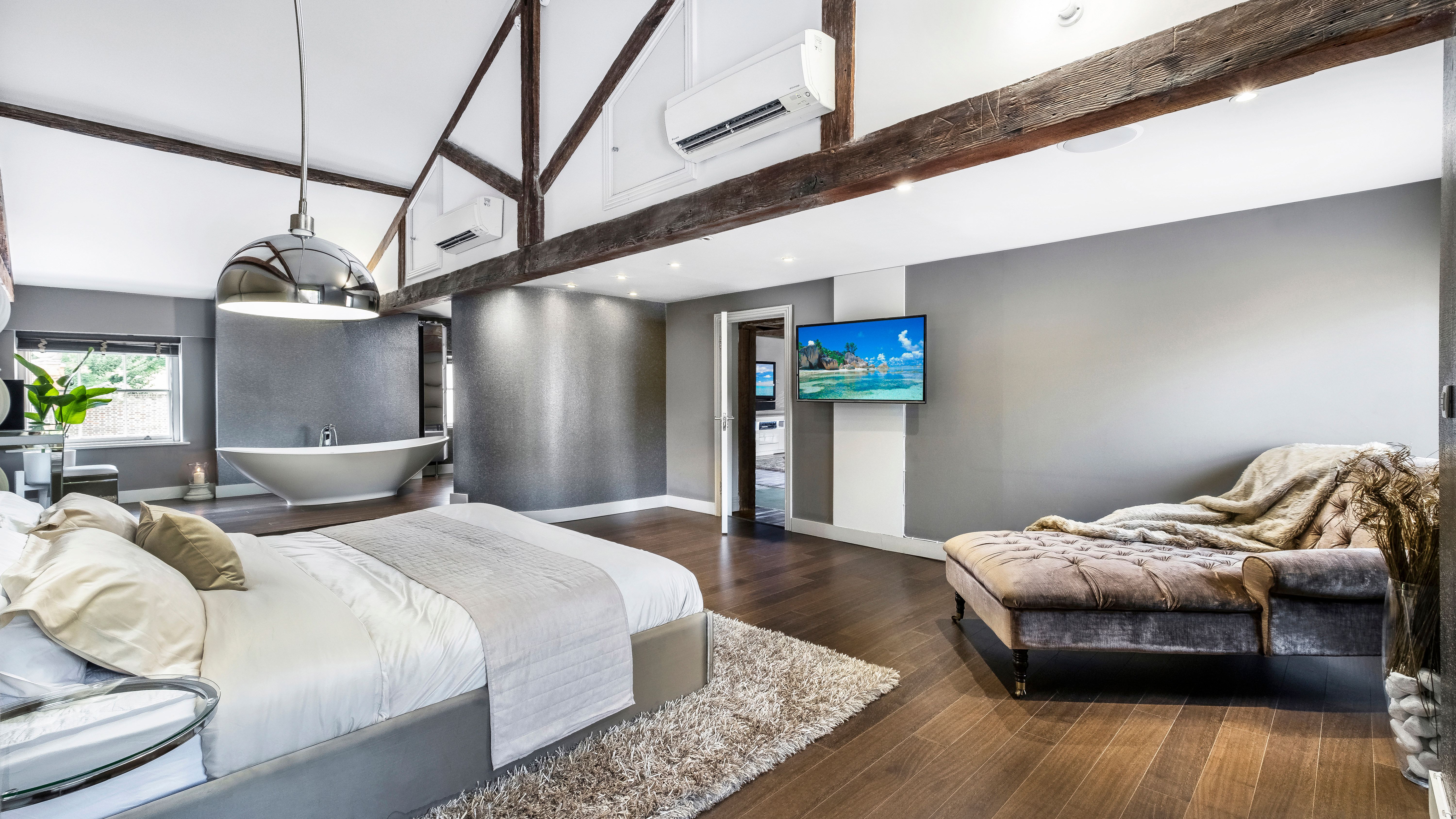 This mansion has luxury written all over it. Featuring a private indoor pool available all year round, a cinema room perfect for movie nights, and a fun-filled games room, there's plenty to keep you entertained here – and that's not counting the two acres of landscaped gardens. The interior is all about sleek finishes and high-end touches, whether you're soaking in the freestanding tub or whipping up a meal in the expansive kitchen. It's not in the centre of London – you wouldn't get this much space otherwise – but Sidcup Station is nearby, which can whisk you away to Charring Cross in about thirty minutes.