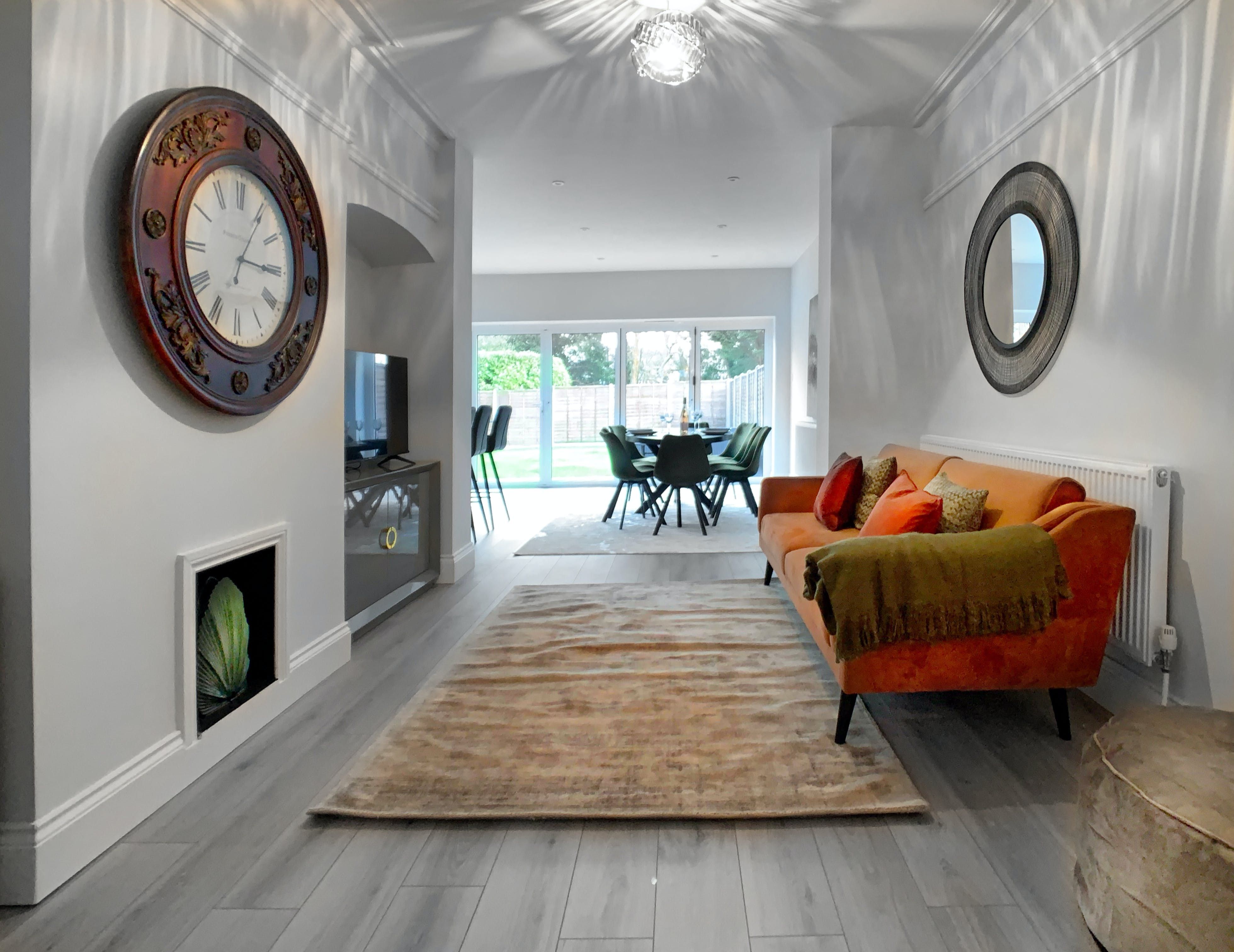 This detached Edwardian home in Surrey enjoys all the serenity of country life while being within easy reach of the city. Set on a quiet street in Thames Ditton, you’re just a five minute walk from the river, and surrounded by green spaces. The picturesque Giggs Hill Green with its English Cricket green is a few minutes walk down the road, and there are a handful of quaint country pubs in the area where you can enjoy a restorative lunch after a walk along the river.