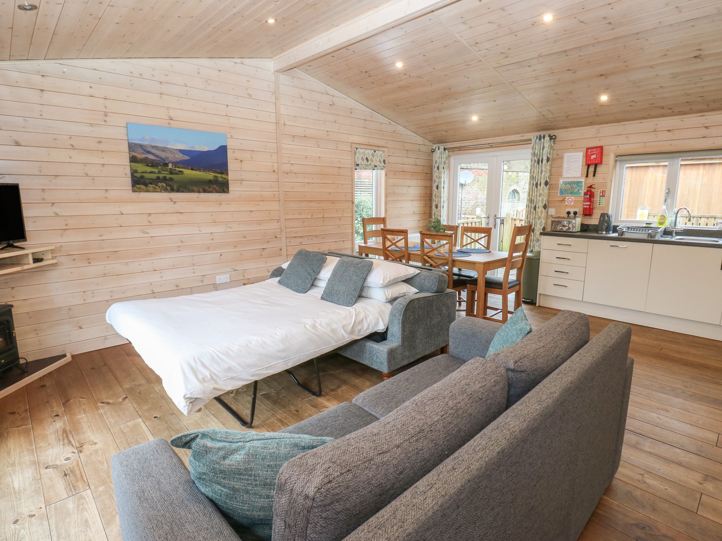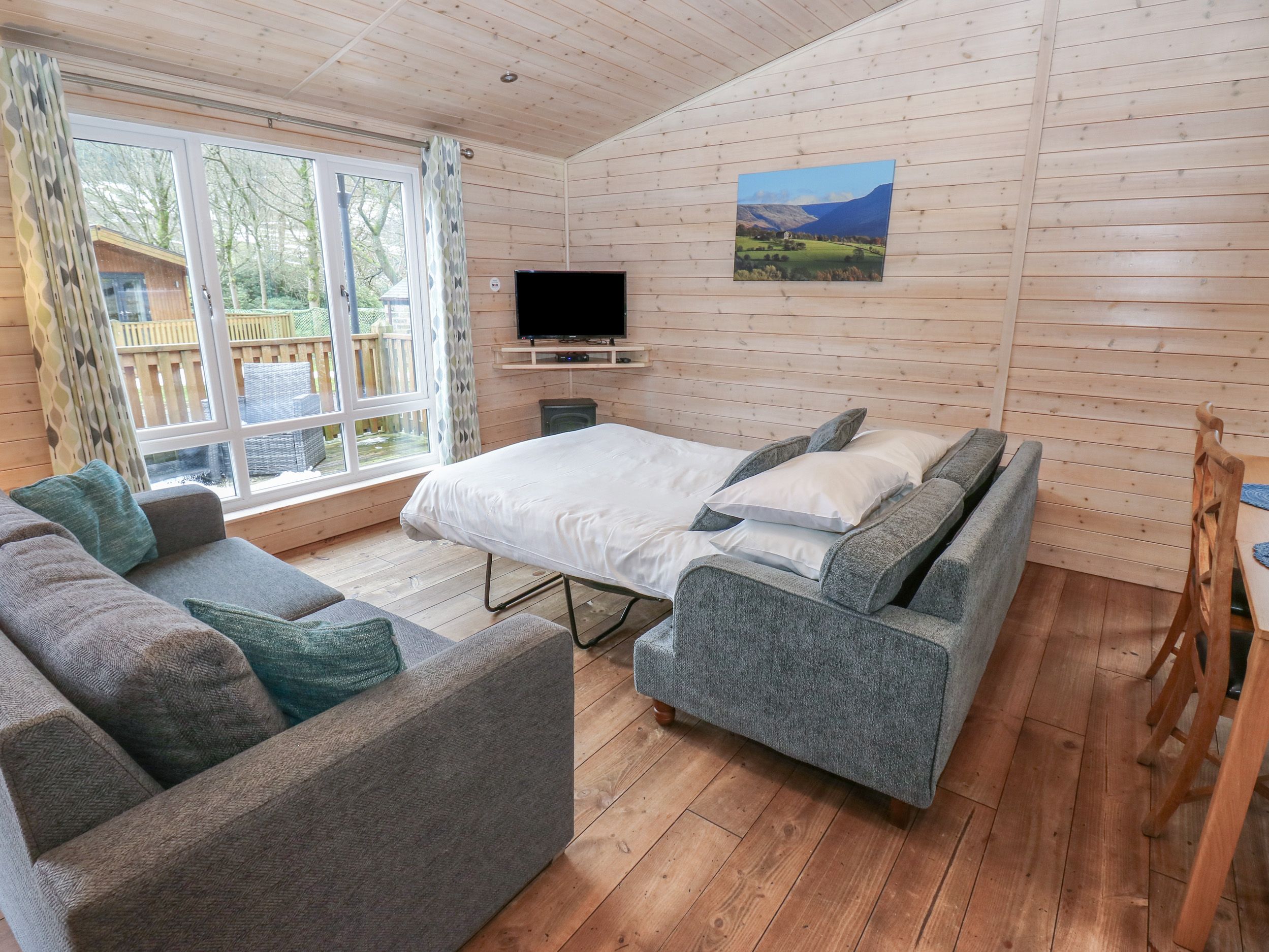 Accomodation Details Single-storey. Two bedrooms: 1 x double with TV and en-suite walk-in shower, basin, and WC, 1 x twin. Bathroom with bath, hand-held shower, basin, and WC. Open-plan living area with kitchen, dining area, and sitting area with sofa bed