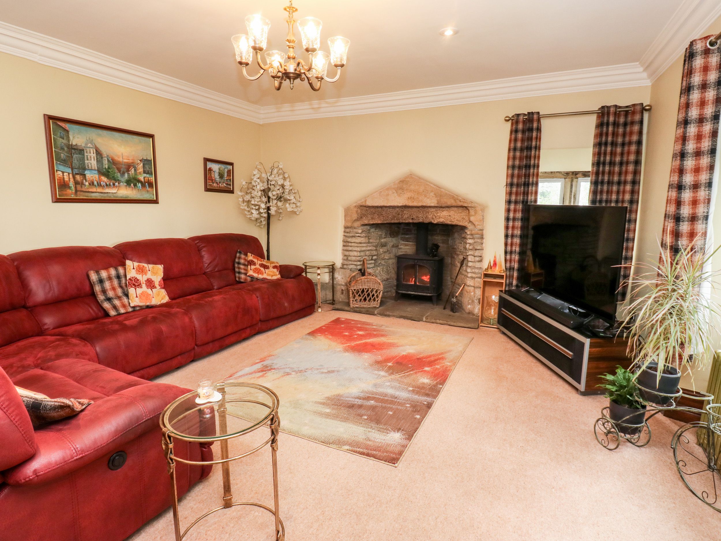 Amenities Gas central heating. Gas Range cooker and hob, microwave, 2 x fridge/freezer, washing machine, tumble dryer, dishwasher. 3 x Smart TV, WiFi, multi-games table, selection of books and games. Fuel, power, and starter pack for woodburning stove inc. in rent. Bed linen and towels inc. in rent. Please bring your own essentials as only one toilet roll per toilet and one bin liner per bin are provided. Highchair, travel cot and stairgate available. Off-road parking for 6 cars. Large garden with lawn area, multiple patio areas with furniture, summer house with furniture, enclosed courtyard with hot tub, sauna, secure bike storage, children's play area and trampoline. Two well-behaved dogs welcome, but downstairs only. Sorry, no smoking. Shop 0.5 miles, pub 0.1 miles. Note: There are steep steps throughout the exterior; please take care. Note: There is CCTV outside. Note: Please take care when using the outside play equipment especially the trampoline