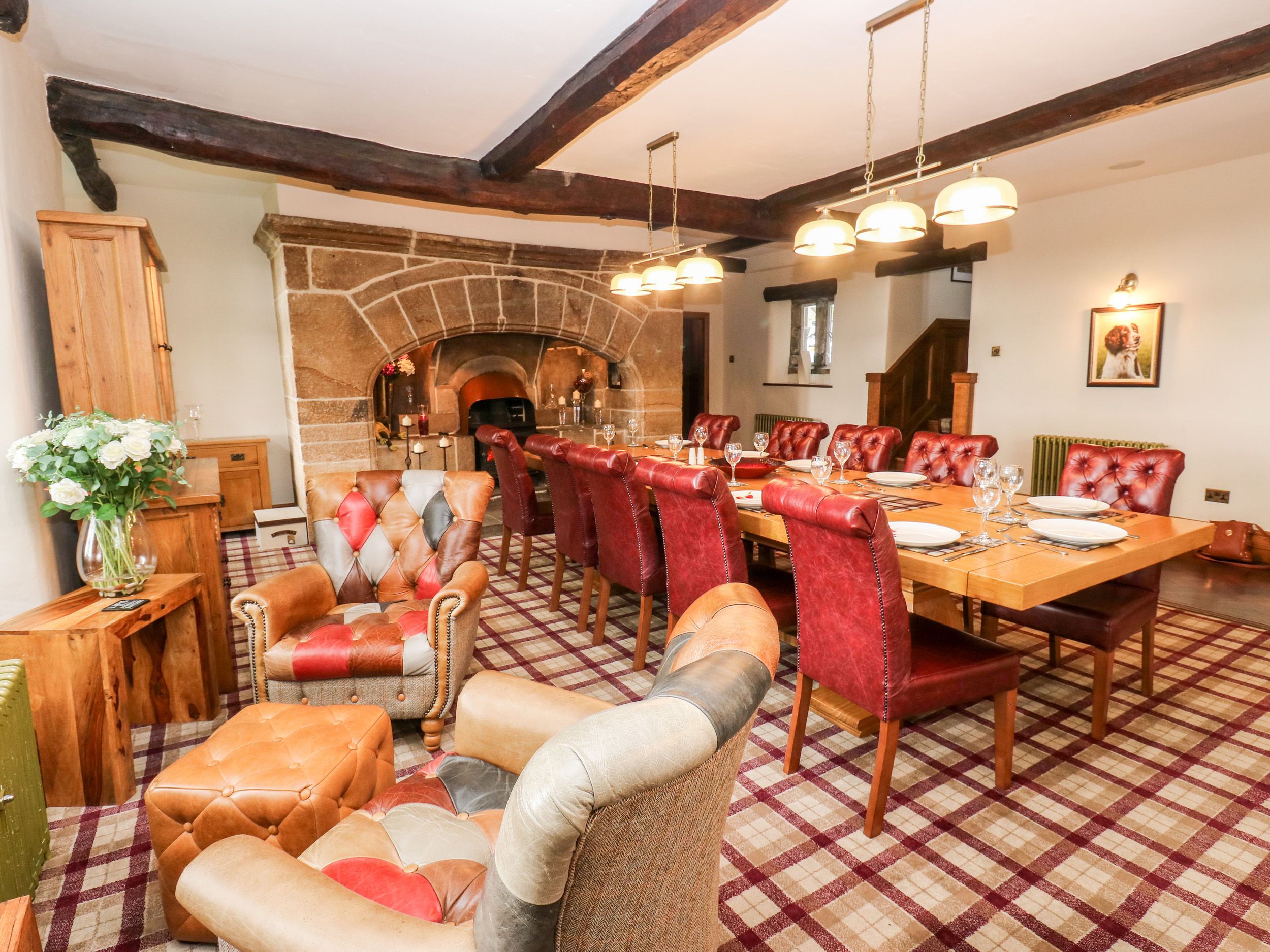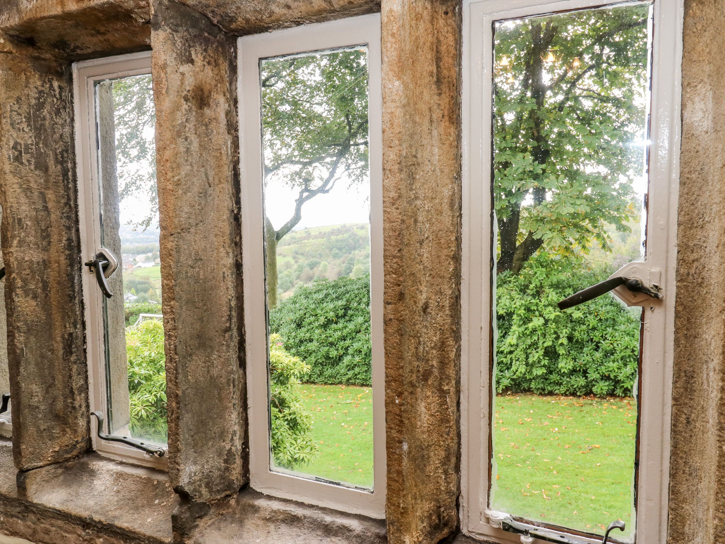 Holiday home Shore Hall has a kitchen/diner, utility, a dining room and sitting room, both with woodburning stoves, a sitting room with gas fire, a games room, a super-king-size bedroom with en-suite, a super-king-size (zip/link), a king-size with en-suite, a king-size (zip/link), a further king-size and a bunk, serviced by a bathroom and two cloakrooms. Appliances consist of a Range, microwave, two fridge/freezers, washing machine, tumble dryer, dishwasher, three Smart TVs, selection of books and games and a multi-games table. Outside there is a lawned garden, multiple patio areas with furniture, an enclosed courtyard with hot tub, secure bike storage, a children's play area, trampoline and indoor sauna, and off-road parking for six cars. Two well-behaved dogs welcomed downstairs only, but no smoking. WiFi, fuel, power, bed linen and towels are all included. Please bring your own essentials (e.g. toilet rolls, bin liners) One highchair, travel cot and stairgate available. Enjoy rural West Yorkshire at Shore Hall. Note: There are steep steps throughout the exterior. Note: There is CCTV outside.