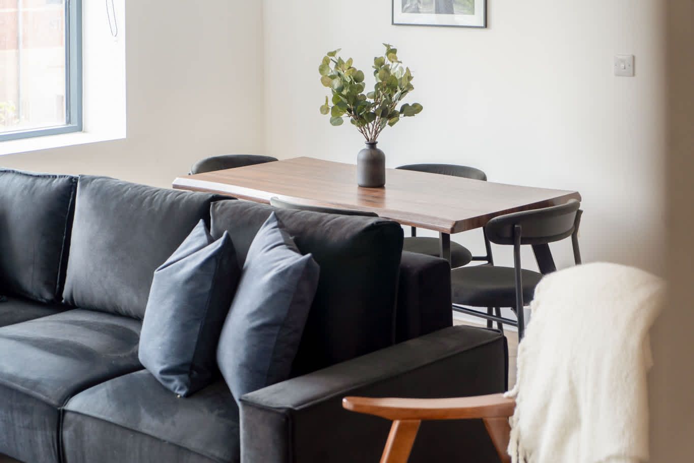 *There’s enough bed space for six people, but it may feel a little cramped. The sofa is a three-seater, and there are only four dining chairs.