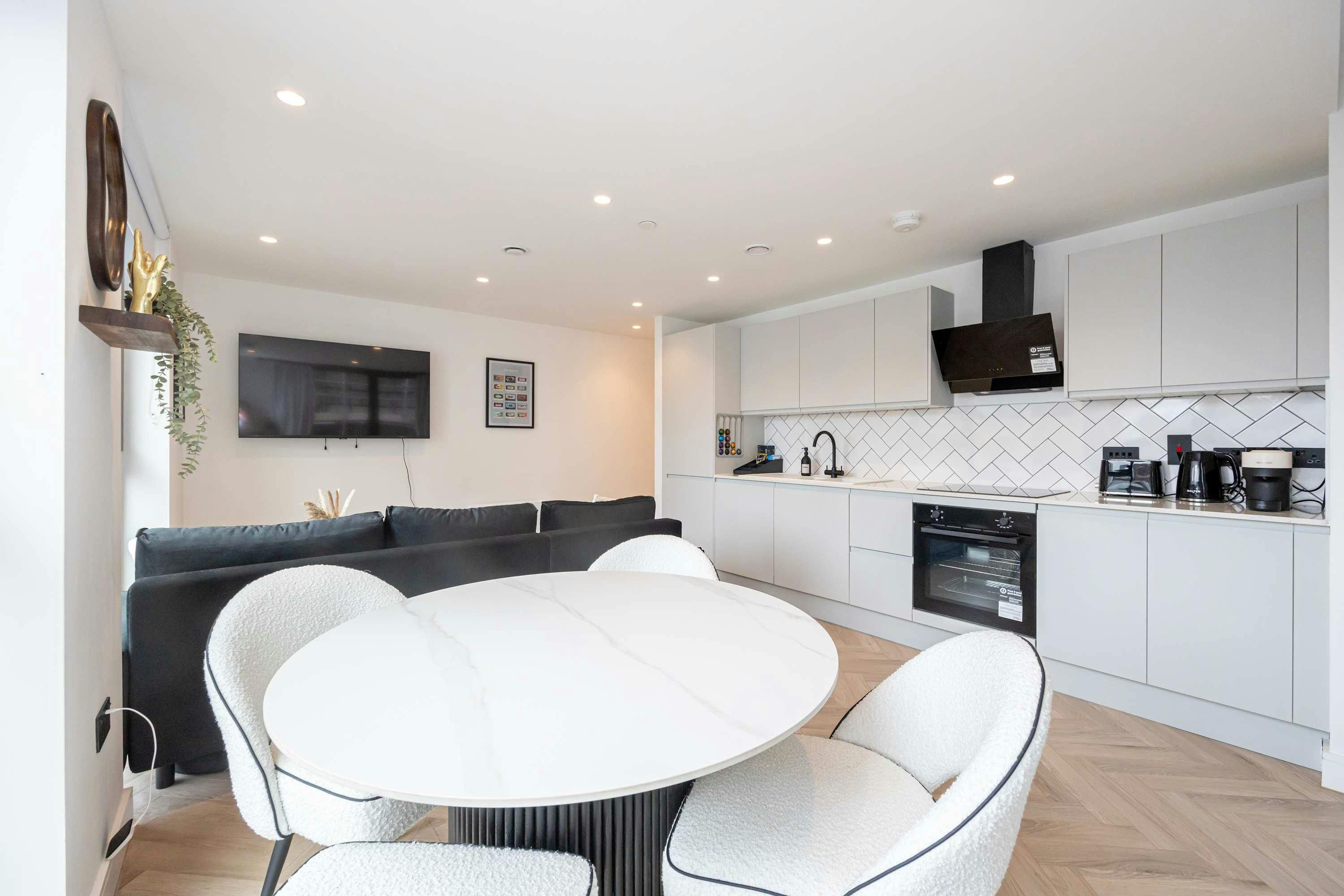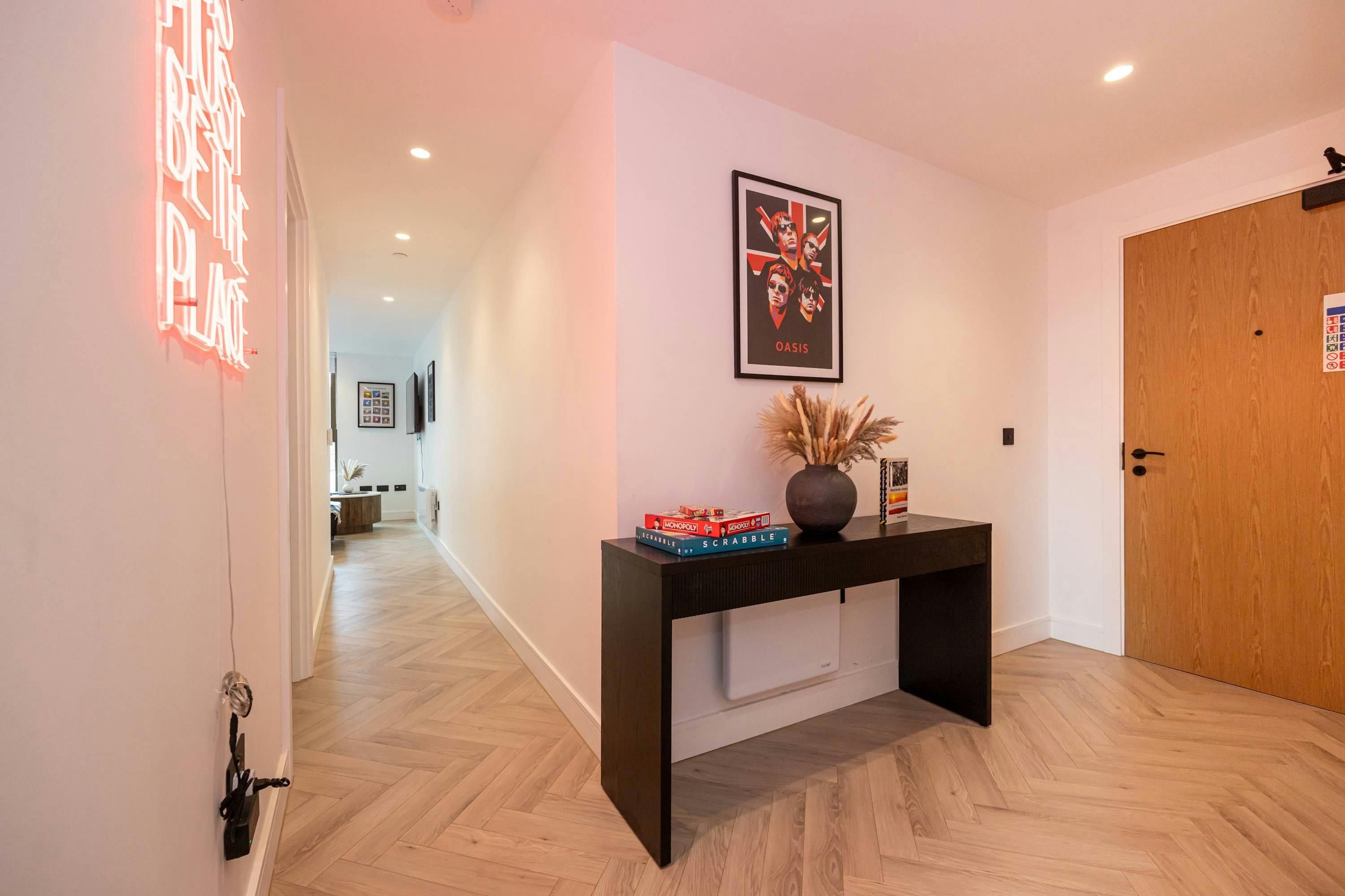 This sleek 5th-floor apartment puts you right in the heart of Manchester’s vibrant Ancoats neighbourhood. With a fresh, modern vibe and easy access to the city’s best bars, eateries, and cultural spots, it’s the perfect base whether you’re here for work or play. While you won’t get sweeping city views, the balcony is a perfect spot to enjoy the outdoors. Or, pop into the residents’ lounge or cosy living room for a relaxing alternative. Just a short stroll or taxi ride gets you to all the city highlights – meaning your Manchester adventure starts the moment you step outside.
