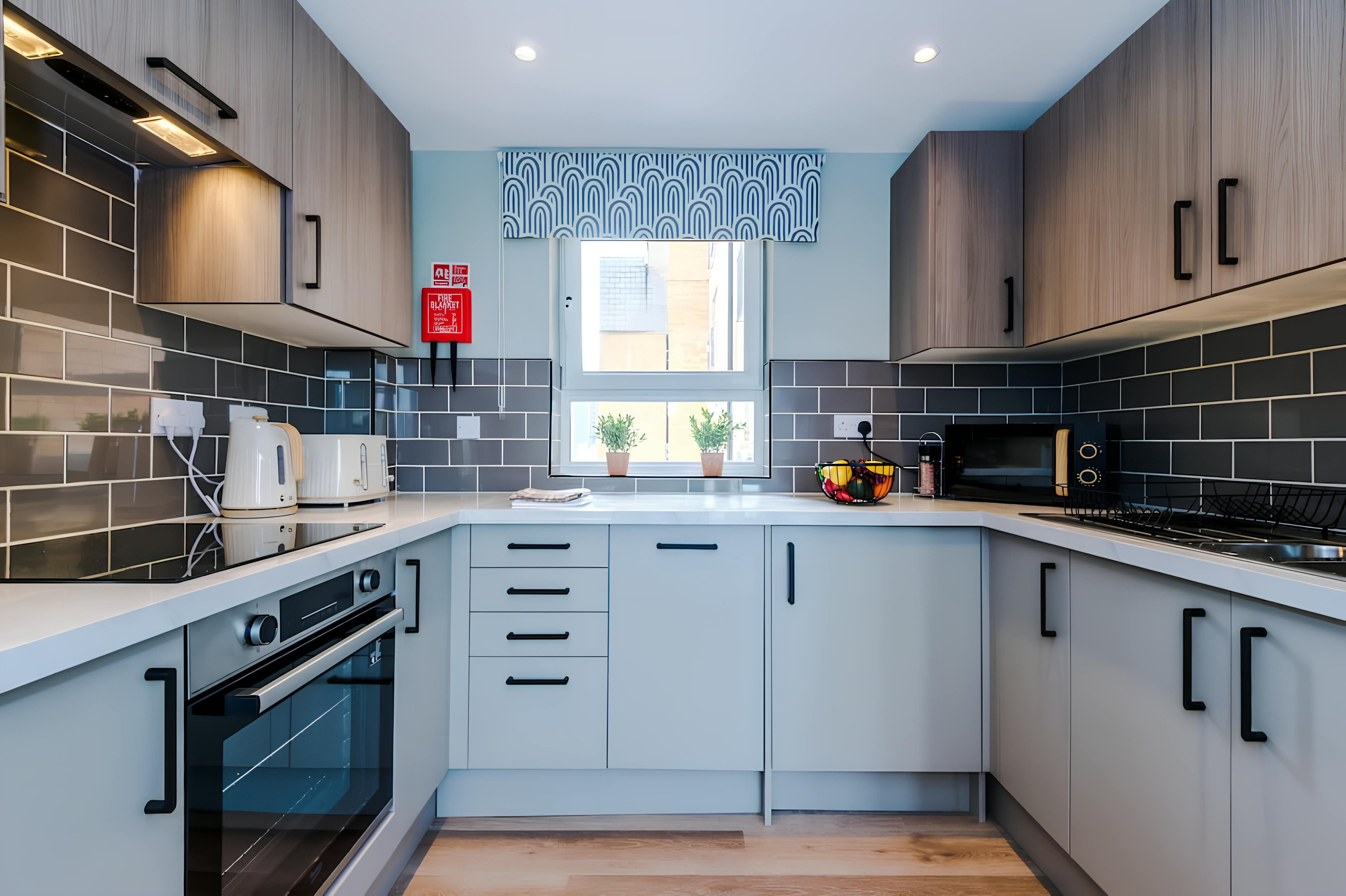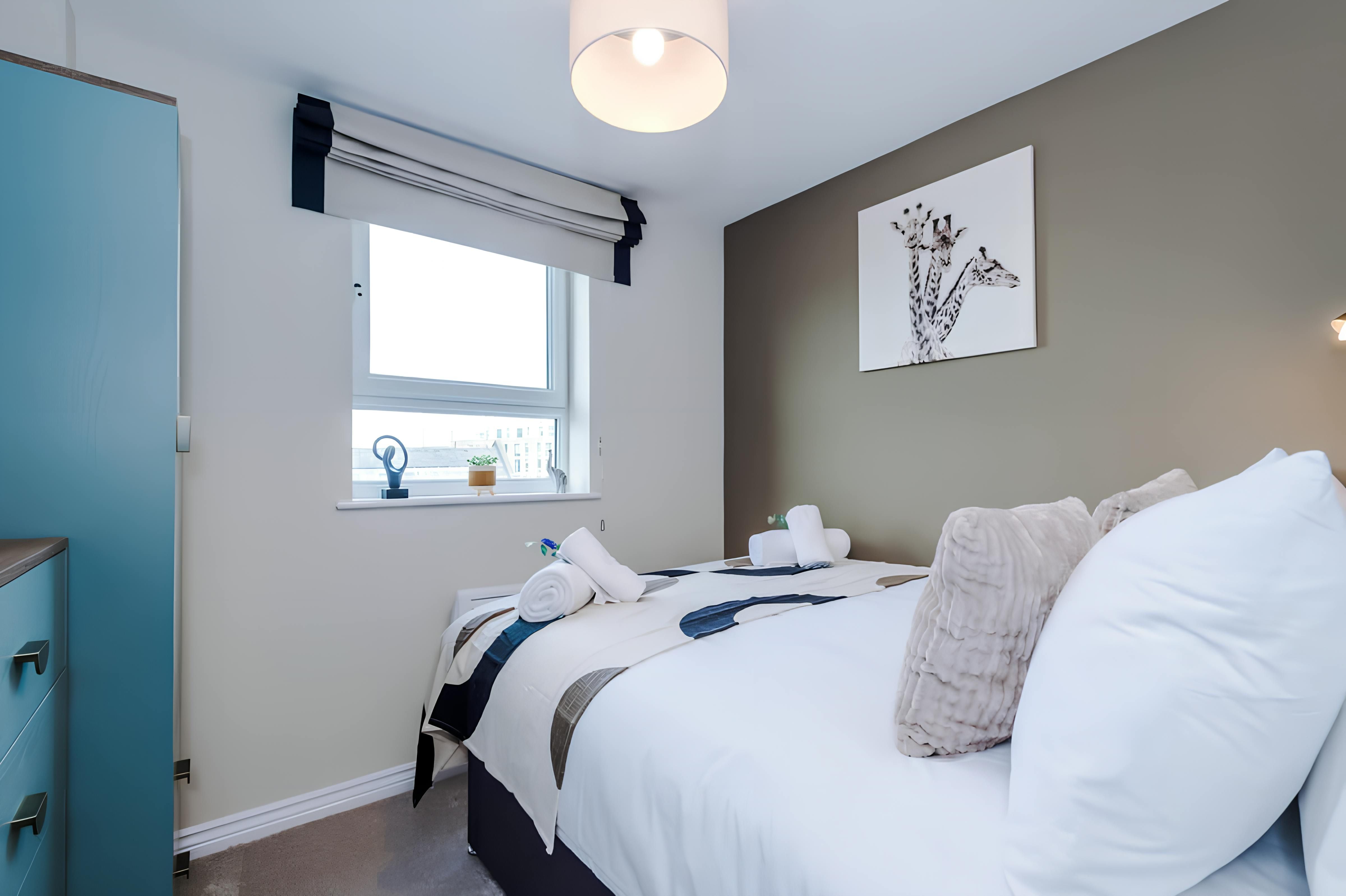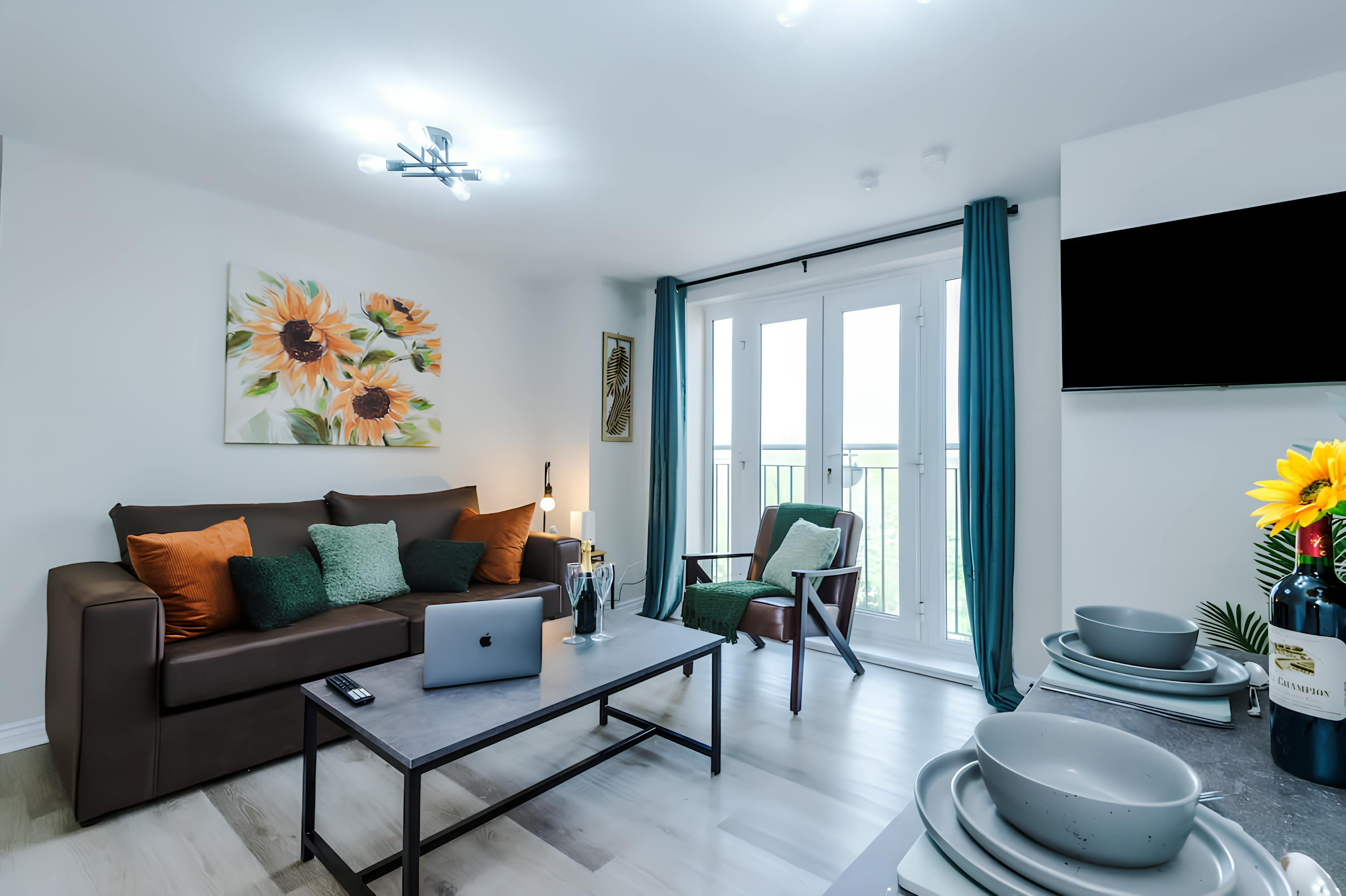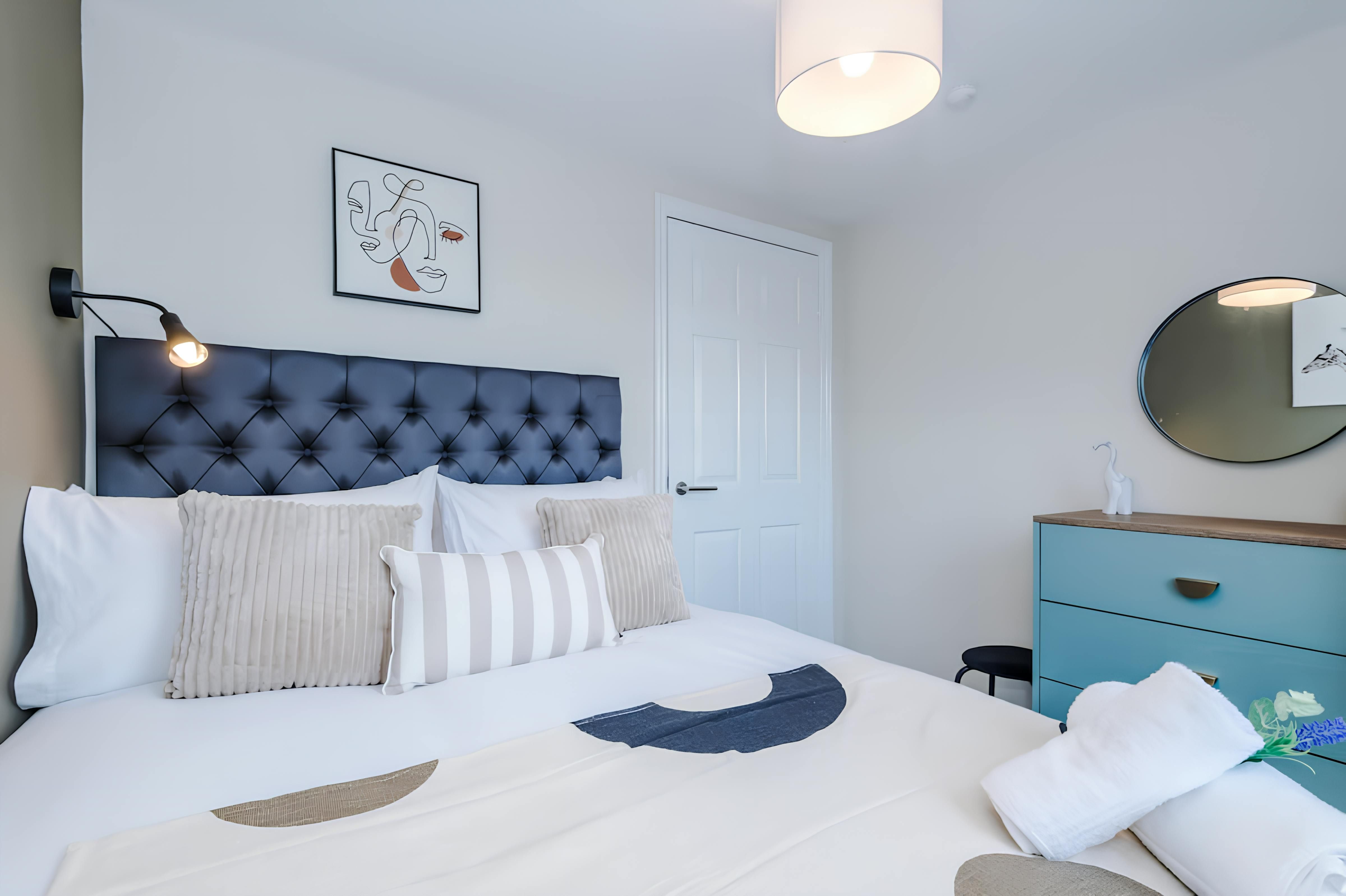 Fifteen minutes from central Manchester, this apartment makes a practical base. It's contemporary in terms of design, but size-wise, it's on the compact side – we think it works best for smaller groups. Still, it has all the essentials to unwind – a well-appointed kitchen, a comfortable lounge, and free parking for one car. A sofa bed in the living room accommodates two, and one bed can be converted into two singles, providing flexibility for friends and families.
