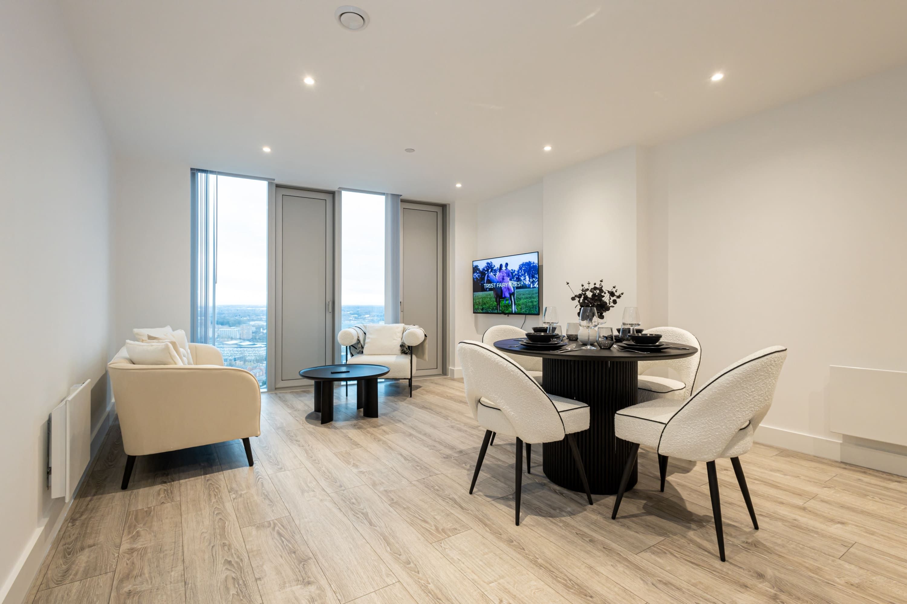 Perched on the 33rd floor of one of Manchester’s newest towers, this sleek one-bedroom apartment offers a front-row seat to the city’s ever-changing skyline. Whether you’re squeezing in a spin class before breakfast, catching sunset from the rooftop terrace, or making the most of the co-working space, the building’s amenities bring a touch of luxury to everyday living. Inside, the space is smartly designed and refreshingly clutter-free – ideal for unwinding after a day on the go. And with the city centre just moments away, you’re perfectly placed to experience the best of this vibrant northern hub.