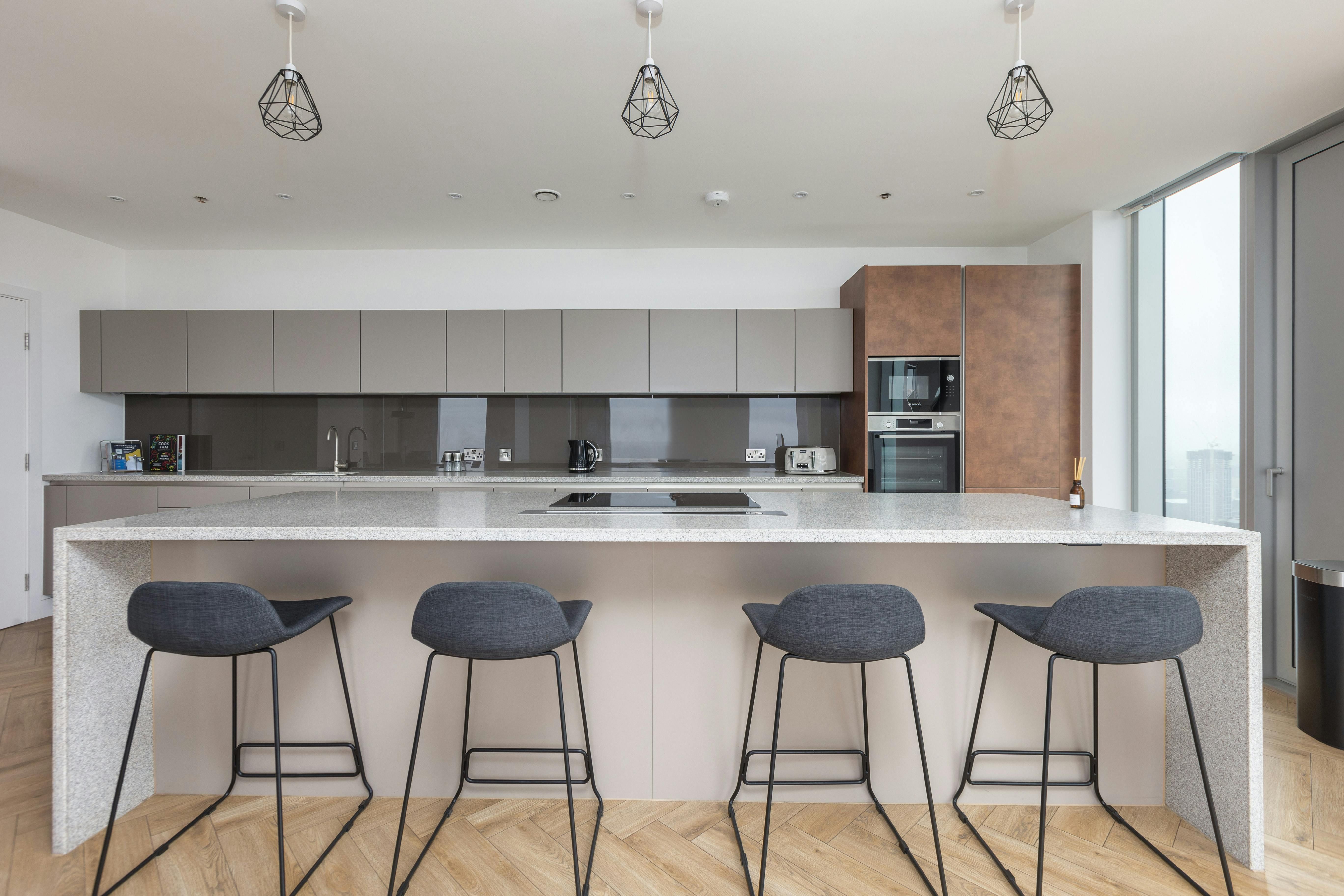 Take in the panoramic views over Manchester from this apartment on the forty-third floor. On the same level, you’ll find the communal sky lounge, while other shared facilities include a gym and concierge service. This apartment doesn’t have a lived-in feel, but that said it’s sleek and modern and would suit a group of friends or business colleagues. And there are two very handy car parking spaces with this place. Not that you’ll really need a car as the buzzing city centre is within walking distance or a short bus ride away.