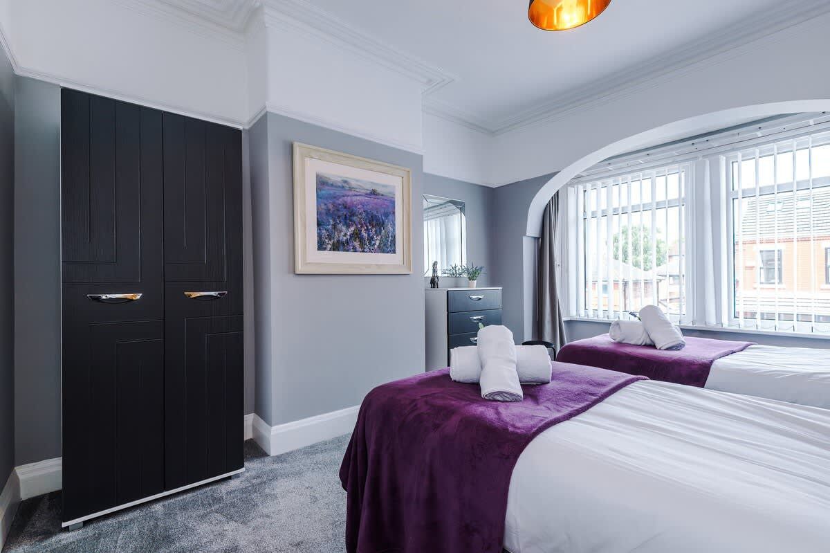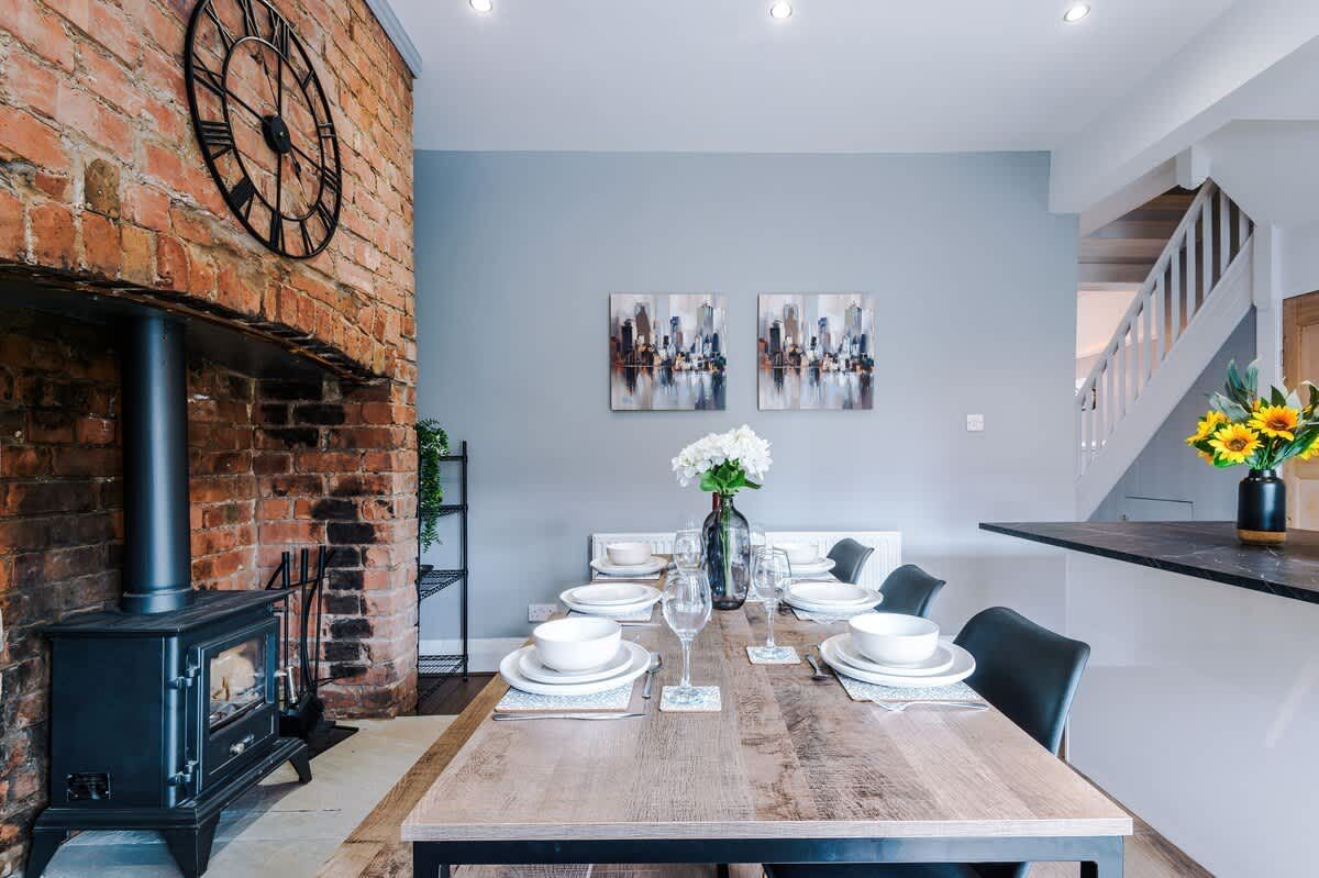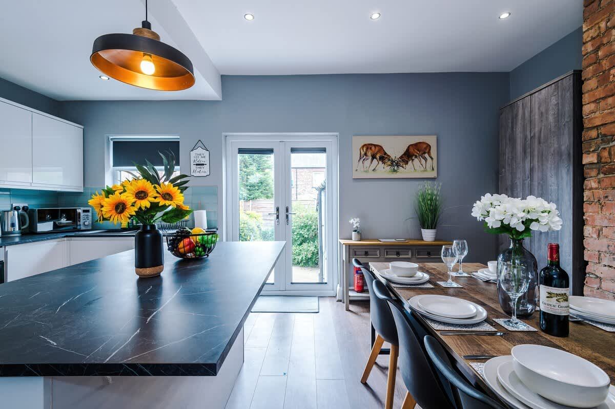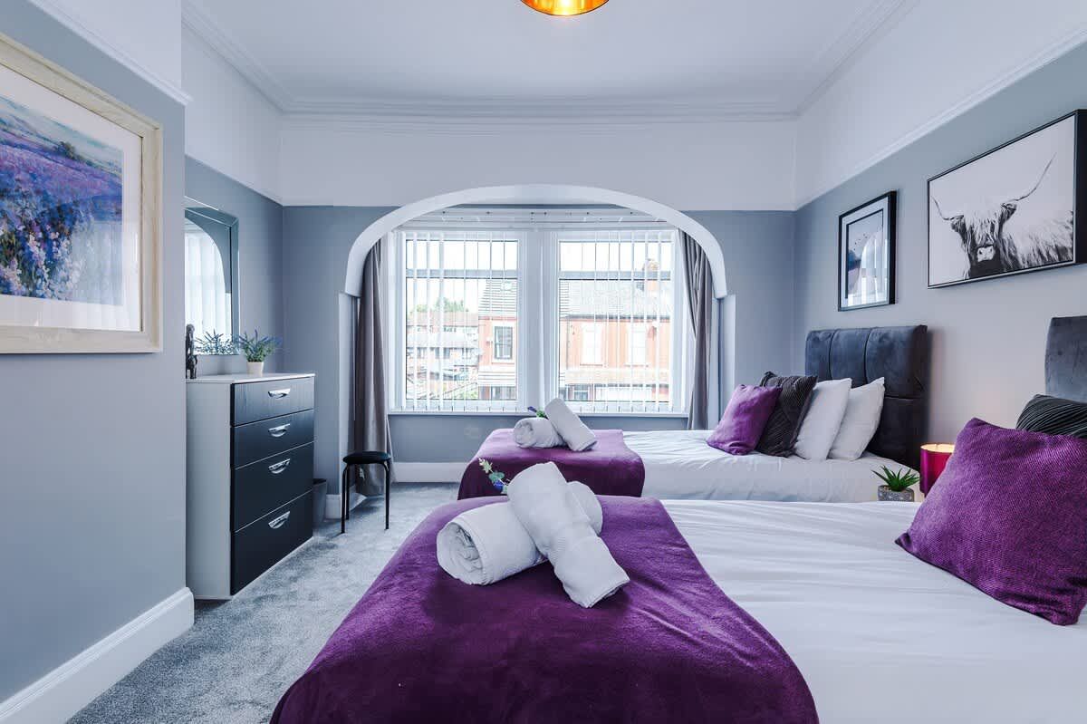 Found to the west of Salford and Manchester's bustling centre, this well-equipped red brick home is an accommodating option both for business travellers and families visiting the Rainy City. On the ground floor, the living room is cosy and inviting, while the expansive kitchen and dining area at the back opens onto a private patio and garden. You'll find three bedrooms upstairs, including two double rooms that can be converted into twins if preferred, plus one straightforward bathroom. Having a house to yourself is certainly a perk, though the neighbourhood is slightly distant from the city centre, which can be reached in around twenty-five minutes by cab and forty-five minutes by bus.