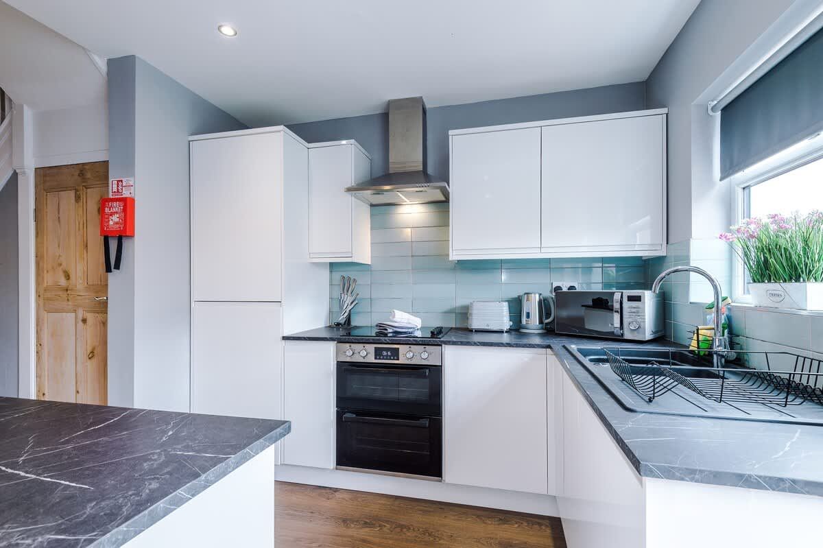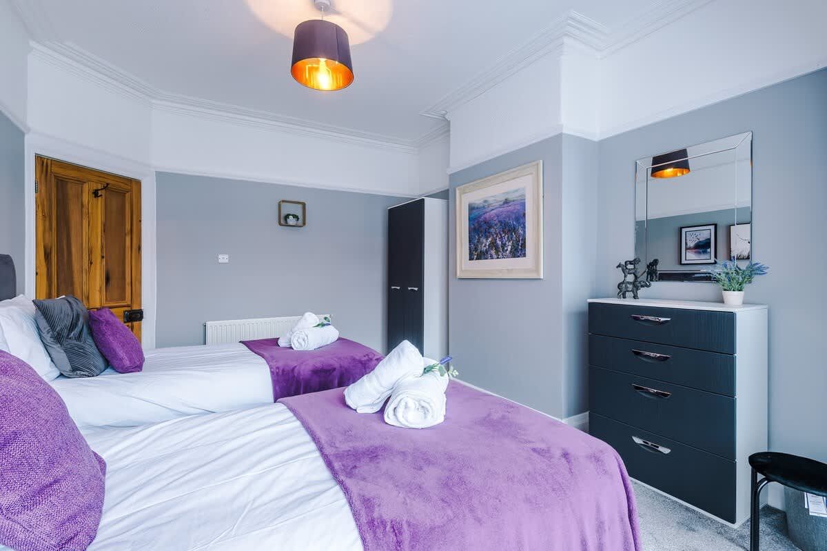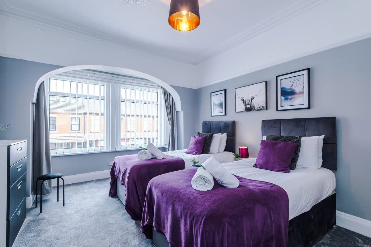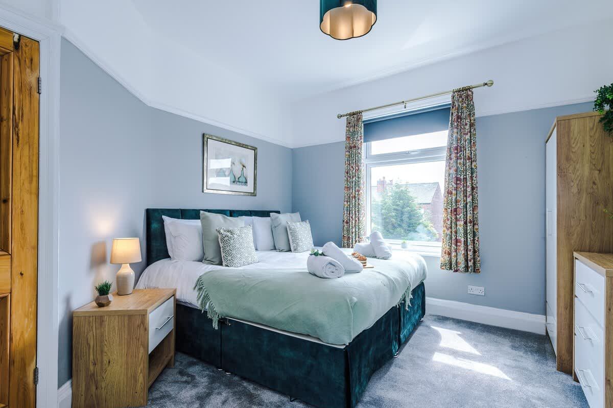 Found to the west of Salford and Manchester's bustling centre, this well-equipped red brick home is an accommodating option both for business travellers and families visiting the Rainy City. On the ground floor, the living room is cosy and inviting, while the expansive kitchen and dining area at the back opens onto a private patio and garden. You'll find three bedrooms upstairs, including two double rooms that can be converted into twins if preferred, plus one straightforward bathroom. Having a house to yourself is certainly a perk, though the neighbourhood is slightly distant from the city centre, which can be reached in around twenty-five minutes by cab and forty-five minutes by bus.