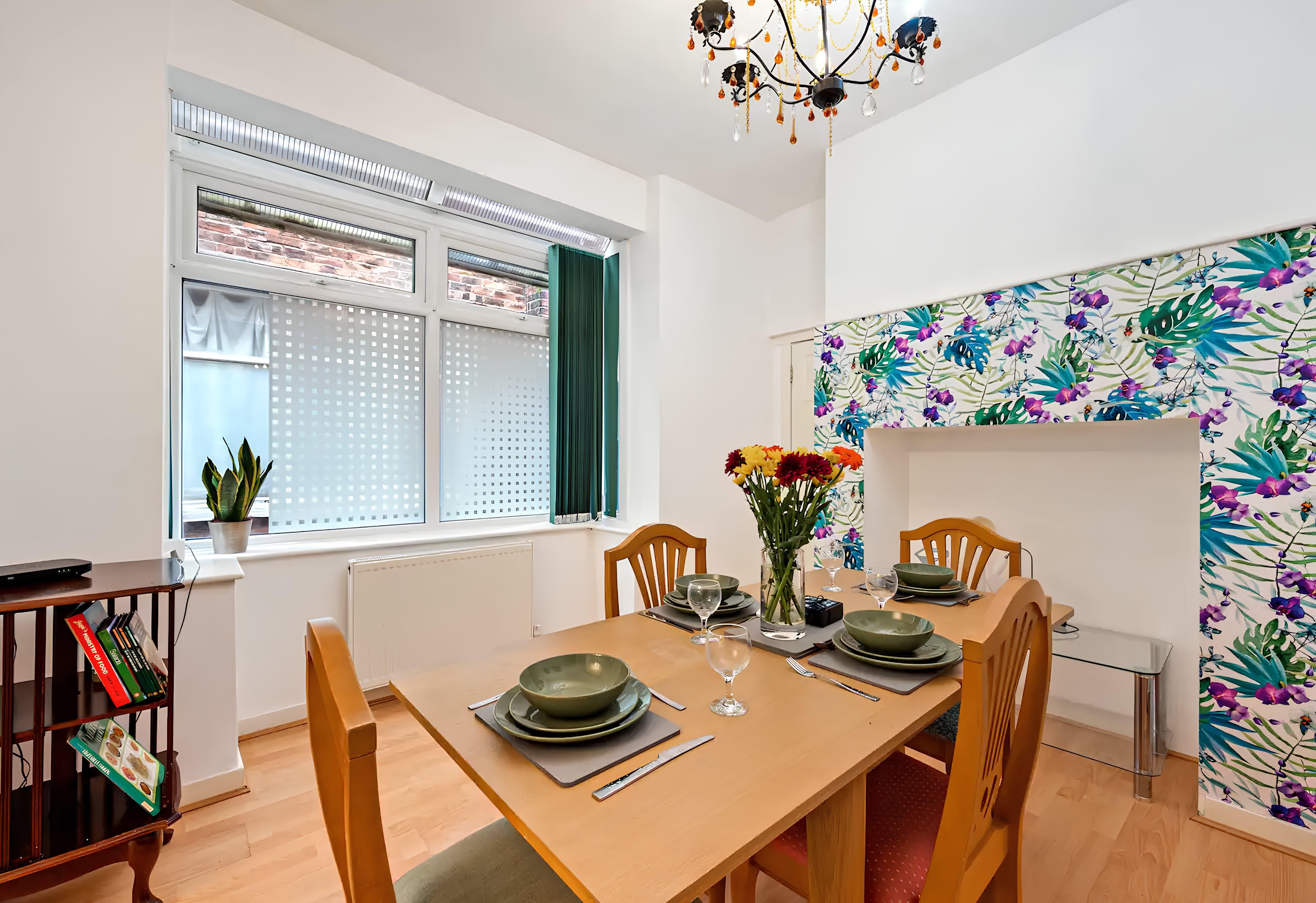 Tucked away on a quiet street in Old Trafford, this house is within walking distance of shops, public transport, and Seymour Park. It’s also just a five-minute drive from Old Trafford Stadium, so it's ideal for football fans. Plus, you're only fifteen minutes from Manchester city centre by car. Inside, it feels homely and practical, with a lounge and kitchen overlooking the garden and space to dine in both. The top-floor bedroom has its own dressing room, while a kid-friendly room with bunk beds makes it a great option for families.