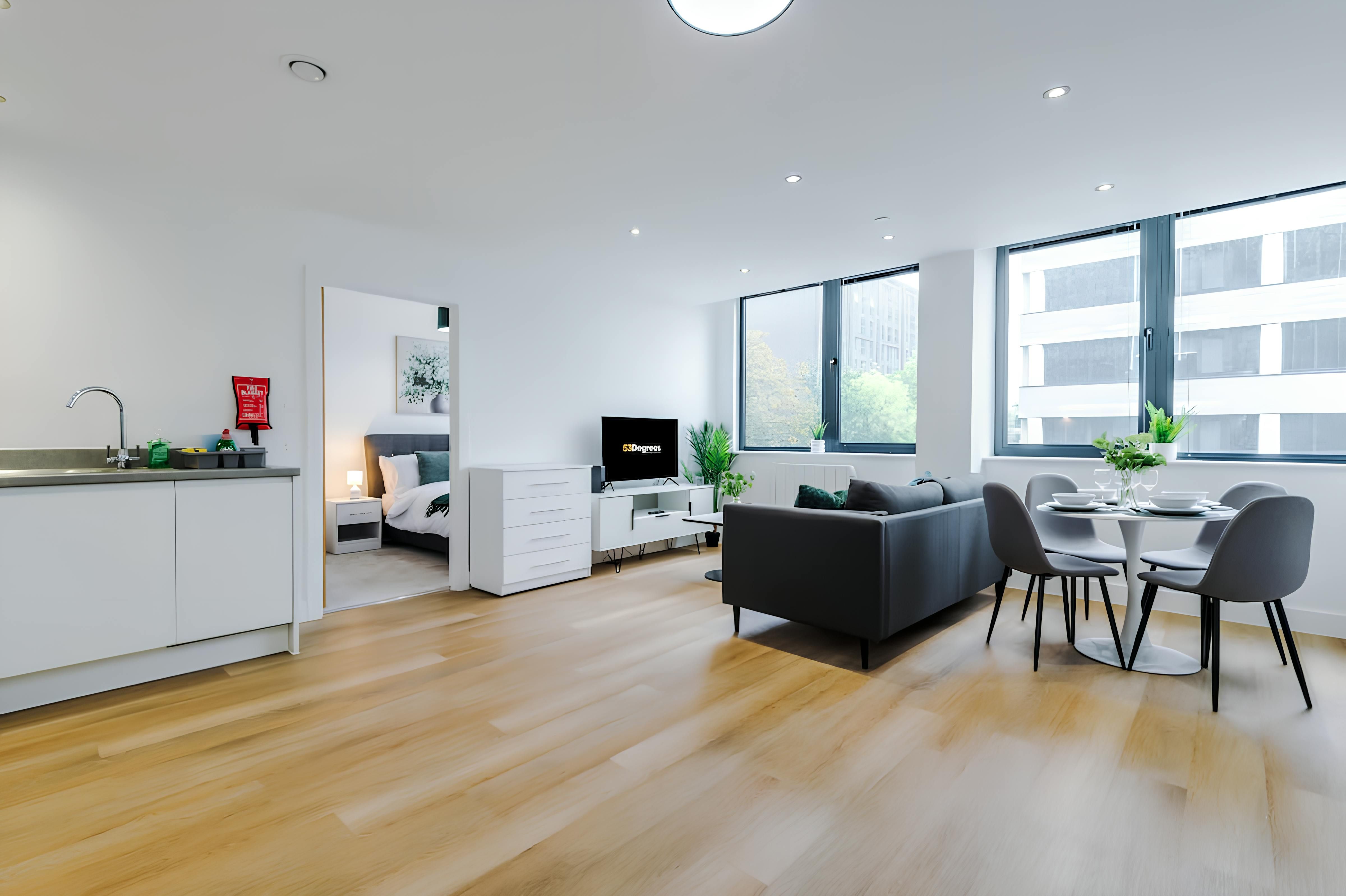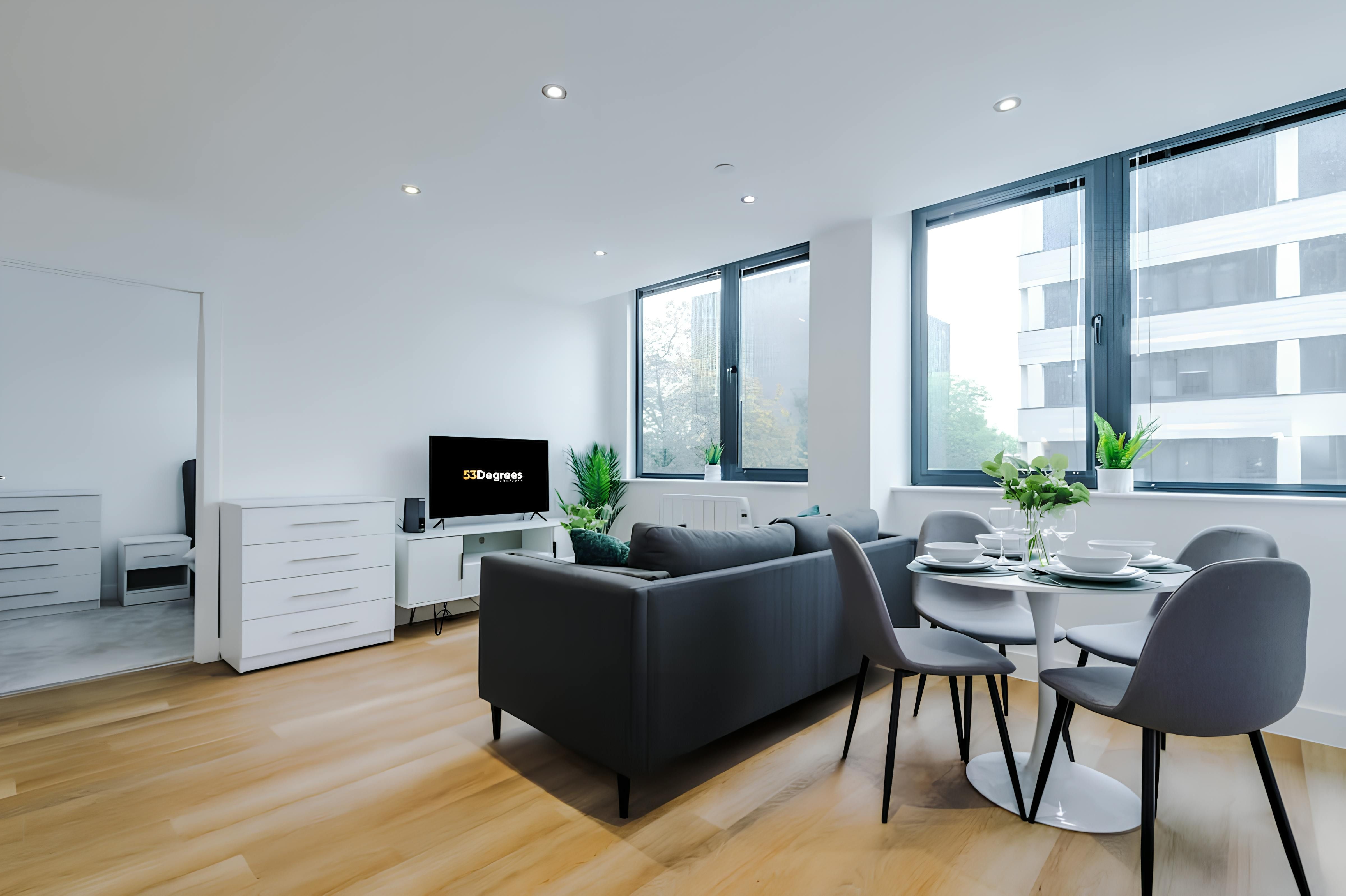 This modern Manchester home is stylish, convenient, and well-placed for exploring the city. The open-plan living area makes life easy, with a sofa to relax on, a dining table for meals, and a fully equipped kitchen for cooking at home. It’s not the biggest space, but it’s comfortable and practical, with thoughtful extras like parking, Wi-Fi, and Netflix included. Step outside and you’ll find cafes, pubs, restaurants, and nightlife close by, plus parks, canal walks, art galleries, theatres, and iconic football stadiums all within easy reach.